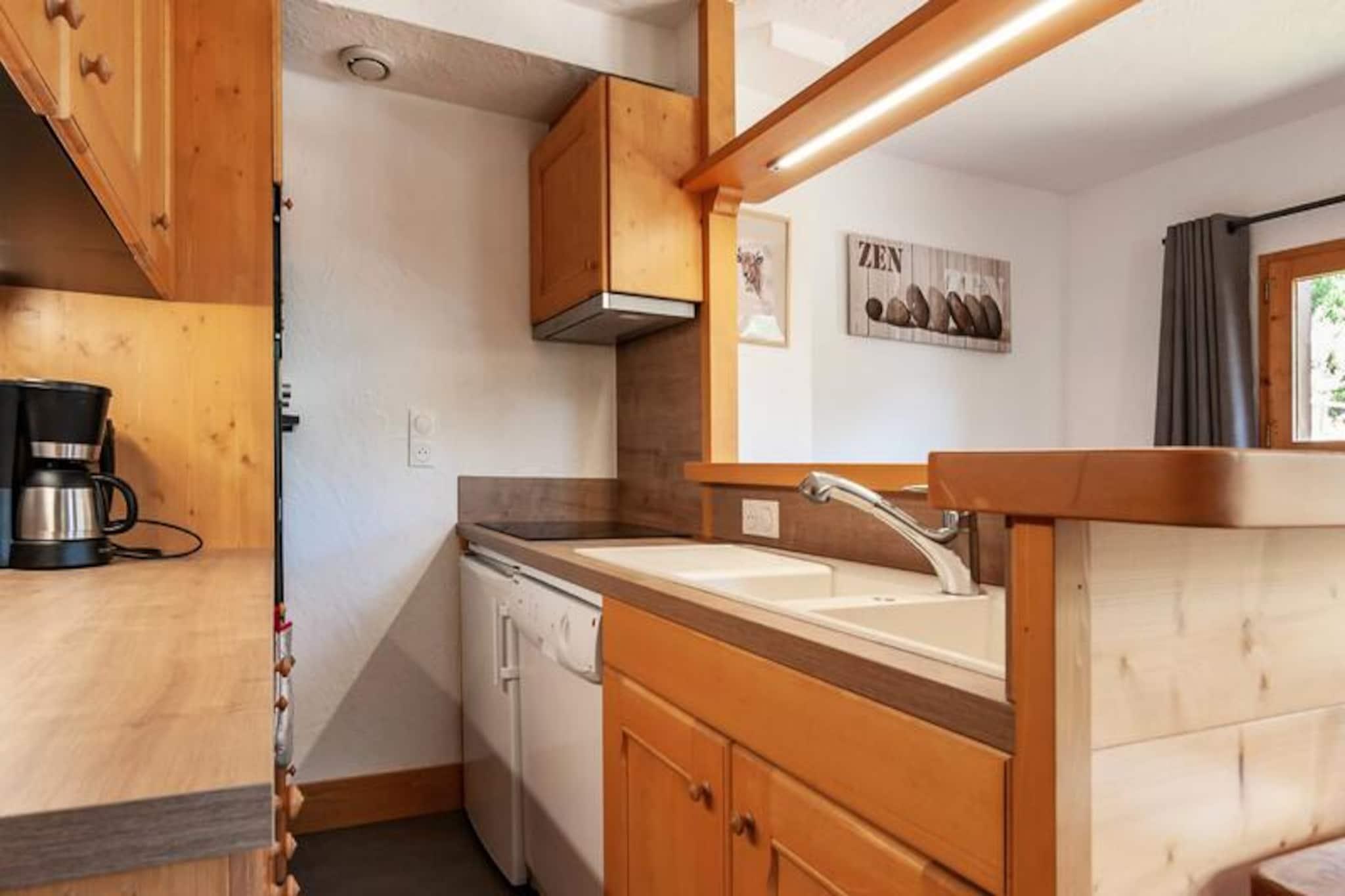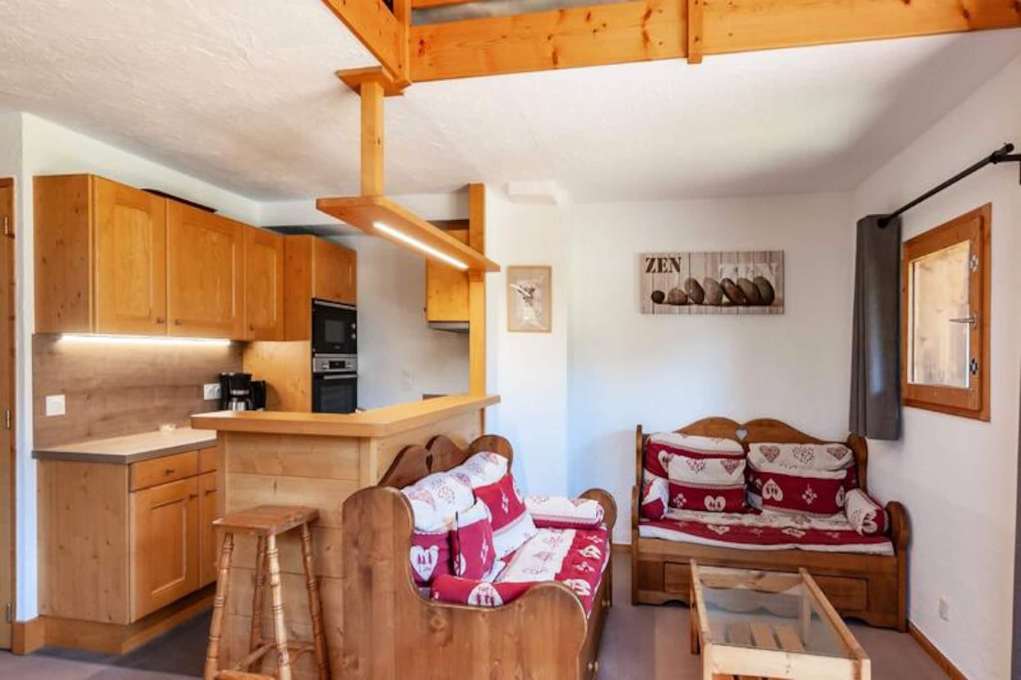 On the edge of the serene Lake Tueda, this charming alpine apartment invites you to experience the magic of Méribel Mottaret. With its tranquil surroundings and proximity to the slopes, it’s the perfect retreat for snow lovers and nature enthusiasts alike. Imagine waking up to crisp mountain air and the gentle sound of snow crunching underfoot, ready to embark on a day of adventure in the heart of the Three Valleys ski domain. Whether you’re here for winter sports or summer hikes, this property offers a gateway to unforgettable alpine experiences. \n\nInside, the apartment is thoughtfully designed to accommodate up to eight guests across its cozy bedrooms and mezzanine spaces. The main bedroom features a comfortable double bed, while the cabin bedroom and mezzanine provide flexible sleeping options for families or groups. The kitchen is fully equipped with modern appliances, including an oven, microwave, dishwasher, and coffee maker, ensuring you have everything needed to prepare hearty meals after a day outdoors. Additional amenities such as a ski locker and secure garage enhance your stay, while optional services like Wi-Fi, linens, and cleaning can be arranged for added convenience. \n\nThe residence, Le Gaillard, is ideally situated just minutes from the slopes and the center of Mottaret. It’s also a short stroll from Lake Tueda, a picturesque spot for snowshoeing and cross-country skiing in winter or peaceful walks in summer. The quiet neighborhood of Le Châtelet offers a perfect blend of privacy and accessibility, with shops and restaurants nearby to complete your holiday experience. \n\nWhether you’re seeking thrilling ski runs, scenic trails, or simply a cozy mountain escape, this apartment provides the ideal base for your adventures in Méribel Mottaret. Let the beauty of the Alps and the charm of this residence create memories you’ll treasure forever.
