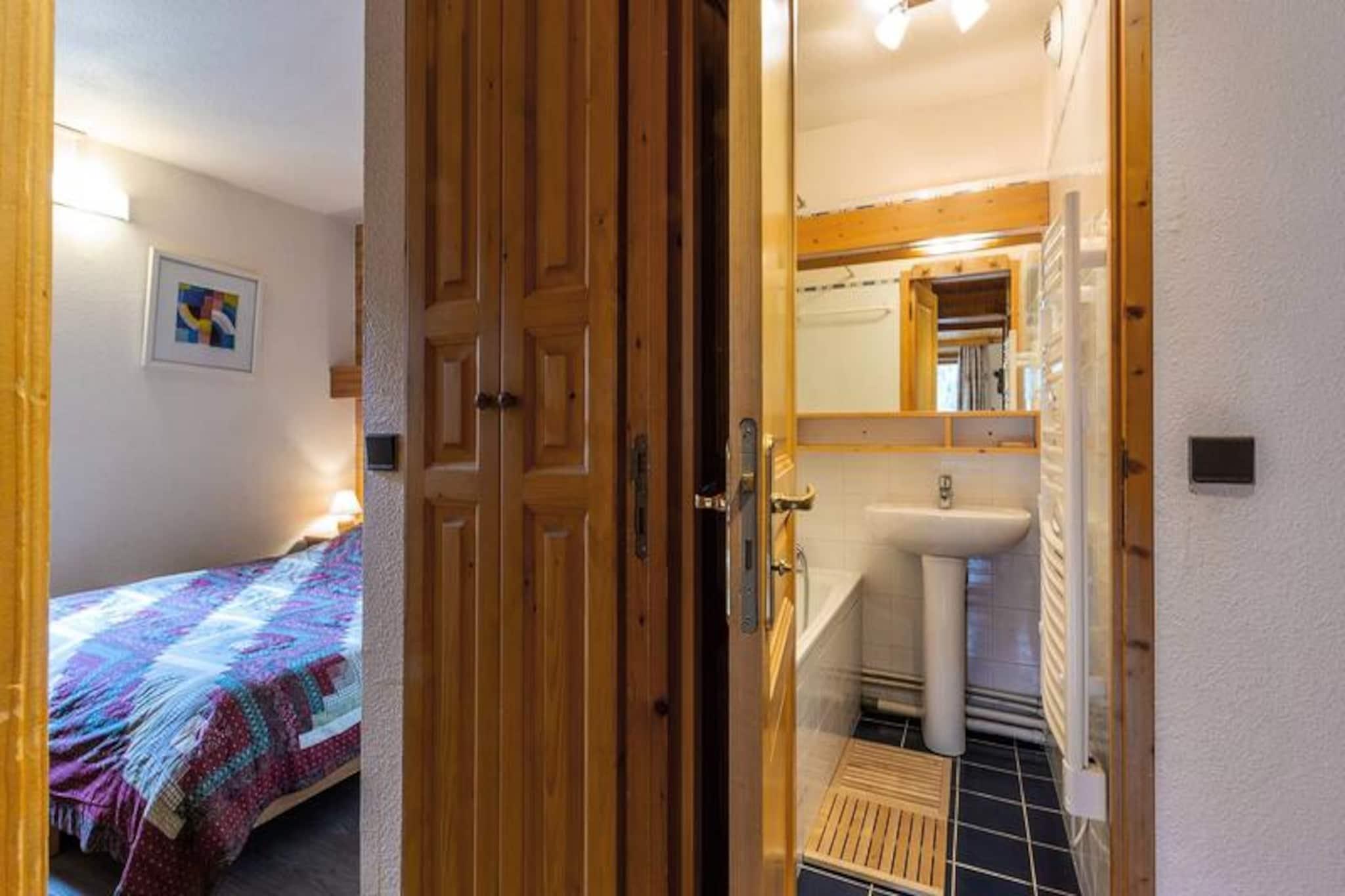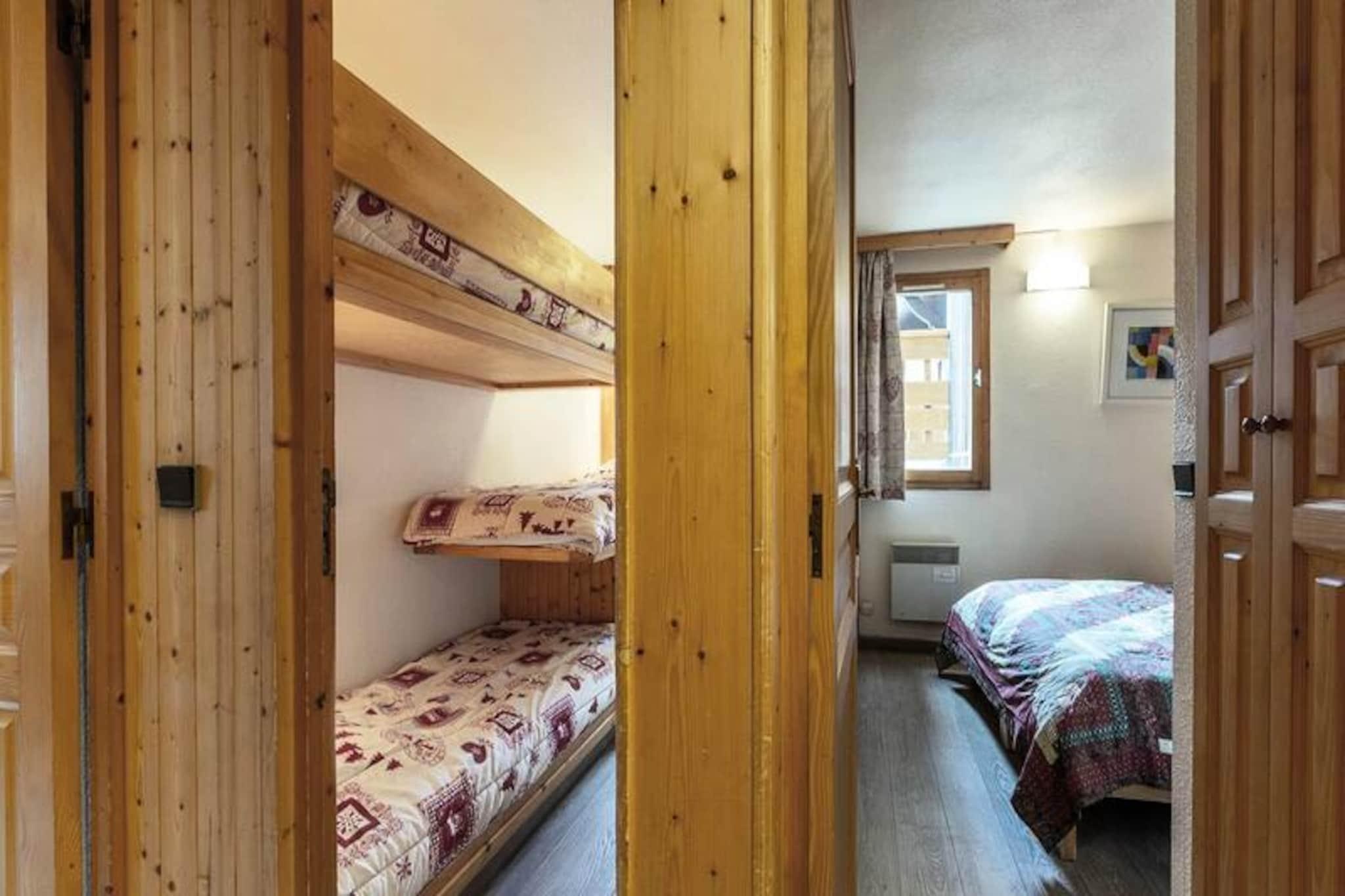 High above the serene slopes of Méribel Mottaret, this charming apartment invites you to experience the magic of the French Alps. With breathtaking views of Lake Tueda and Mont Vallon, every moment here feels like a postcard come to life. Whether you're seeking thrilling ski adventures or tranquil alpine escapes, this residence offers the perfect balance of comfort and convenience. Imagine waking up to crisp mountain air and stepping directly onto the Aigle slope for effortless access to the ESF meeting point and Méribel’s world-class ski domain. \n\nInside, the apartment is thoughtfully designed to accommodate up to eight guests. The living room features a cozy sofa bed and trundle bed, complemented by a television and DVD player for relaxed evenings. The bedroom offers two single beds pushed together, while the cabin room provides bunk beds for three. A fully equipped kitchenette includes a ceramic hob, oven, microwave, dishwasher, and more—ideal for preparing hearty meals after a day on the slopes. Modern amenities like Wi-Fi, a balcony, ski locker, and elevator ensure a seamless stay. The apartment also includes a bathroom, shower room, and separate toilet for added convenience. \n\nLocated in the new residential neighborhood of Le Châtelet, the residence is connected to the resort center and shops via a funicular, making it easy to explore Méribel’s vibrant offerings. For added ease, parking spaces can be reserved in advance. In summer, the area transforms into a haven for hikers and nature lovers, with trails leading to the pristine beauty of Lake Tueda and beyond. \n\nWhether you're visiting for winter sports or summer serenity, this apartment promises an unforgettable alpine retreat in one of France’s most beloved mountain destinations.