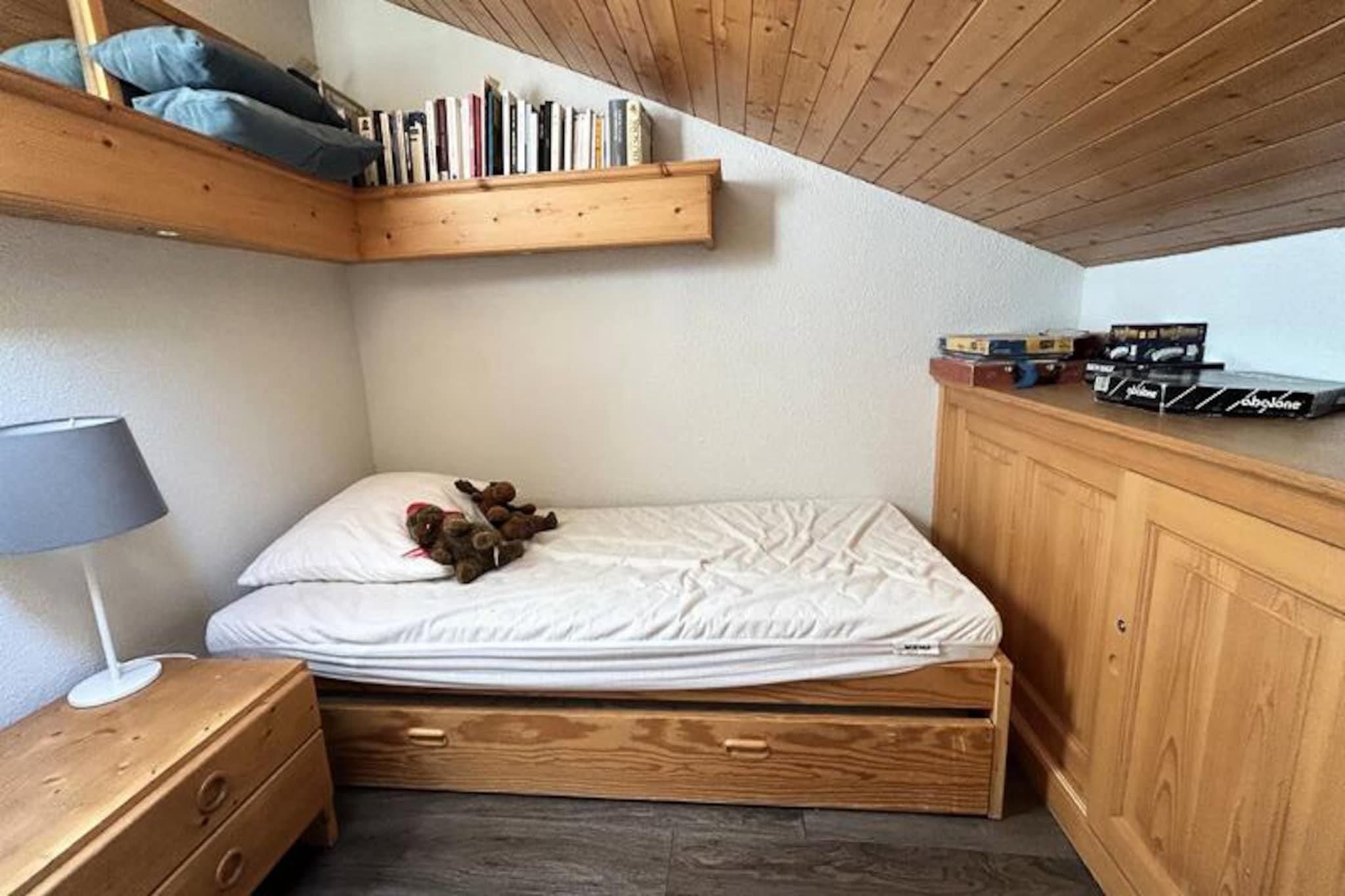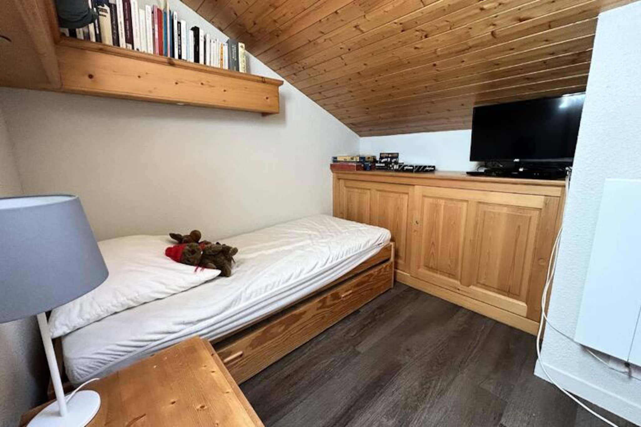 High above the serene slopes of Méribel Mottaret, this charming alpine apartment offers a warm and inviting retreat for ski enthusiasts and nature lovers alike. With breathtaking views of Lake Tueda and Mont Vallon, the residence is perfectly positioned for those seeking both adventure and tranquility. Imagine waking up to the crisp mountain air, enjoying a cup of coffee on your private balcony, and heading straight onto the Aigle slope for a day of thrilling skiing or snowboarding. The nearby ESF meeting point ensures easy access to lessons and guided tours, making it ideal for families and beginners. Inside, the apartment is thoughtfully designed to accommodate up to eight guests across two levels. The entrance level features a cozy living room with a corner sofa, a well-equipped kitchenette for preparing hearty meals, and two comfortable bedrooms. Upstairs, you’ll find additional sleeping arrangements, including a mezzanine relaxation area with a TV for unwinding after an active day. Modern amenities such as a dishwasher, oven, and private ski locker ensure a seamless and comfortable stay. The apartment also includes a private garage, conveniently located opposite the residence entrance. The Châtelet neighborhood, where the residence is located, combines modern convenience with alpine charm. Connected to the resort center by a funicular, you’ll have easy access to shops, restaurants, and après-ski activities. In summer, the area transforms into a haven for hikers and mountain bikers, with trails leading to stunning vistas and wildlife encounters. Whether you’re here for winter sports or summer exploration, this apartment is your gateway to the best of Méribel Mottaret.