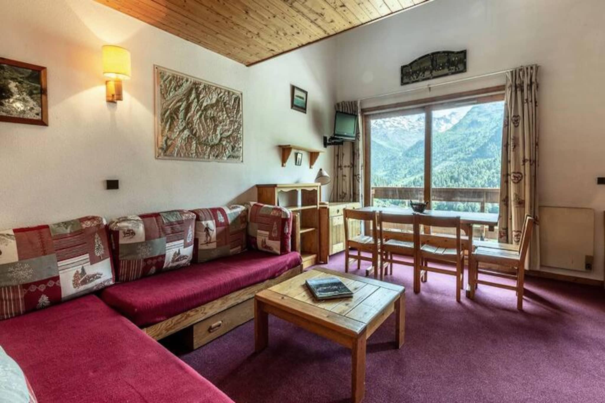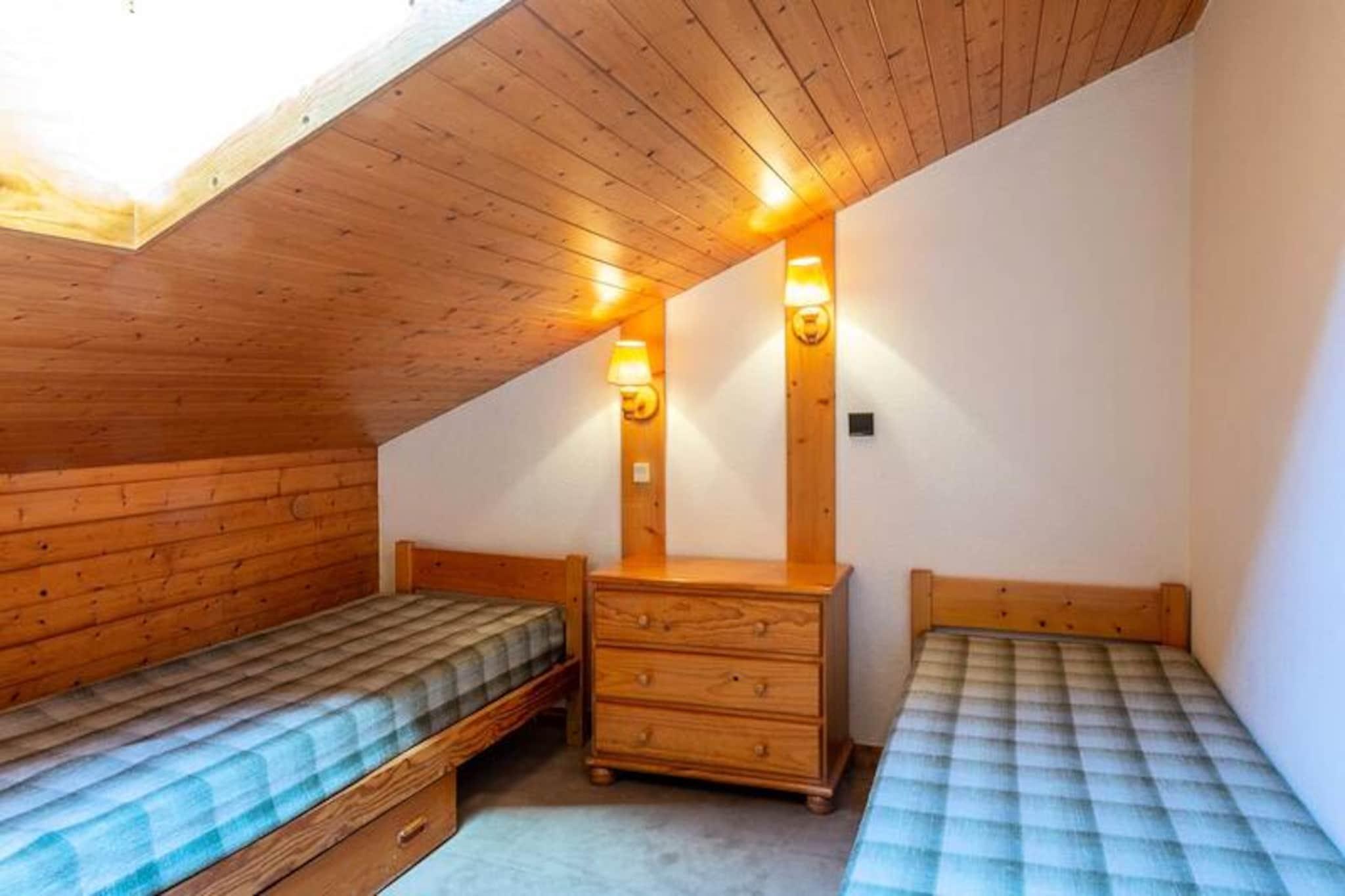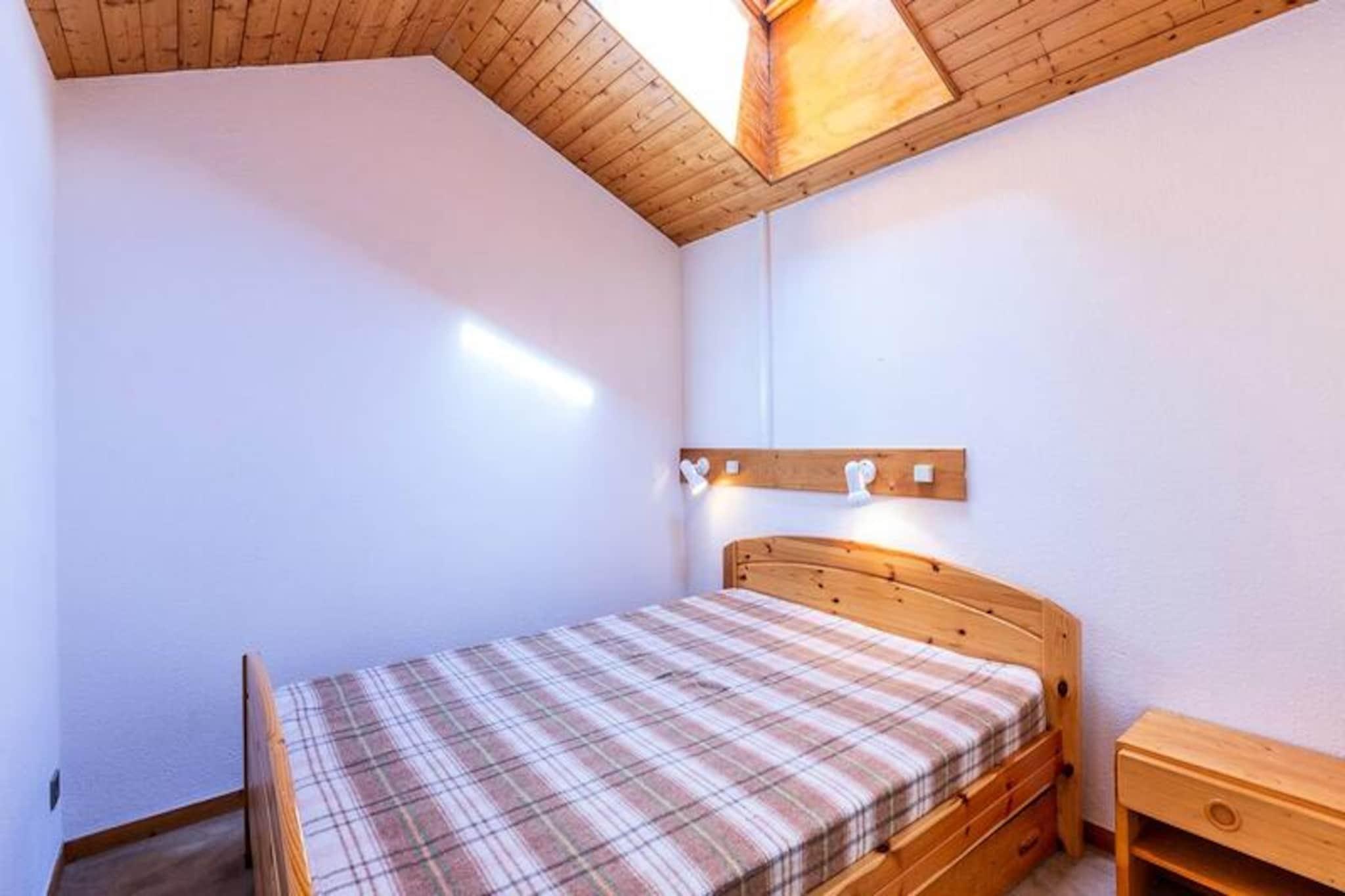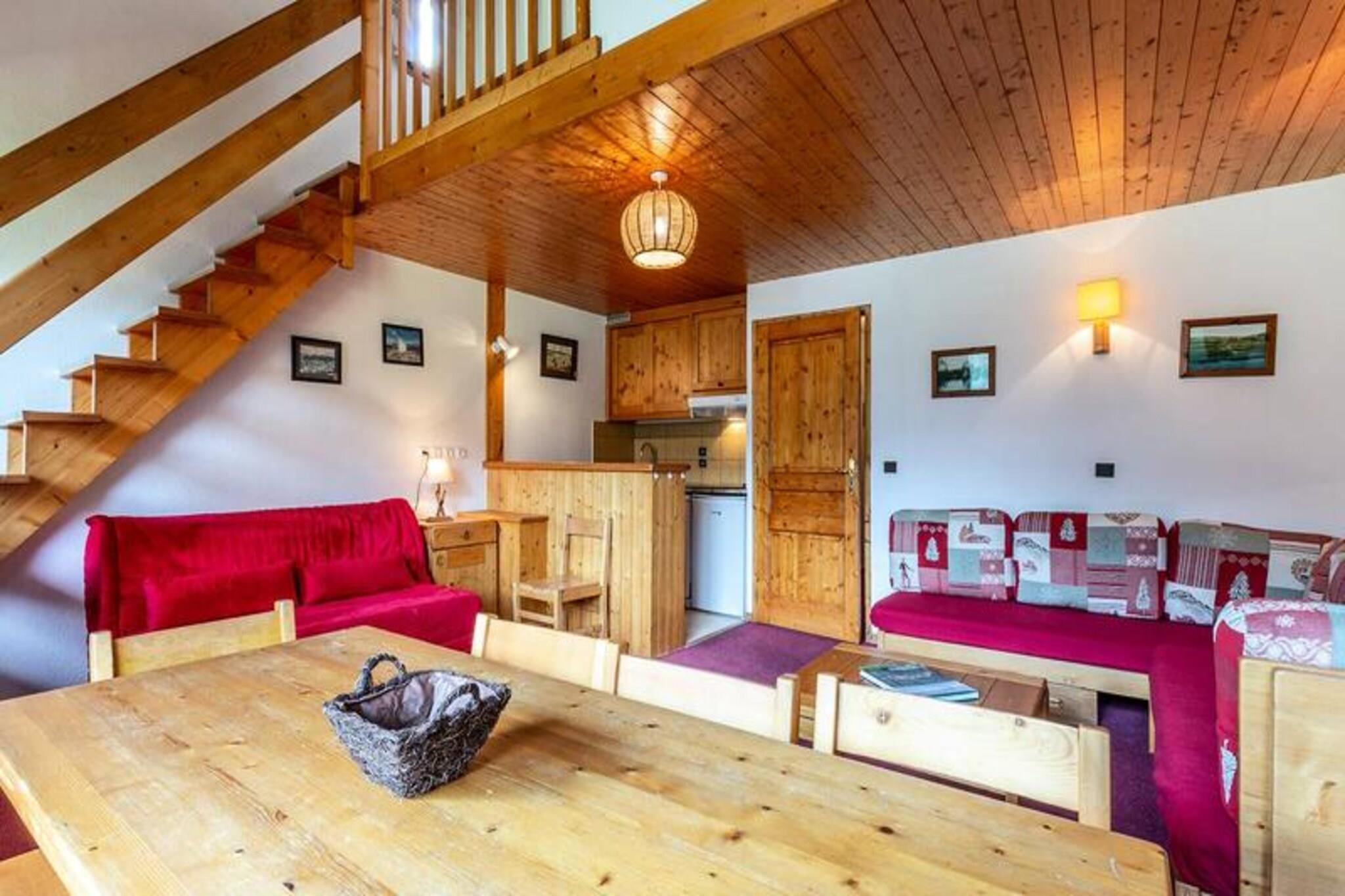 Perched above the serene Lake Tueda and framed by the majestic Mont Vallon, this charming alpine apartment in Méribel Mottaret offers a seamless blend of comfort and adventure. Imagine waking up to breathtaking views of snow-dusted peaks and stepping directly onto the Aigle slope for an effortless ski-in ski-out experience. Whether you're here for winter sports or summer hikes, this residence places you in the heart of the French Alps' natural beauty. The nearby ESF meeting point ensures easy access to ski lessons, while the funicular connects you to the resort center and shops for added convenience. \n\nInside, the apartment is thoughtfully designed for up to nine guests. The cozy living room features a single sofa bed, a comfortable sofa, and a television, creating a welcoming space to unwind after a day of alpine adventures. The kitchenette is fully equipped with modern appliances, including a ceramic hob, oven, microwave, dishwasher, and coffee maker, making meal preparation a breeze. Upstairs, the mezzanine boasts two attic bedrooms—one with three single beds and another with a double bed—alongside a shower room with a toilet. A separate bedroom with a double bed and a bathroom on the main floor ensures privacy and comfort for all guests. The balcony offers a tranquil spot to soak in the mountain views, while amenities like a ski locker and elevator enhance your stay. \n\nThe residence of Les Plattières is perfectly situated for exploring Méribel Mottaret's attractions. Beyond skiing, the area transforms into a summer paradise with hiking trails, vibrant alpine flora, and the shimmering Lake Tueda. Reserve a parking space for added ease and enjoy the convenience of nearby shops and dining options. Whether you're seeking thrilling slopes or peaceful moments in nature, this apartment is your gateway to unforgettable alpine memories.