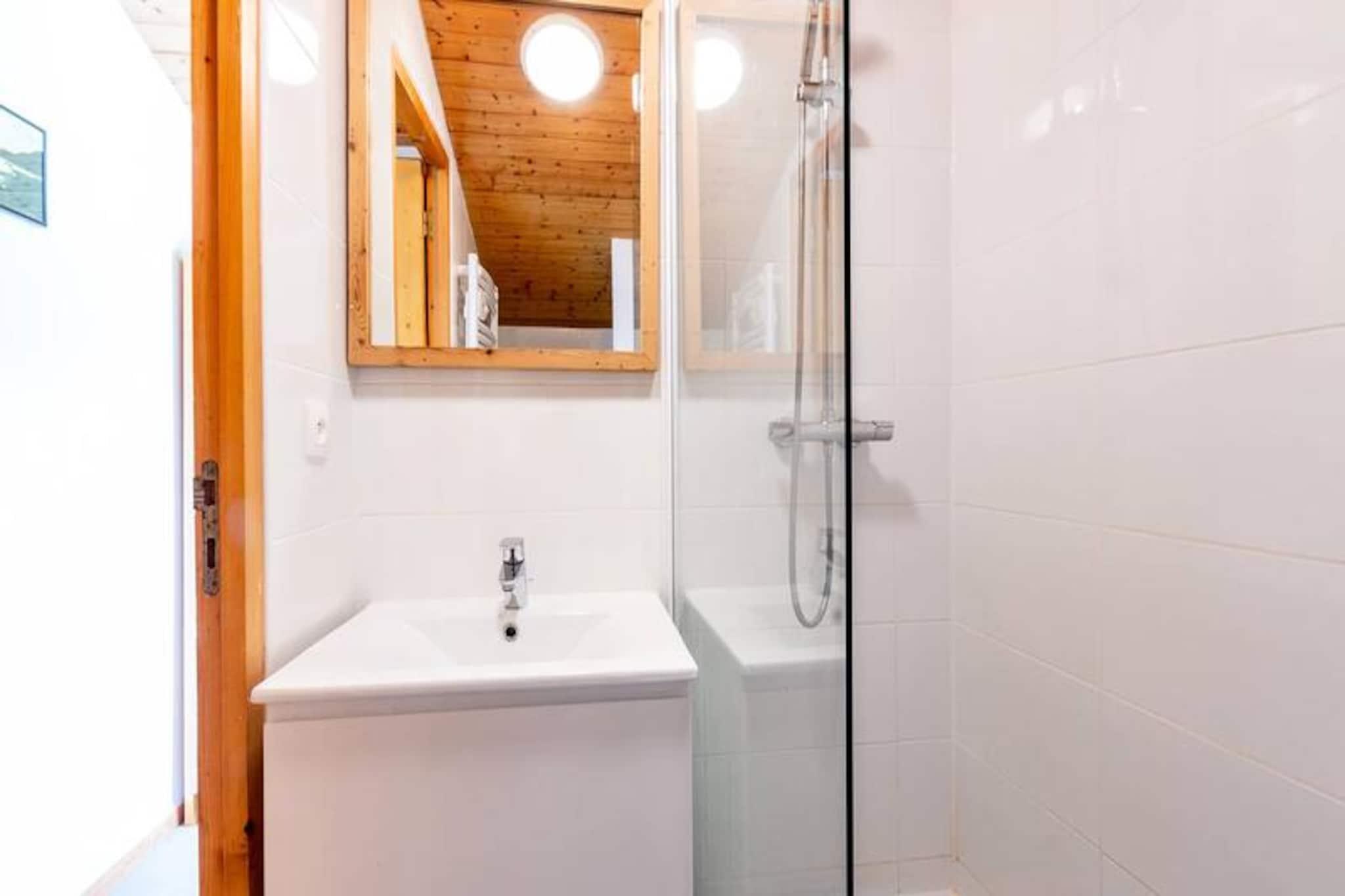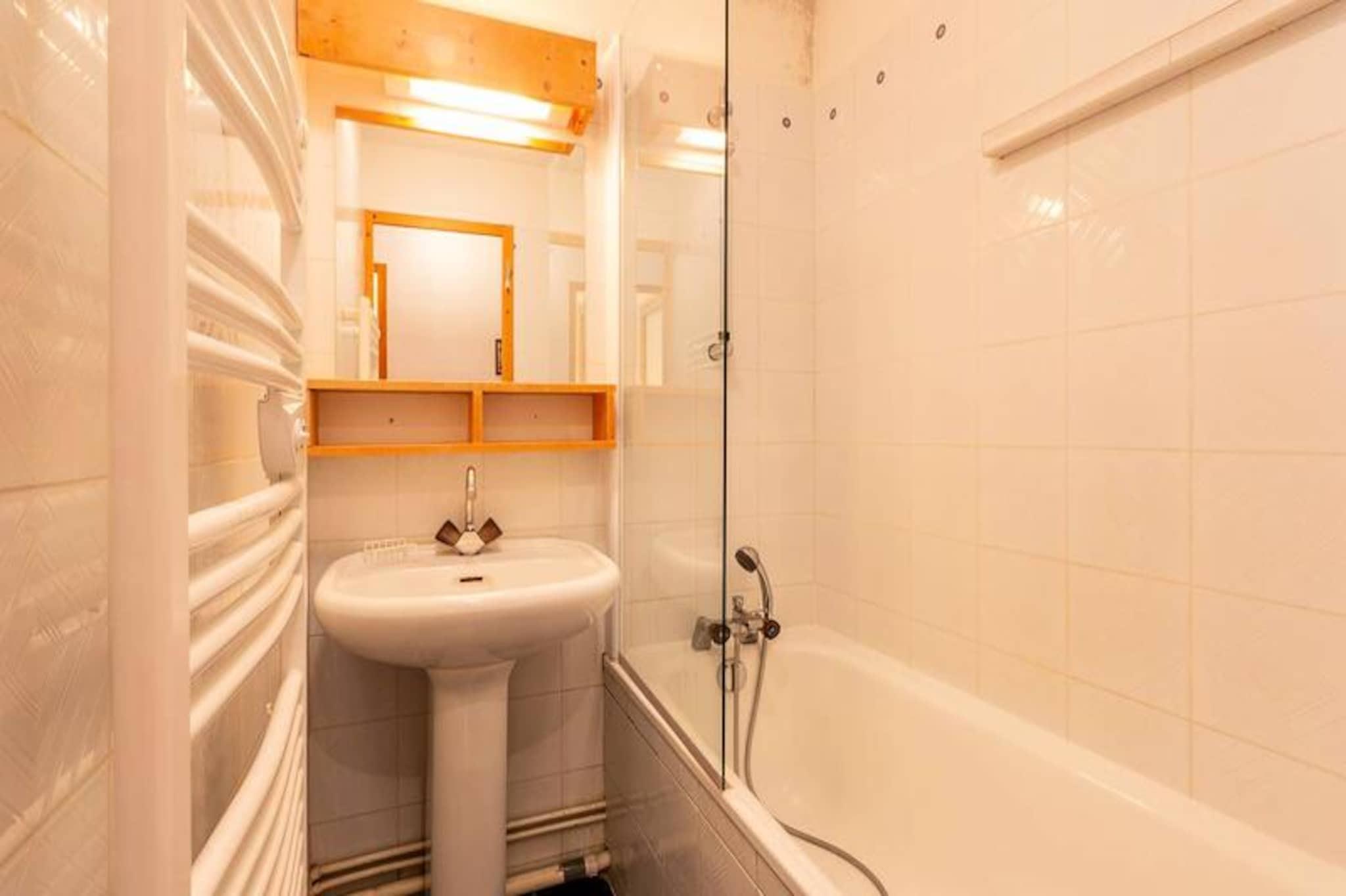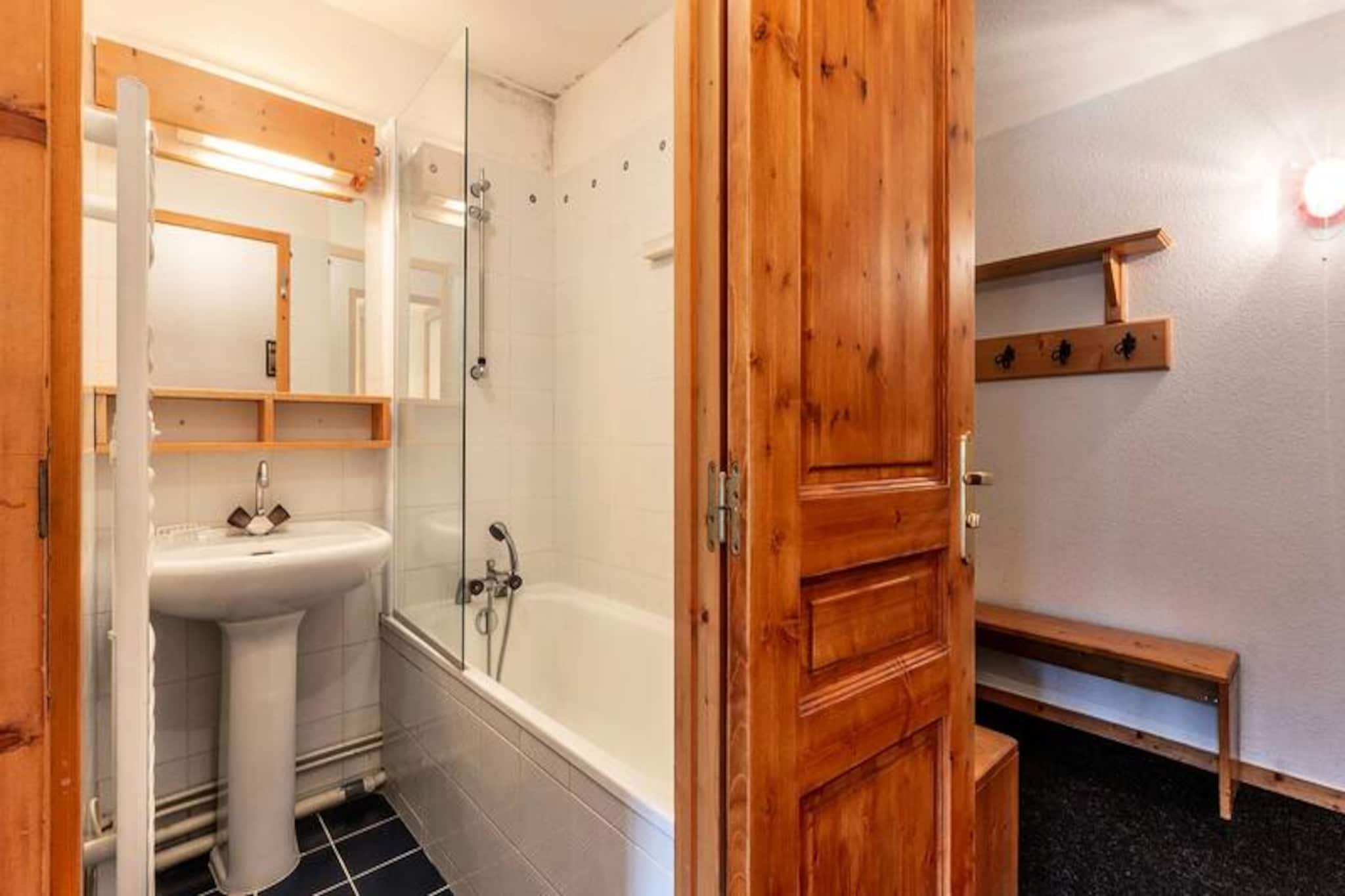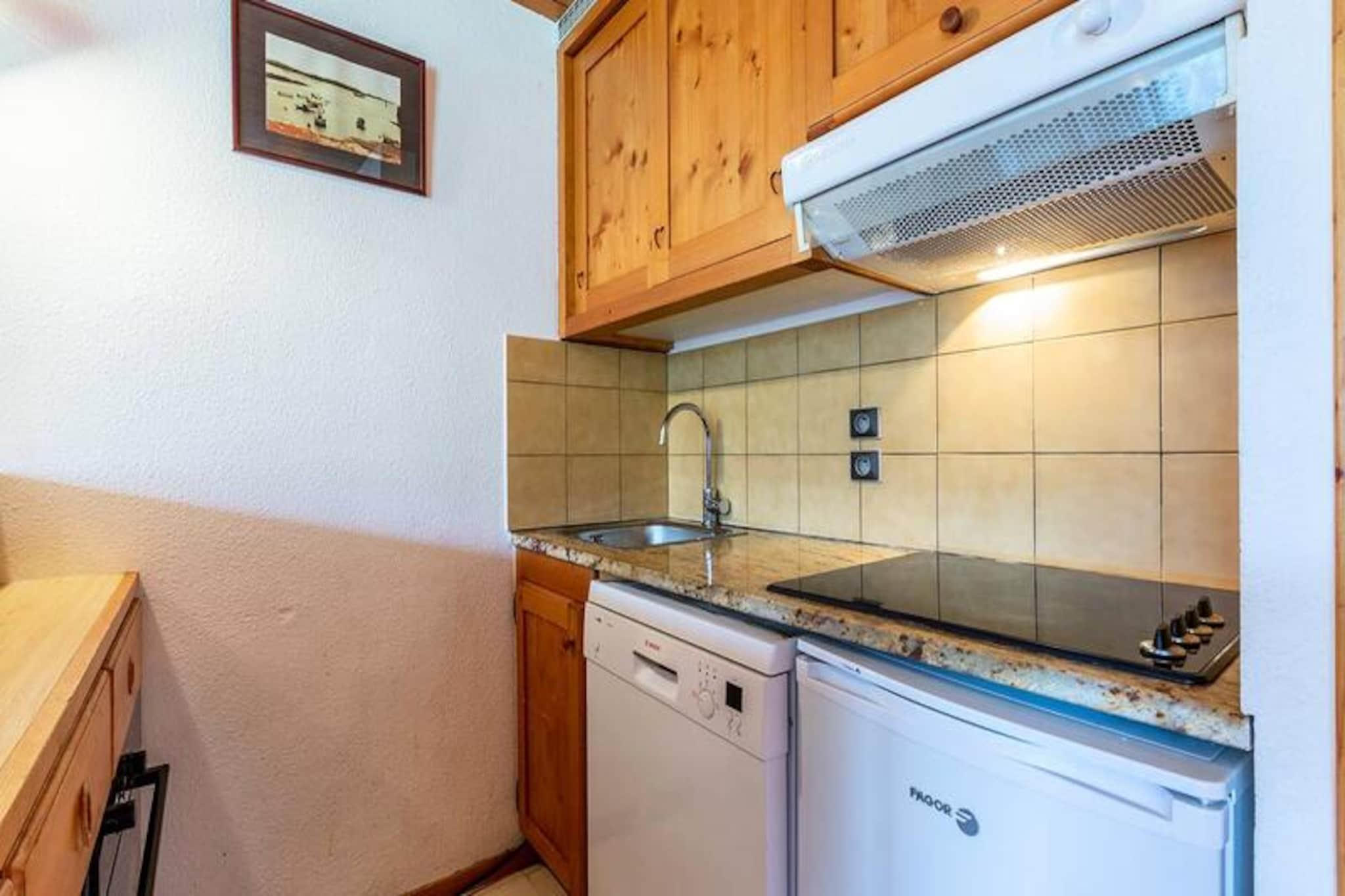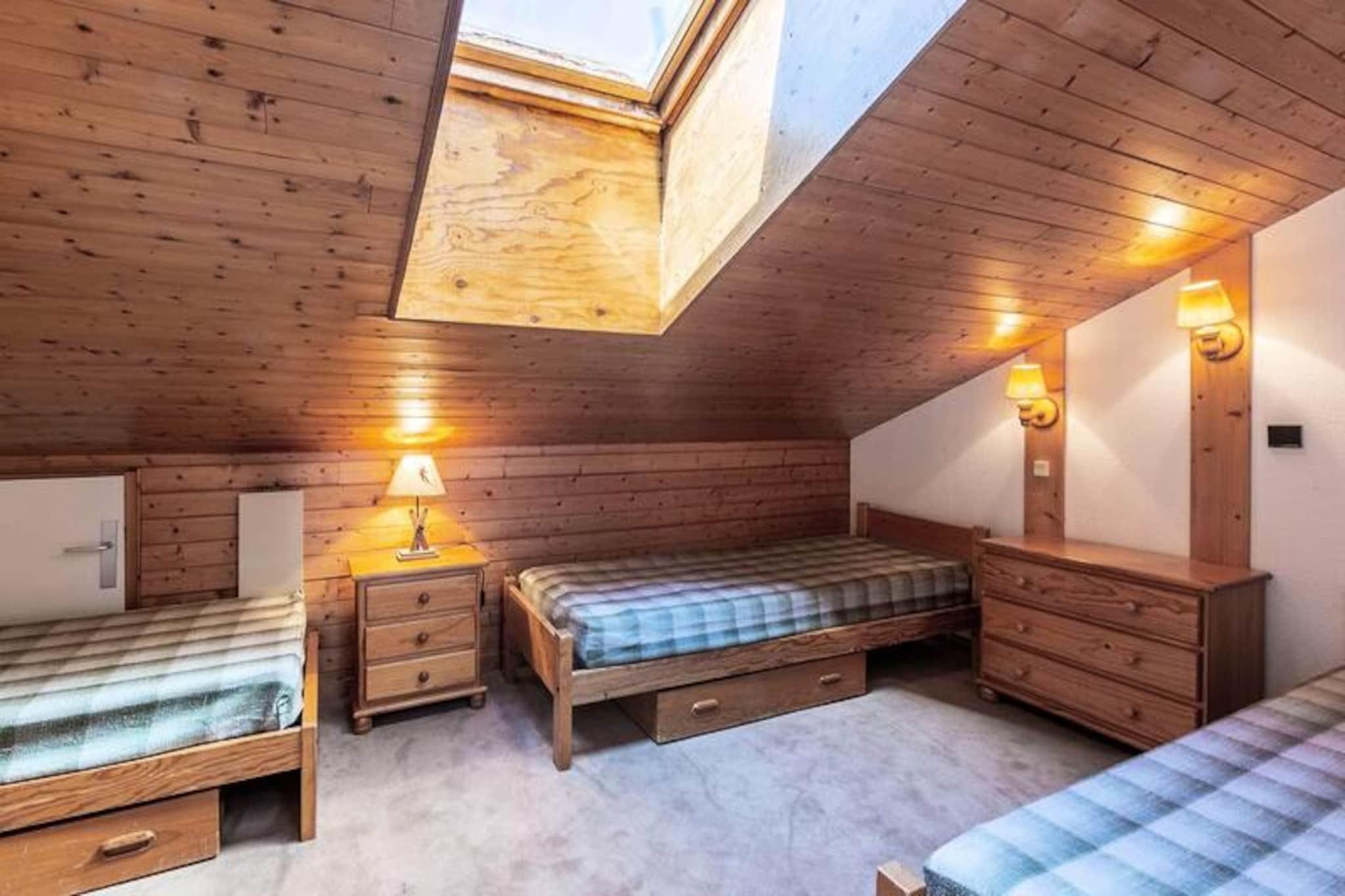 Perched above the serene Lake Tueda and framed by the majestic Mont Vallon, this charming alpine apartment in Méribel Mottaret offers a seamless blend of comfort and adventure. Imagine waking up to breathtaking views of snow-dusted peaks and stepping directly onto the Aigle slope for an effortless ski-in ski-out experience. Whether you're here for winter sports or summer hikes, this residence places you in the heart of the French Alps' natural beauty. The nearby ESF meeting point ensures easy access to ski lessons, while the funicular connects you to the resort center and shops for added convenience. \n\nInside, the apartment is thoughtfully designed for up to nine guests. The cozy living room features a single sofa bed, a comfortable sofa, and a television, creating a welcoming space to unwind after a day of alpine adventures. The kitchenette is fully equipped with modern appliances, including a ceramic hob, oven, microwave, dishwasher, and coffee maker, making meal preparation a breeze. Upstairs, the mezzanine boasts two attic bedrooms—one with three single beds and another with a double bed—alongside a shower room with a toilet. A separate bedroom with a double bed and a bathroom on the main floor ensures privacy and comfort for all guests. The balcony offers a tranquil spot to soak in the mountain views, while amenities like a ski locker and elevator enhance your stay. \n\nThe residence of Les Plattières is perfectly situated for exploring Méribel Mottaret's attractions. Beyond skiing, the area transforms into a summer paradise with hiking trails, vibrant alpine flora, and the shimmering Lake Tueda. Reserve a parking space for added ease and enjoy the convenience of nearby shops and dining options. Whether you're seeking thrilling slopes or peaceful moments in nature, this apartment is your gateway to unforgettable alpine memories.