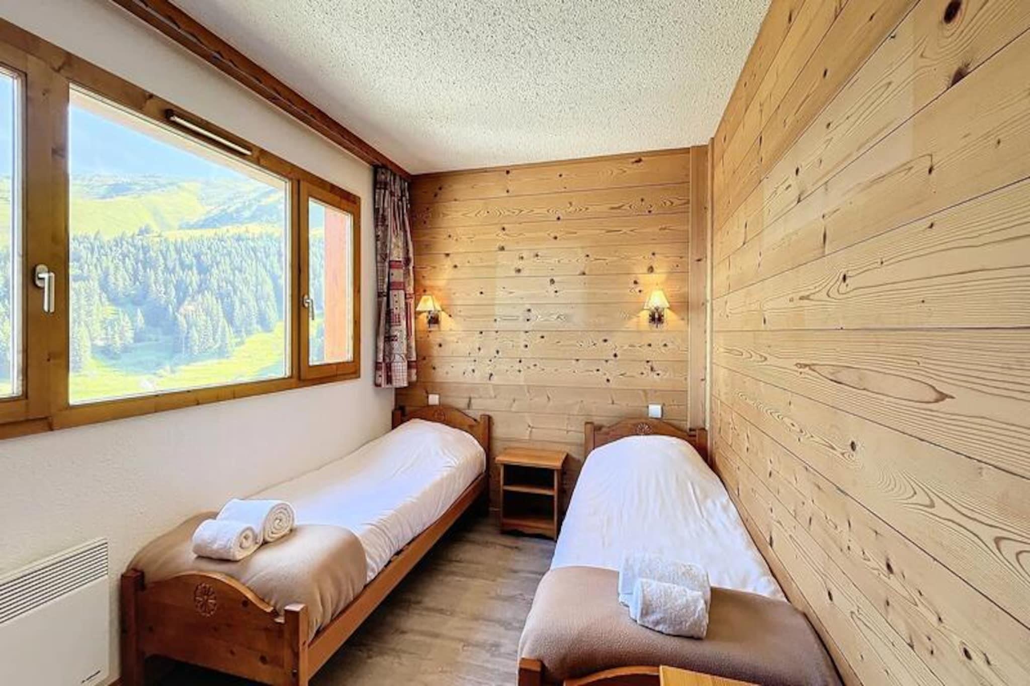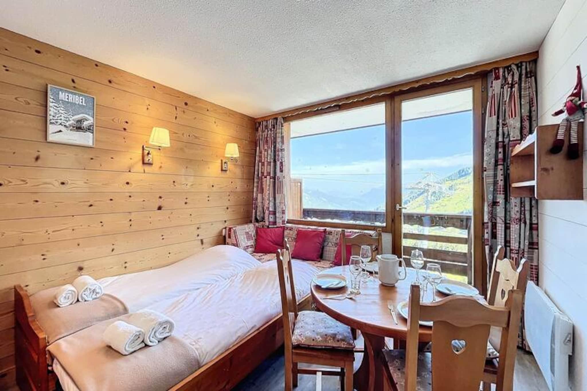 High above the picturesque Tarentaise Valley, Méribel-Mottaret offers an alpine escape like no other. At an altitude of 1,750 meters, this charming village is nestled at the foot of the Vanoise National Park, where the serene Lake Tuéda and its surrounding nature reserve create a haven for cross-country skiing and tranquil winter walks. Here, the crisp mountain air and breathtaking views set the tone for an unforgettable getaway in the heart of the 3 Vallées ski area. This bright and cozy two-room apartment, located on the 10th floor of the Plein Soleil residence, is a perfect retreat for up to four guests. The living room features two single sofa beds that can be joined to form a double bed, a television, and access to a private balcony with stunning valley views. The separate bedroom offers two single beds, ensuring restful nights after a day on the slopes. The well-equipped kitchen includes modern appliances such as a combination microwave, dishwasher, and coffee maker, making it easy to prepare meals. A bathroom with a bathtub, separate toilet, and complimentary Wi-Fi add to the comfort and convenience of your stay. With ski-in, ski-out access, you’re just moments away from the world-renowned 3 Vallées ski domain. The center of Méribel-Mottaret, with its ski shops, restaurants, bars, and the ESF ski school, is a mere five-minute walk away. For those looking to explore further, Méribel Center is easily accessible via the shuttle or the scenic \