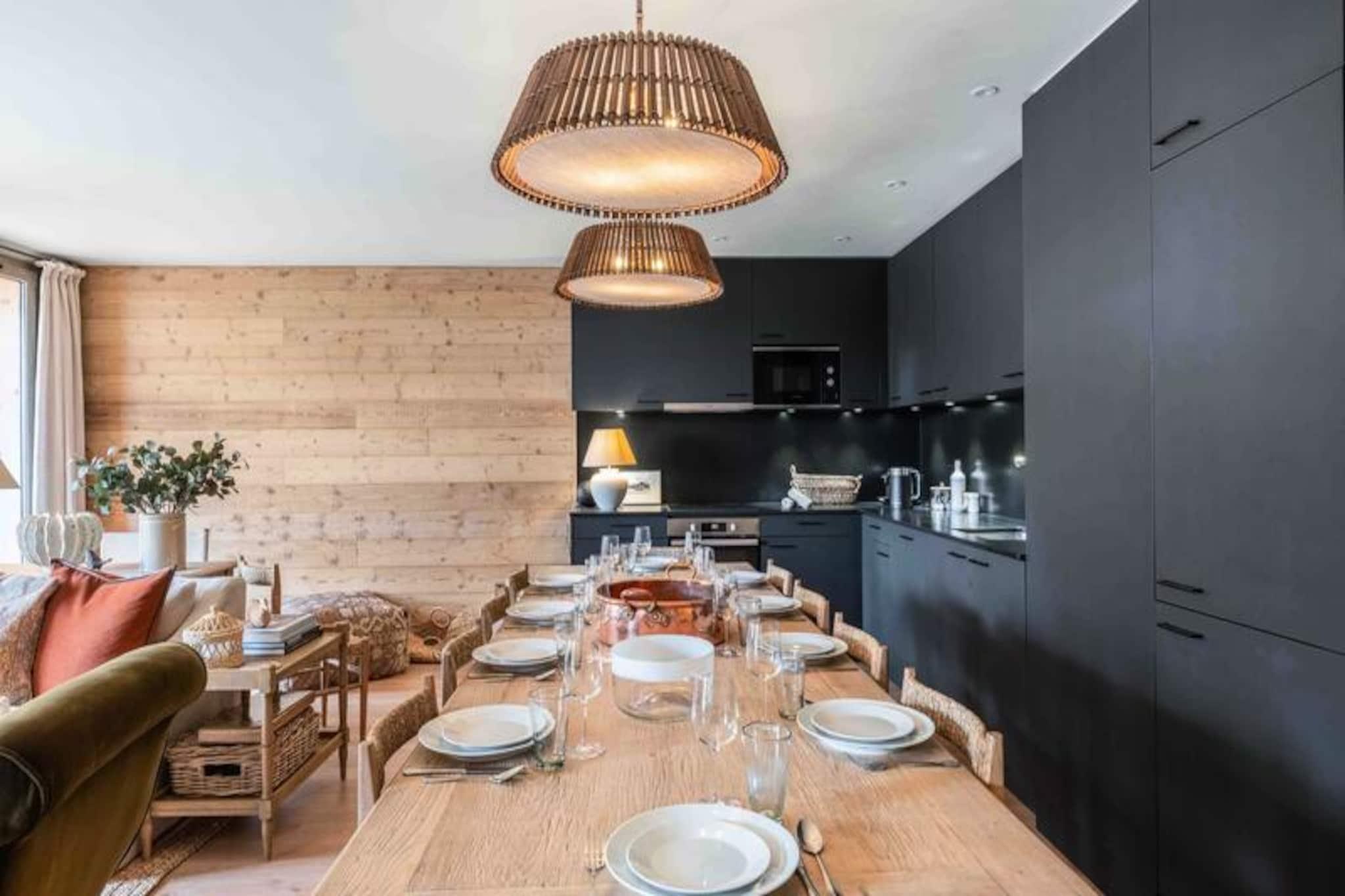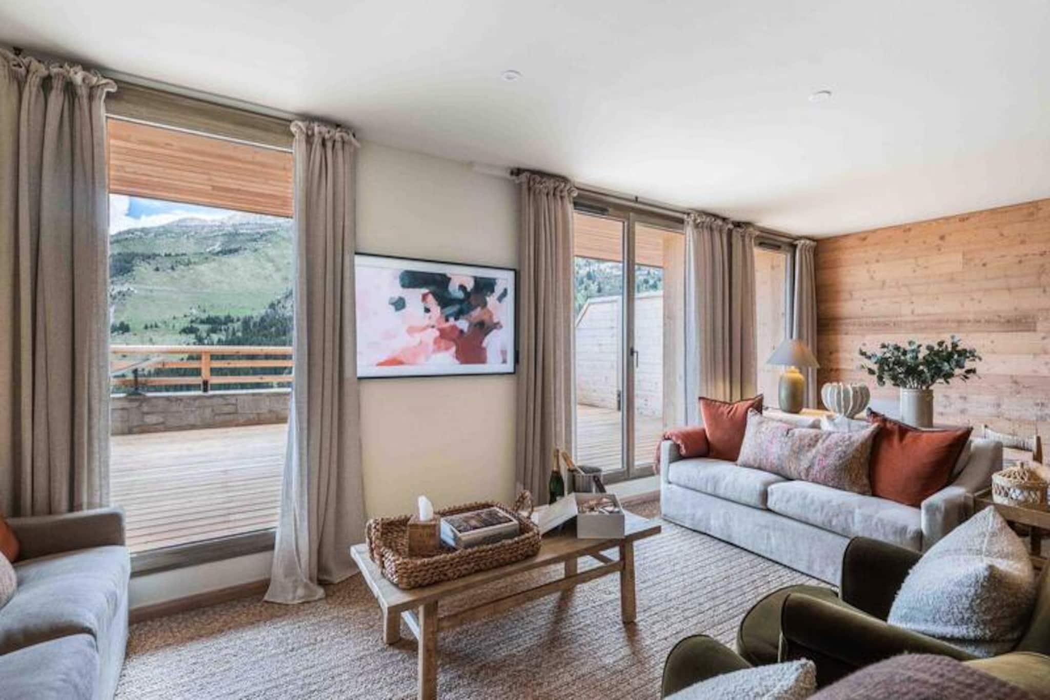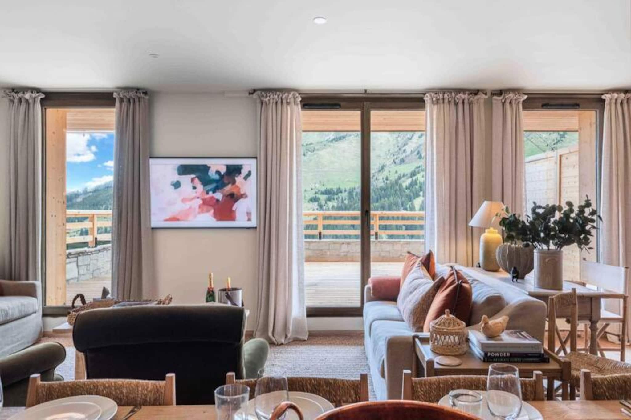 High above the enchanting valley of Méribel-Mottaret, this elegant alpine apartment offers a serene retreat for families and groups seeking the perfect balance of comfort and adventure. With breathtaking views of the Dent du Burgin and direct access to the slopes, your days begin with the crisp mountain air and end with unforgettable sunsets over the snowy peaks. Whether you're here to ski, explore, or simply relax, this property provides an idyllic setting for your alpine escape. \n\nInside, the apartment boasts a spacious living room that opens onto a large terrace, inviting you to soak in panoramic vistas while enjoying moments of tranquility. The open-plan kitchen is fully equipped with modern appliances, including a Nespresso machine, induction hob, and dishwasher, ensuring effortless meal preparation. Three cozy bedrooms with double beds, private balconies, and en-suite bathrooms promise restful nights, while a bunk bed alcove accommodates up to four children. Additional amenities such as WiFi, a ski locker, and covered parking add to the convenience of your stay. \n\nSituated in the peaceful Laitelet area, the apartment is perfectly positioned to access the slopes, ski school, and the charming center of Mottaret via the Chalets gondola lift. For nature enthusiasts, the nearby Vanoise National Park and Lake Tuéda offer opportunities for cross-country skiing and scenic walks amidst pristine landscapes. Méribel Centre is easily reachable by shuttle or the Truite ski run, providing access to vibrant après-ski options and local dining. \n\nWhether you're drawn to the thrill of the slopes or the serenity of alpine beauty, this apartment is your gateway to an unforgettable mountain holiday.