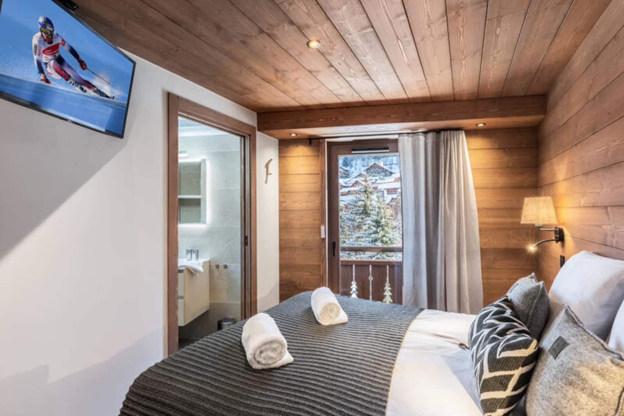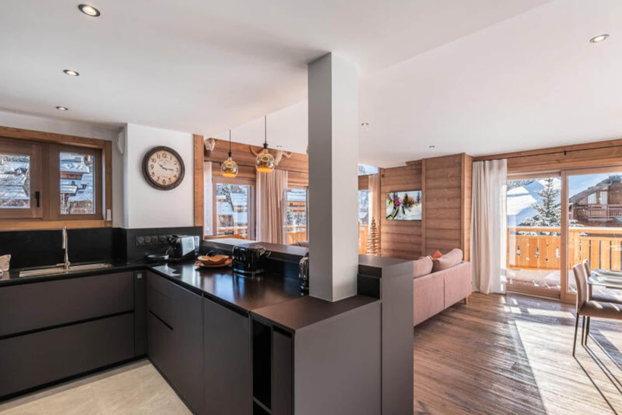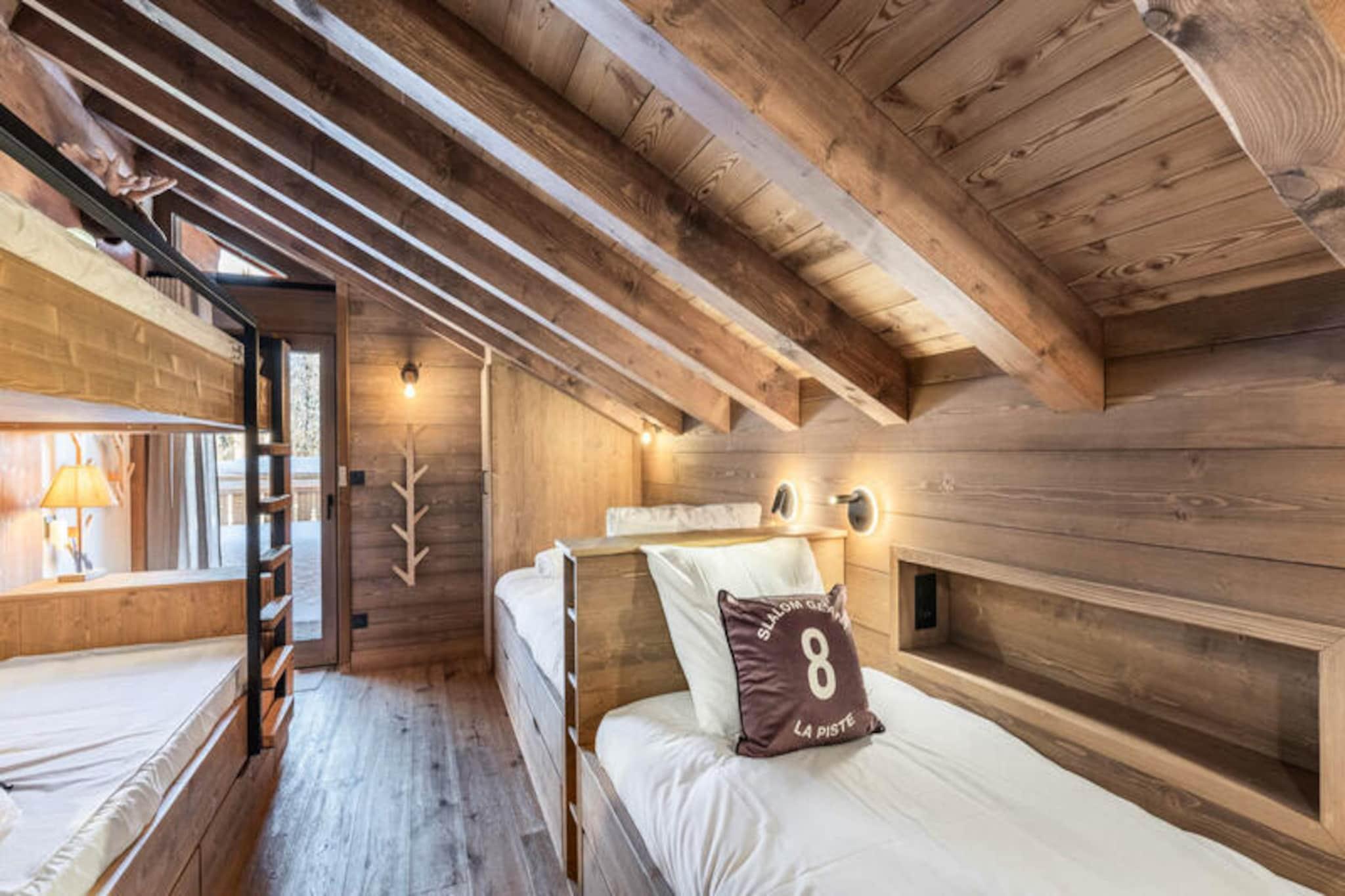 In the heart of Méribel’s charming Dou du Pont area, this elegant duplex apartment offers a luxurious alpine retreat for families and groups. With its southeast-facing orientation, the property is bathed in natural light, providing stunning views of the surrounding peaks. Just a short stroll from the town center and only 200 meters from the free shuttle stop, this location combines convenience with tranquility, making it an ideal base for exploring the Three Valleys ski area. Spanning two levels and 145m², the apartment comfortably accommodates up to 8 adults and 4 children. The first level features a spacious open-plan living, dining, and kitchen area with a cozy TV corner and a balcony equipped with garden furniture—perfect for unwinding after a day on the slopes. Two en suite double bedrooms on this level ensure privacy and comfort. Upstairs, you’ll find two twin bedrooms, one with a private balcony, and a charming dormitory with bunk beds and single beds, ideal for younger guests. Modern amenities such as a boot dryer, laundry facilities, and an enclosed garage with a ski rack add to the convenience of your stay. Méribel’s vibrant town center is just moments away, offering a delightful mix of shops, restaurants, and après-ski options. The free shuttle service ensures easy access to the extensive ski lifts and pistes of the world-renowned Three Valleys. In summer, the area transforms into a haven for hiking, mountain biking, and nature exploration, with breathtaking alpine scenery at every turn. Whether you’re seeking thrilling winter adventures or a serene summer escape, this beautifully designed duplex promises an unforgettable stay in the heart of the French Alps.