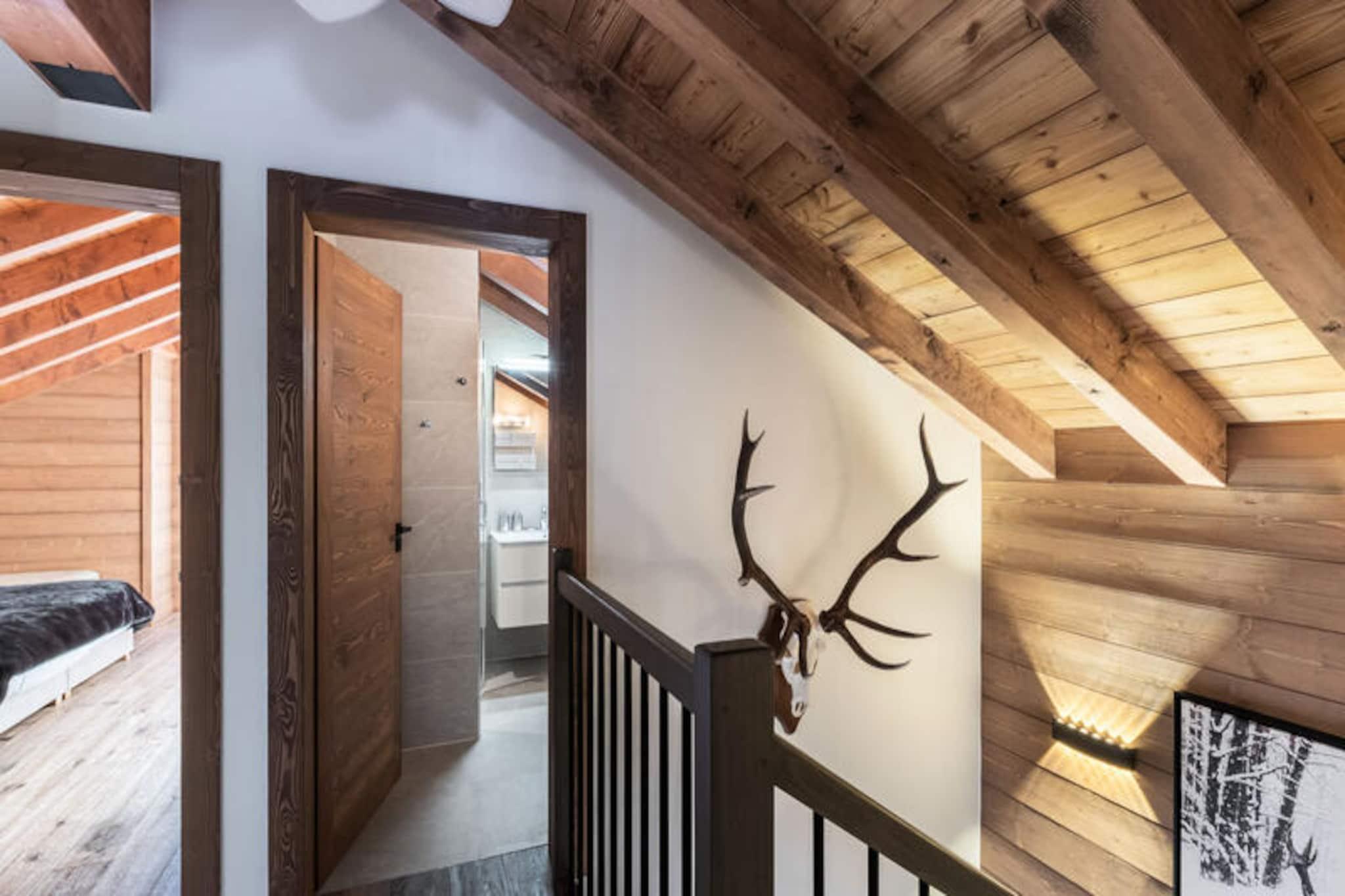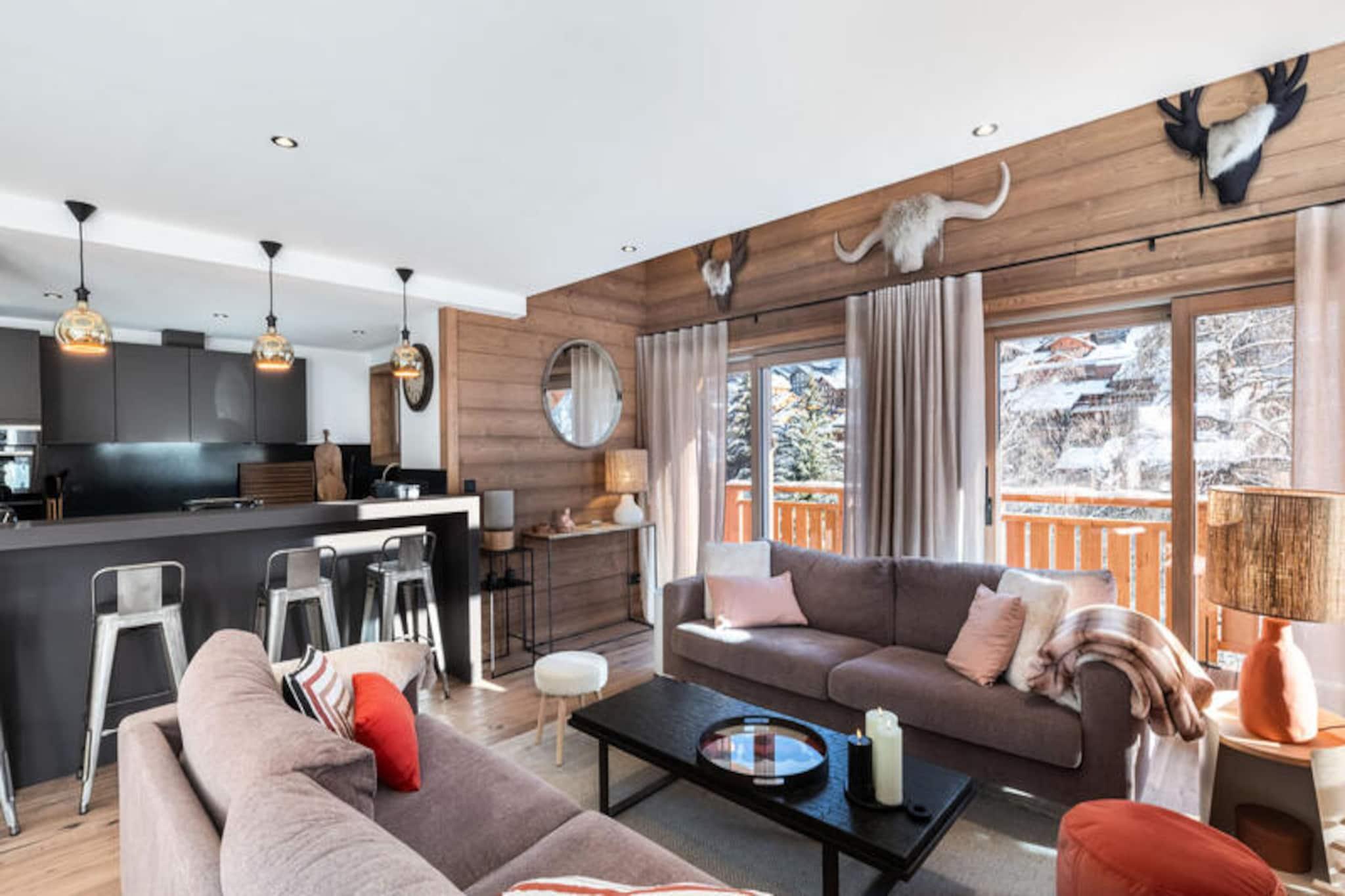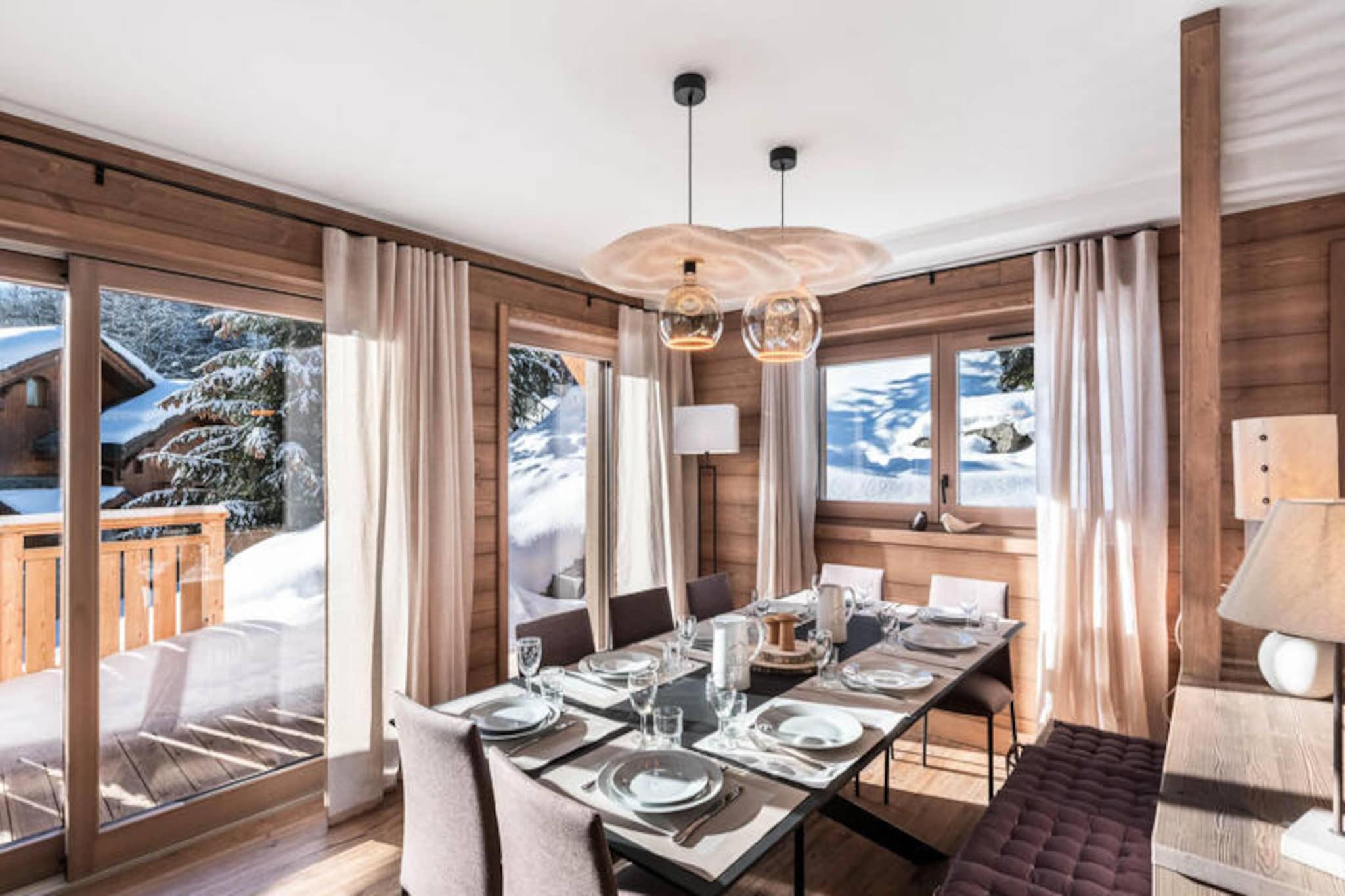 In the heart of Méribel’s charming Dou du Pont area, this elegant duplex apartment offers a luxurious alpine retreat for families and groups. With its southeast-facing orientation, the property is bathed in natural light, providing stunning views of the surrounding peaks. Just a short stroll from the town center and only 200 meters from the free shuttle stop, this location combines convenience with tranquility, making it an ideal base for exploring the Three Valleys ski area. Spanning two levels and 145m², the apartment comfortably accommodates up to 8 adults and 4 children. The first level features a spacious open-plan living, dining, and kitchen area with a cozy TV corner and a balcony equipped with garden furniture—perfect for unwinding after a day on the slopes. Two en suite double bedrooms on this level ensure privacy and comfort. Upstairs, you’ll find two twin bedrooms, one with a private balcony, and a charming dormitory with bunk beds and single beds, ideal for younger guests. Modern amenities such as a boot dryer, laundry facilities, and an enclosed garage with a ski rack add to the convenience of your stay. Méribel’s vibrant town center is just moments away, offering a delightful mix of shops, restaurants, and après-ski options. The free shuttle service ensures easy access to the extensive ski lifts and pistes of the world-renowned Three Valleys. In summer, the area transforms into a haven for hiking, mountain biking, and nature exploration, with breathtaking alpine scenery at every turn. Whether you’re seeking thrilling winter adventures or a serene summer escape, this beautifully designed duplex promises an unforgettable stay in the heart of the French Alps.