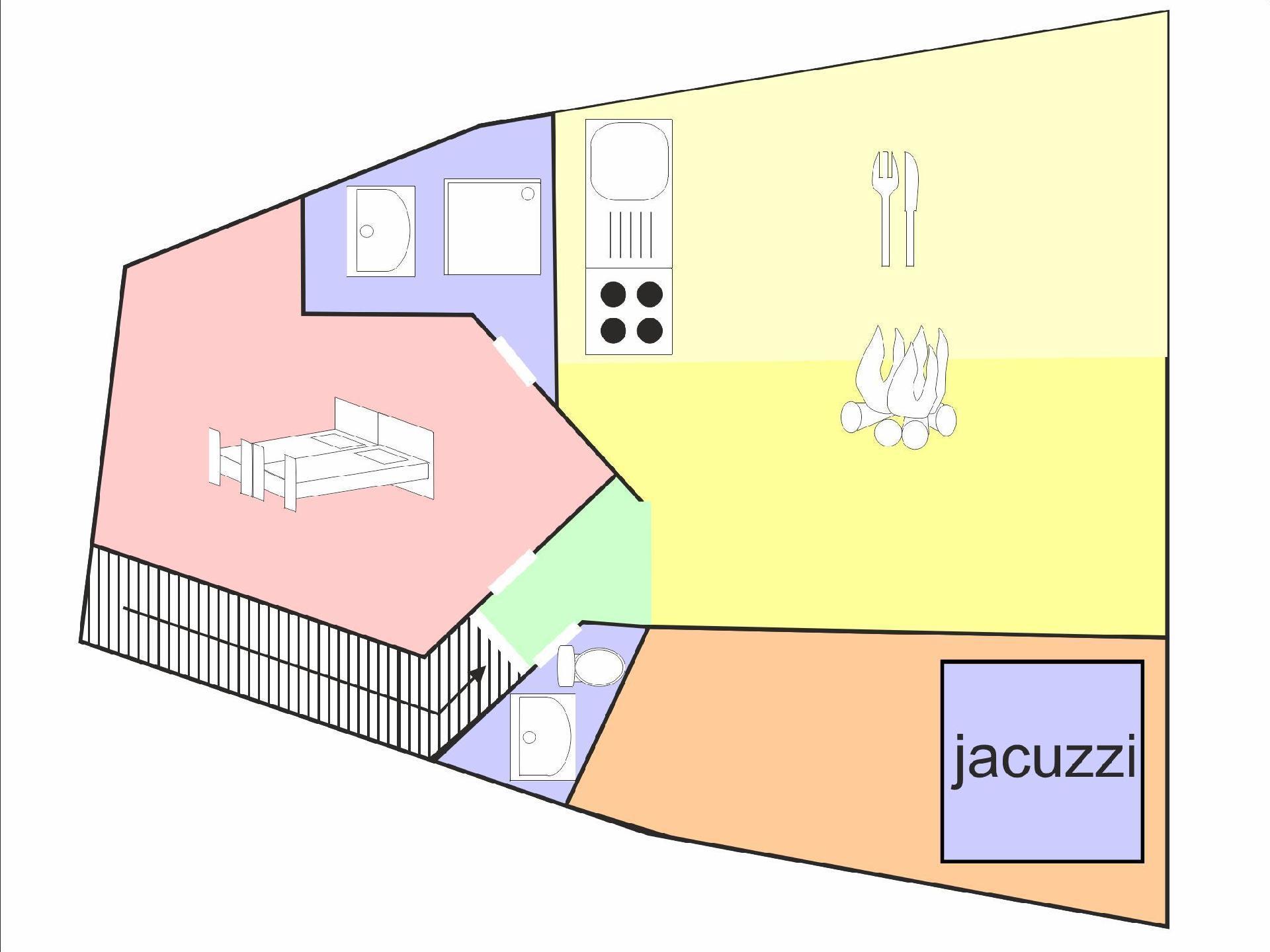 The chalet has a spacious living room with a wood-burning stove and a well-equipped, open-plan kitchen. All 4 bedrooms have their own private bathroom. The hot tub for 6 people on the balcony-terrace provides relaxation; included in the rental price.