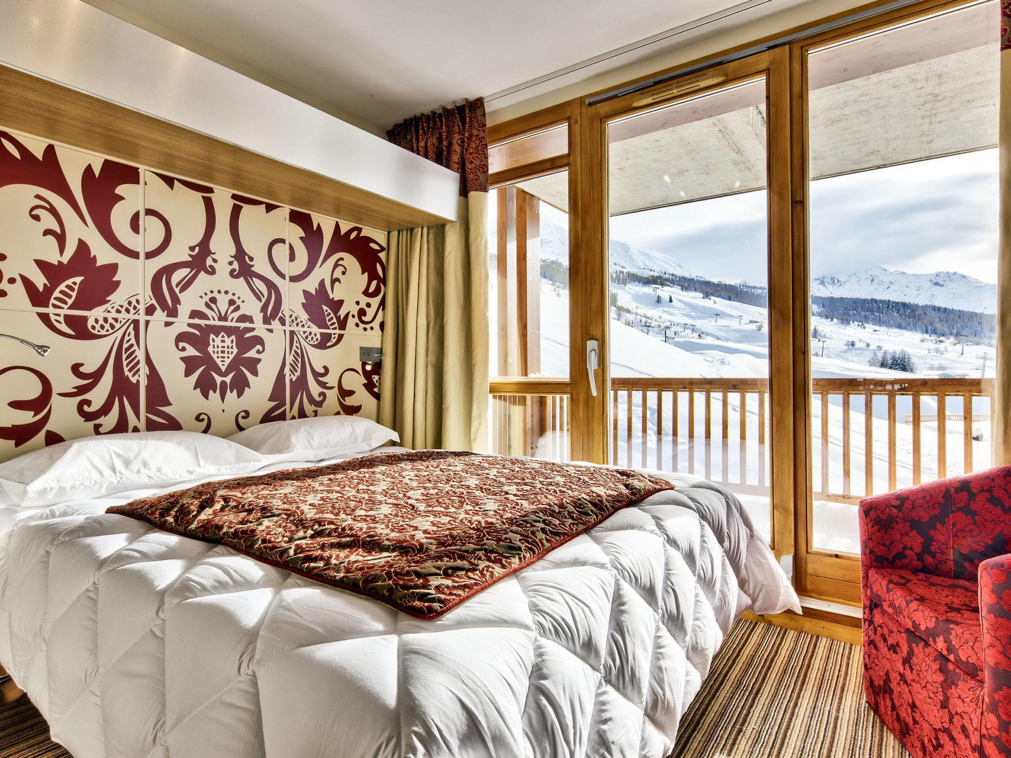 "Résidence Odalys Collection Edenarc", 3-room apartment 50 to 56 m2. Tasteful furnishings: living/sleeping room with 1 double sofabed, dining table and satellite TV. 1 room with 1 french bed. 1 room with 2 beds. Small, open kitchen (dishwasher, 4 ceramic glass hob hotplates, toaster, kettle, microwave, electric coffee machine). Shower/WC. Underfloor heating. Balcony or terrace. Balcony furniture. Beautiful view of the mountains. Facilities: children's high chair, baby cot. Internet (WiFi, free). Please note: maximum 1 pet/ dog allowed. Smoke alarm, fire extinguisher.