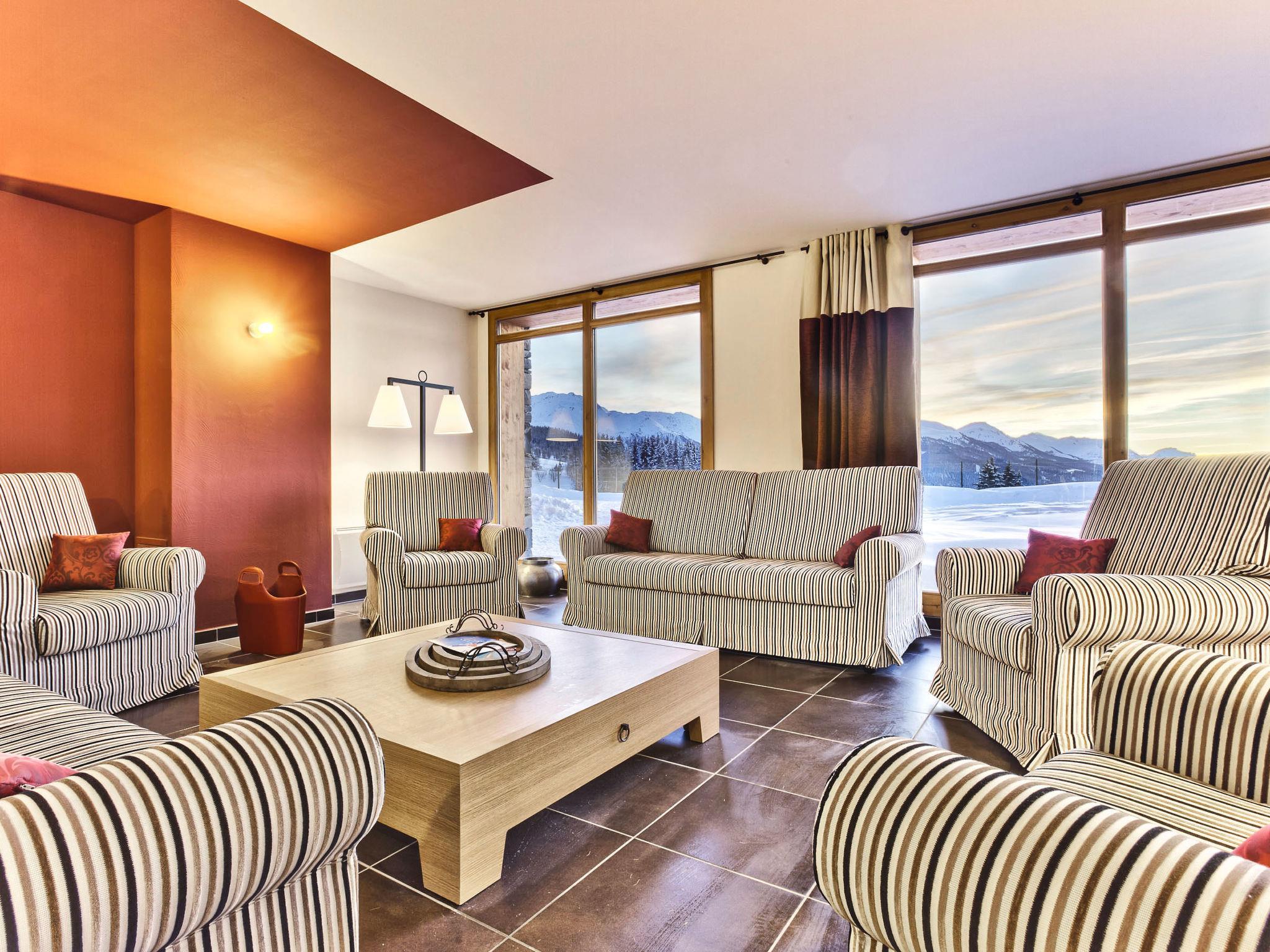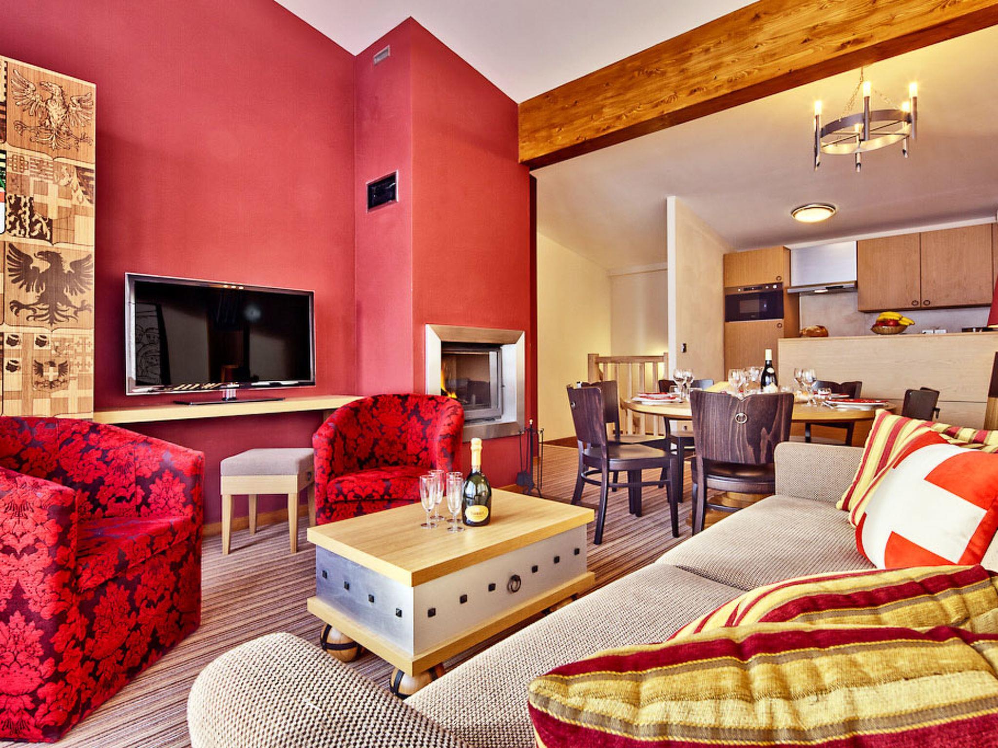 "Résidence Odalys Collection Edenarc", 3-room apartment 50 to 56 m2. Tasteful furnishings: living/sleeping room with 1 double sofabed, open-hearth fireplace, dining table and satellite TV. 1 room with 1 french bed. 1 room with 2 beds. Small, open kitchen (dishwasher, 4 ceramic glass hob hotplates, toaster, kettle, microwave, electric coffee machine). Bath/WC, shower/WC. Underfloor heating. Balcony or terrace. Balcony furniture. Beautiful view of the mountains. Facilities: children's high chair, baby cot. Internet (WiFi, free). Please note: maximum 1 pet/ dog allowed. Smoke alarm, fire extinguisher.