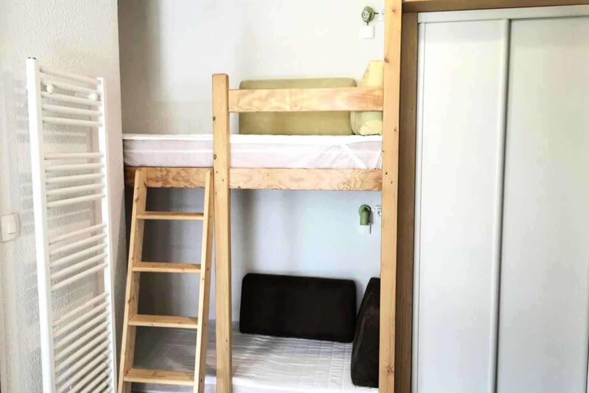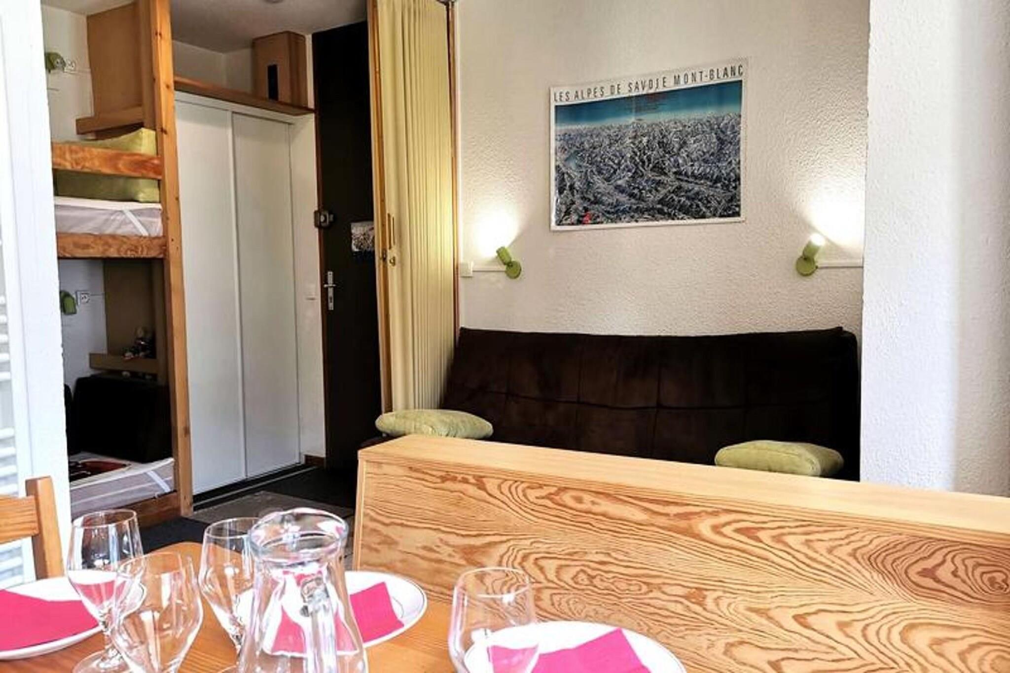 This divisible studio is ideal for up to 4 guests, featuring two separate sleeping areas. One area offers a set of bunk beds, separated by a movable partition, while the other includes a sofa bed and a trundle bed, both separated by a curtain. All beds come with duvets for comfort. The apartment is non-smoking and pets are not allowed. Linen and cleaning services are available for an additional fee, and tourist tax is not included in the rental price. The studio is ideally located in the hamlet of La Forêt, just 5 minutes from the ESF lessons and 10 minutes from the Piou-Piou club, making it perfect for families. It is only a 3-minute walk from the shops and slopes, allowing guests to easily explore the area and enjoy local cafes and eateries. The apartment is well-equipped with a fitted kitchen, including a dishwasher, fridge, ceramic hobs, microwave, and mini oven for cooking convenience. There is also a washing machine, coffee maker, and toaster for added comfort. The studio features a shower room and a separate toilet, providing all the essentials for a relaxing stay. With its cozy layout and convenient location, this apartment is perfect for a mountain getaway.