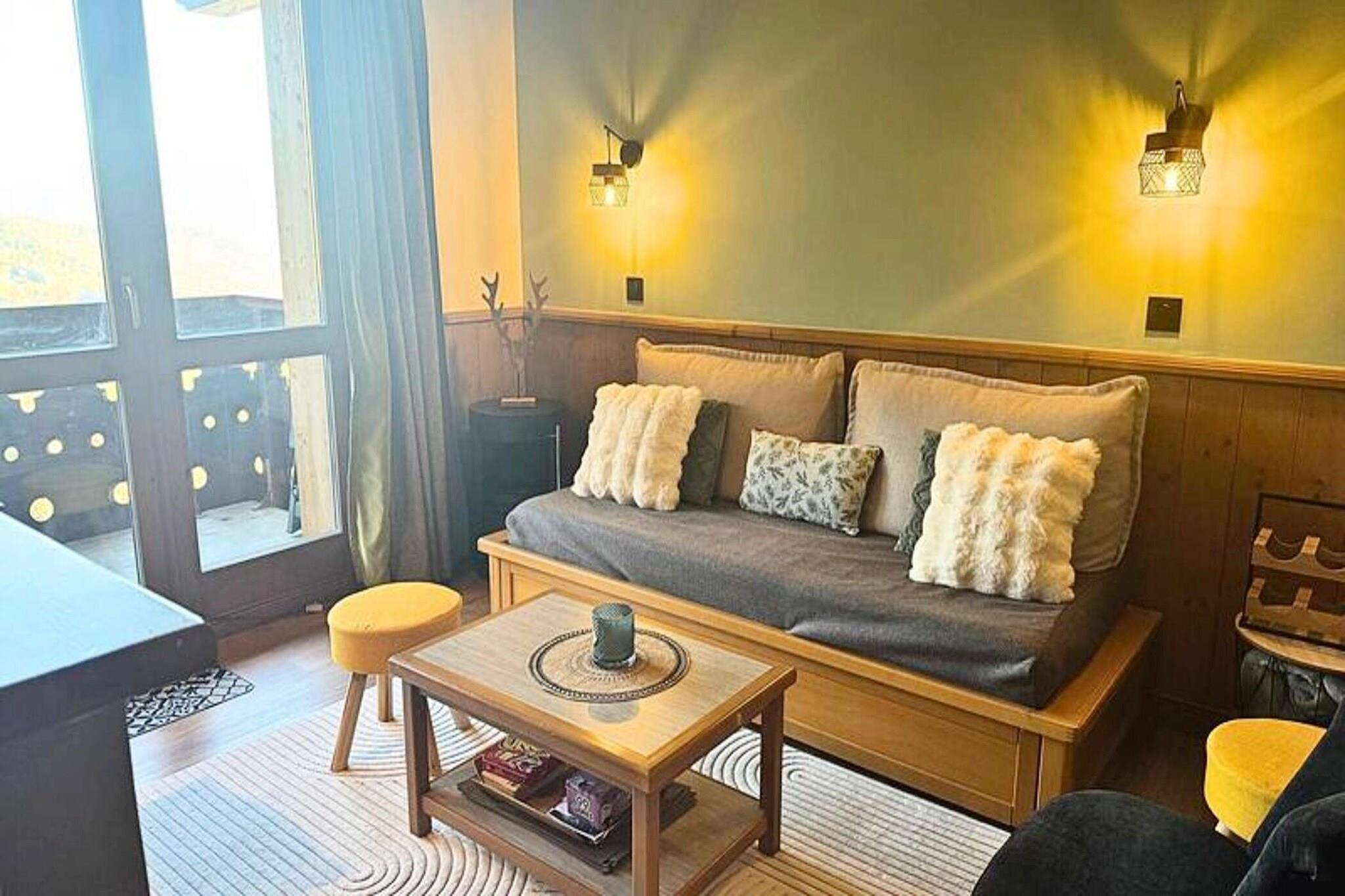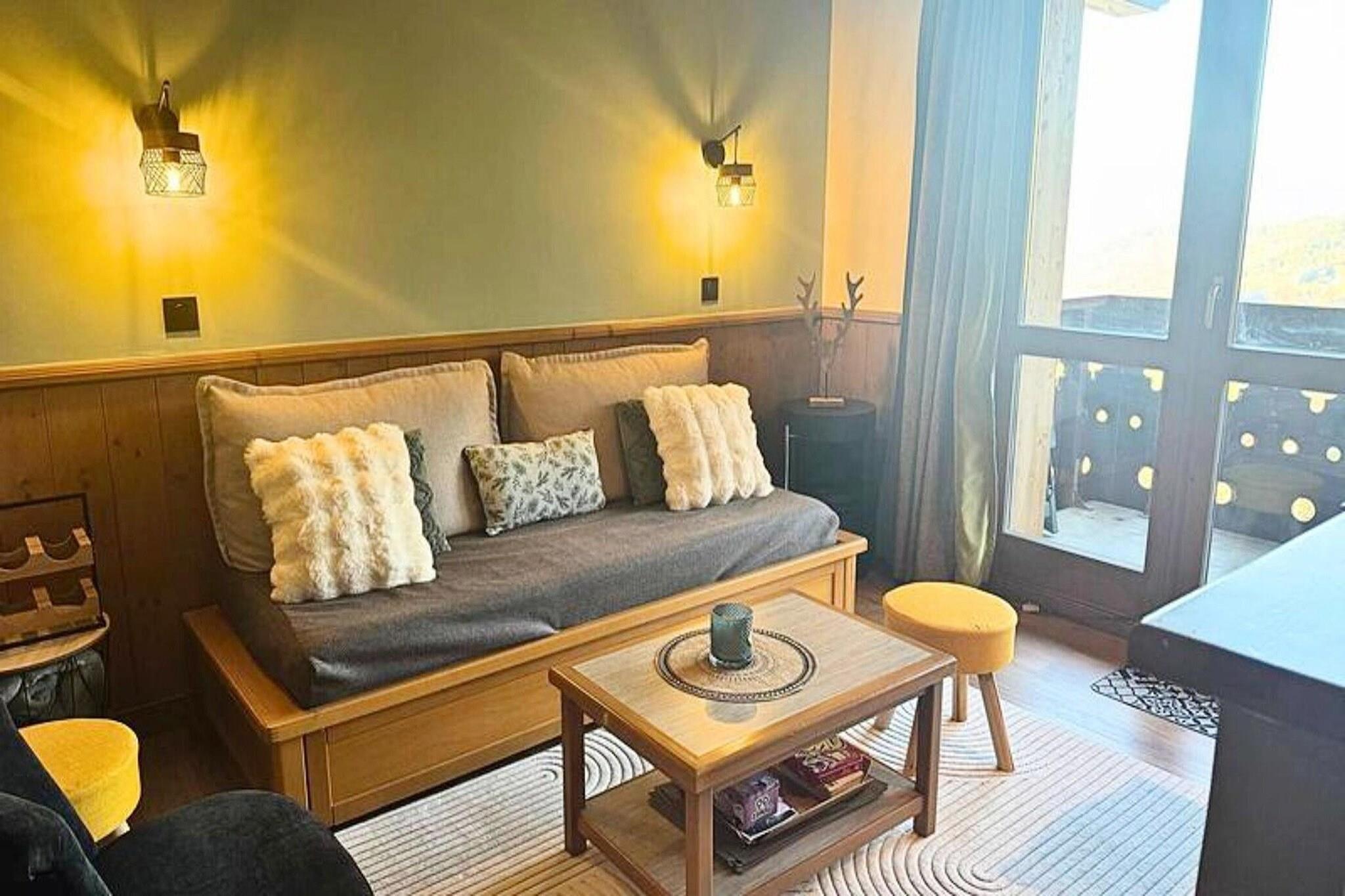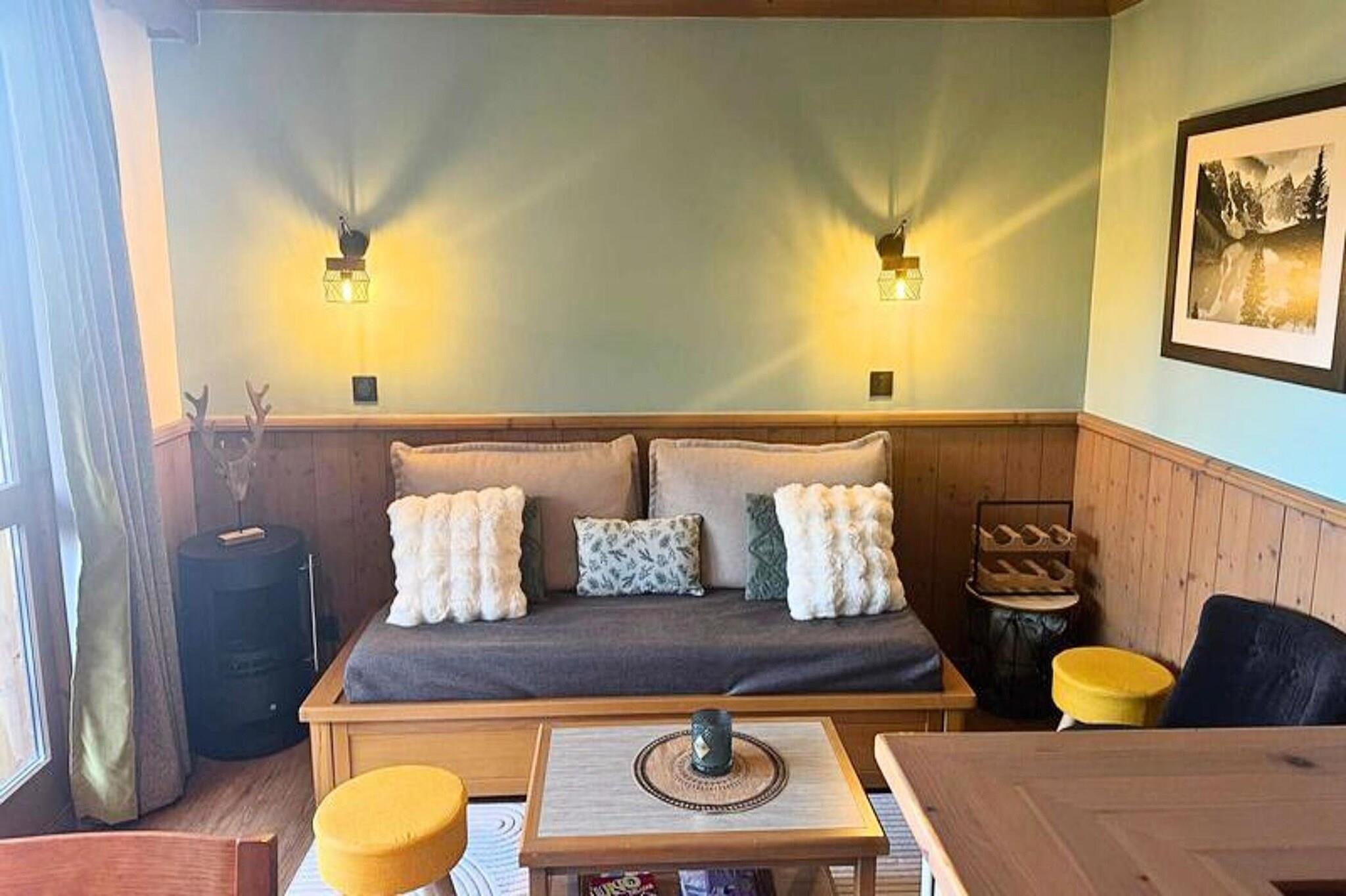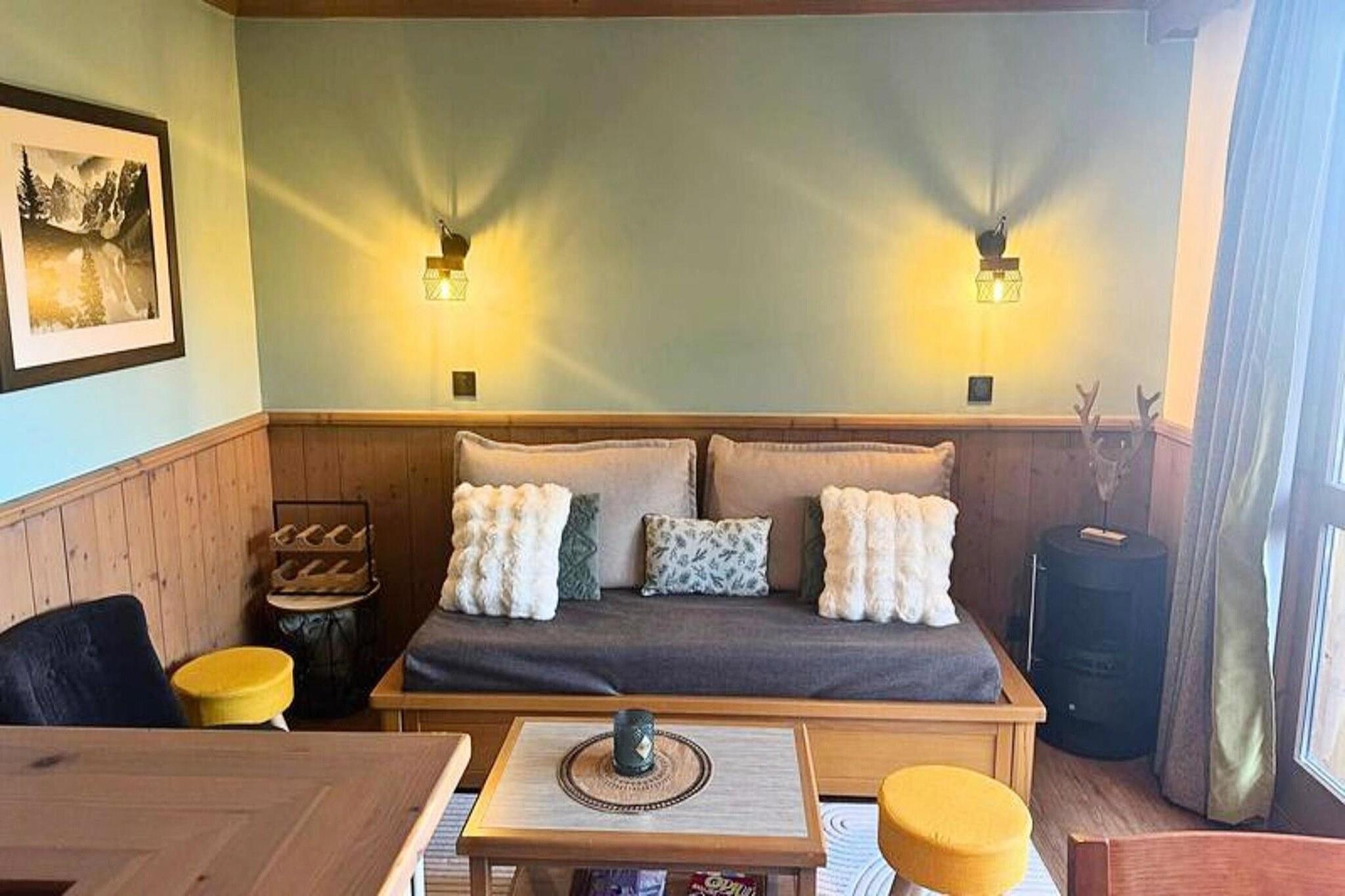 This spacious apartment accommodates 4 to 6 people, making it perfect for families or small groups. The living room is furnished with a single bed and a trundle bed, while the separate bedroom features 2 double bunk beds. All beds are equipped with duvets for added comfort. The apartment is non-smoking and pets are not allowed. While linen and cleaning services are not included, they can be arranged for an additional fee. A ski locker is also available for guests' convenience. Located in the resort’s hamlet of La Forêt, the apartment is ideally positioned near the slopes, shops, and a toboggan run, making it an excellent base for winter activities. Guests can easily access the slopes and explore the local cafes, shops, and markets, offering everything from hot drinks to souvenirs and gear for the mountains. The apartment features a well-equipped kitchen with ceramic hobs, a dishwasher, and a microwave, perfect for preparing meals during your stay. The bathroom includes a bathtub, and the toilets are separate for added convenience. Additional amenities include an Electrolux fridge, kettle, coffee maker, toaster, and vacuum cleaner. A hair dryer is provided, and the apartment has a balcony where you can relax and enjoy the surroundings. Accessible by elevator from the Teppes P1 covered car park, the apartment ensures ease and comfort throughout your stay.