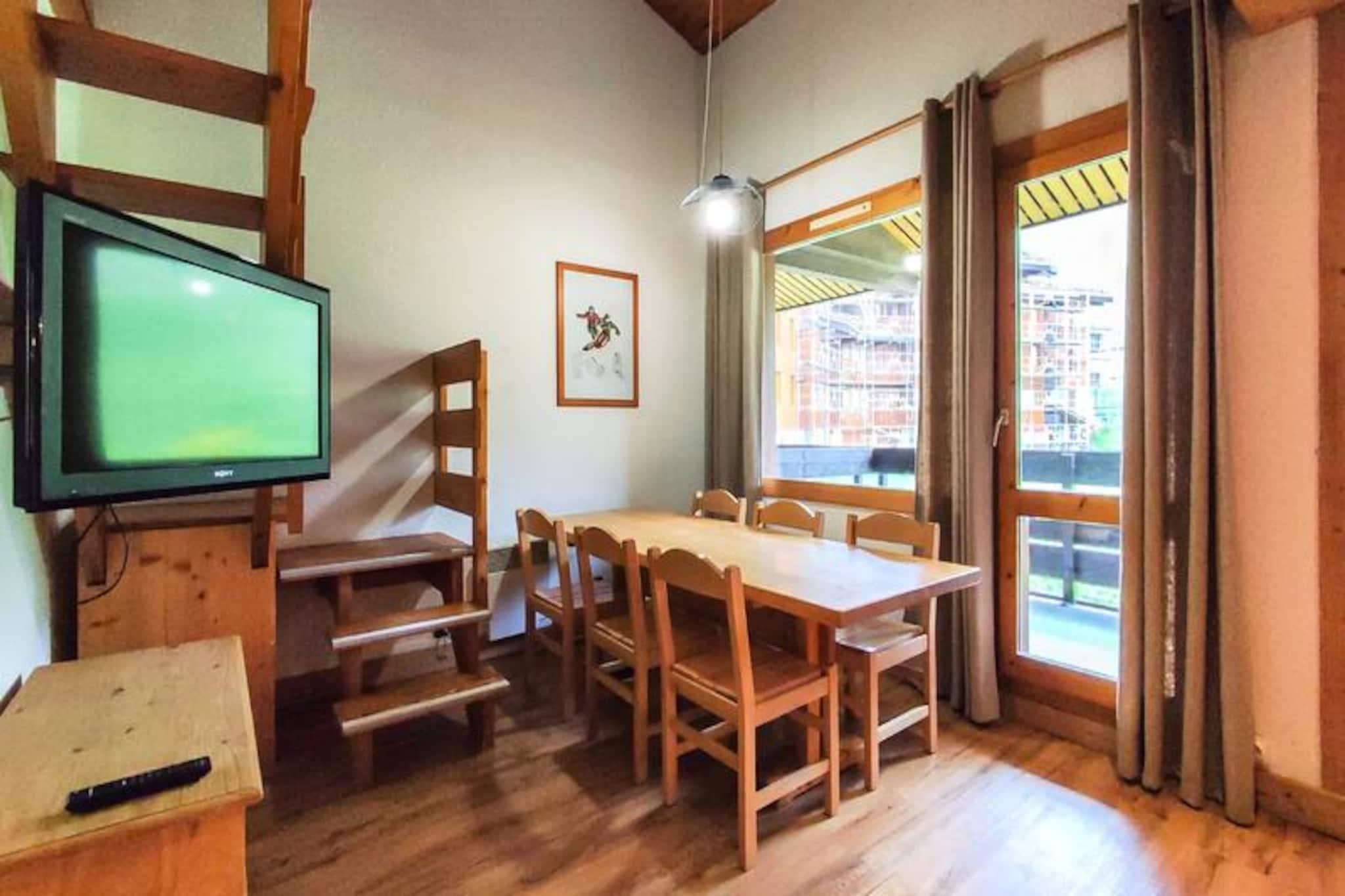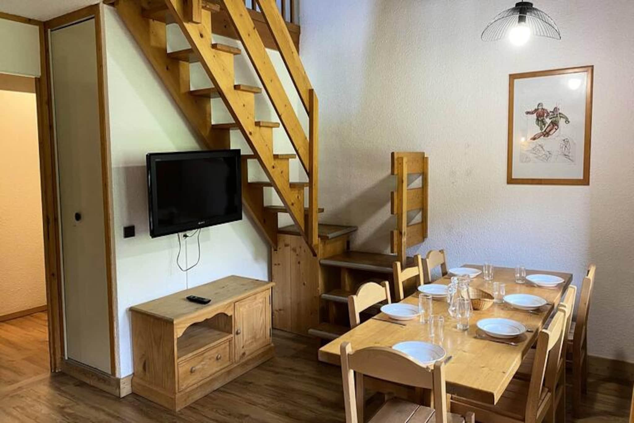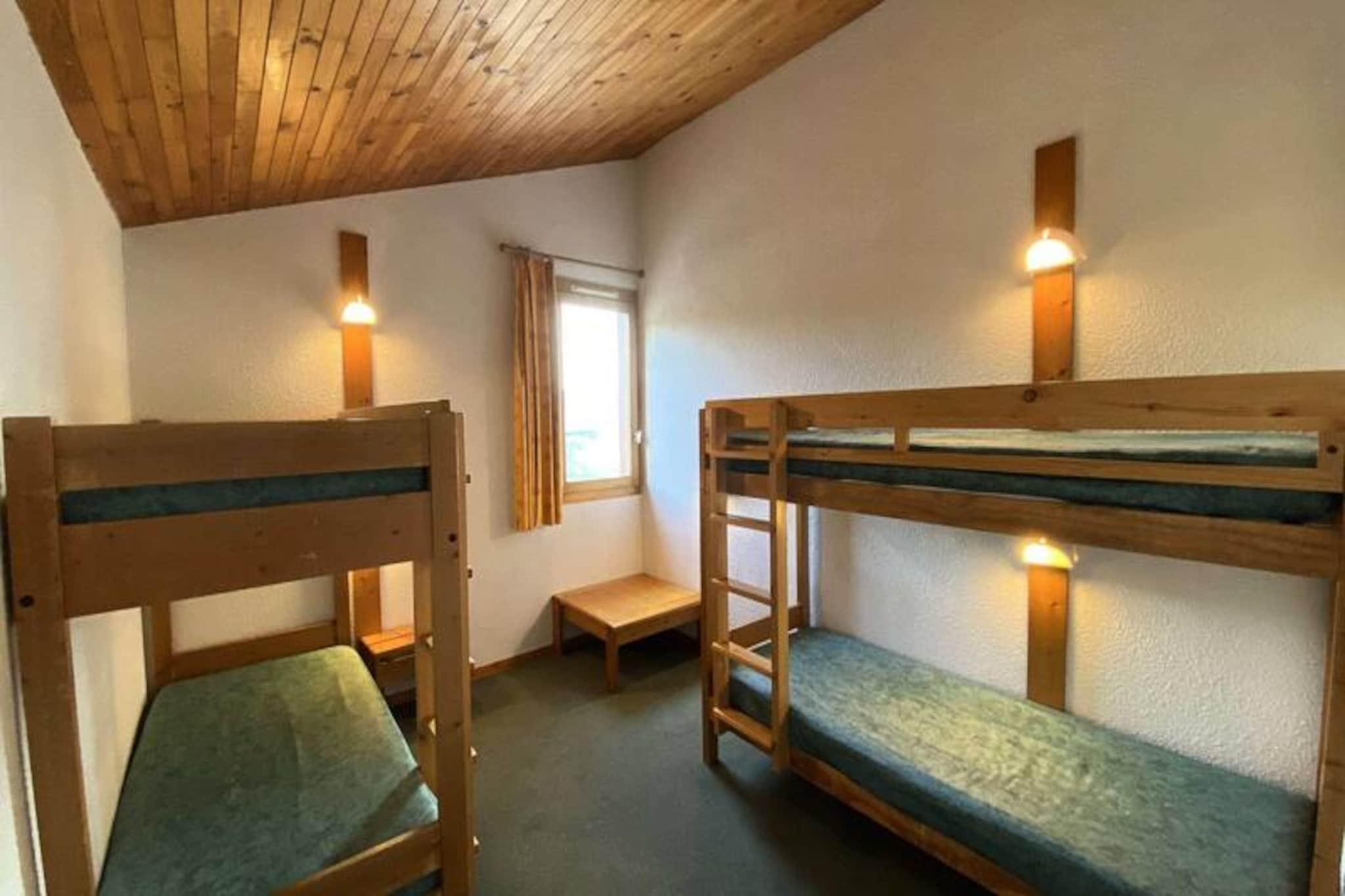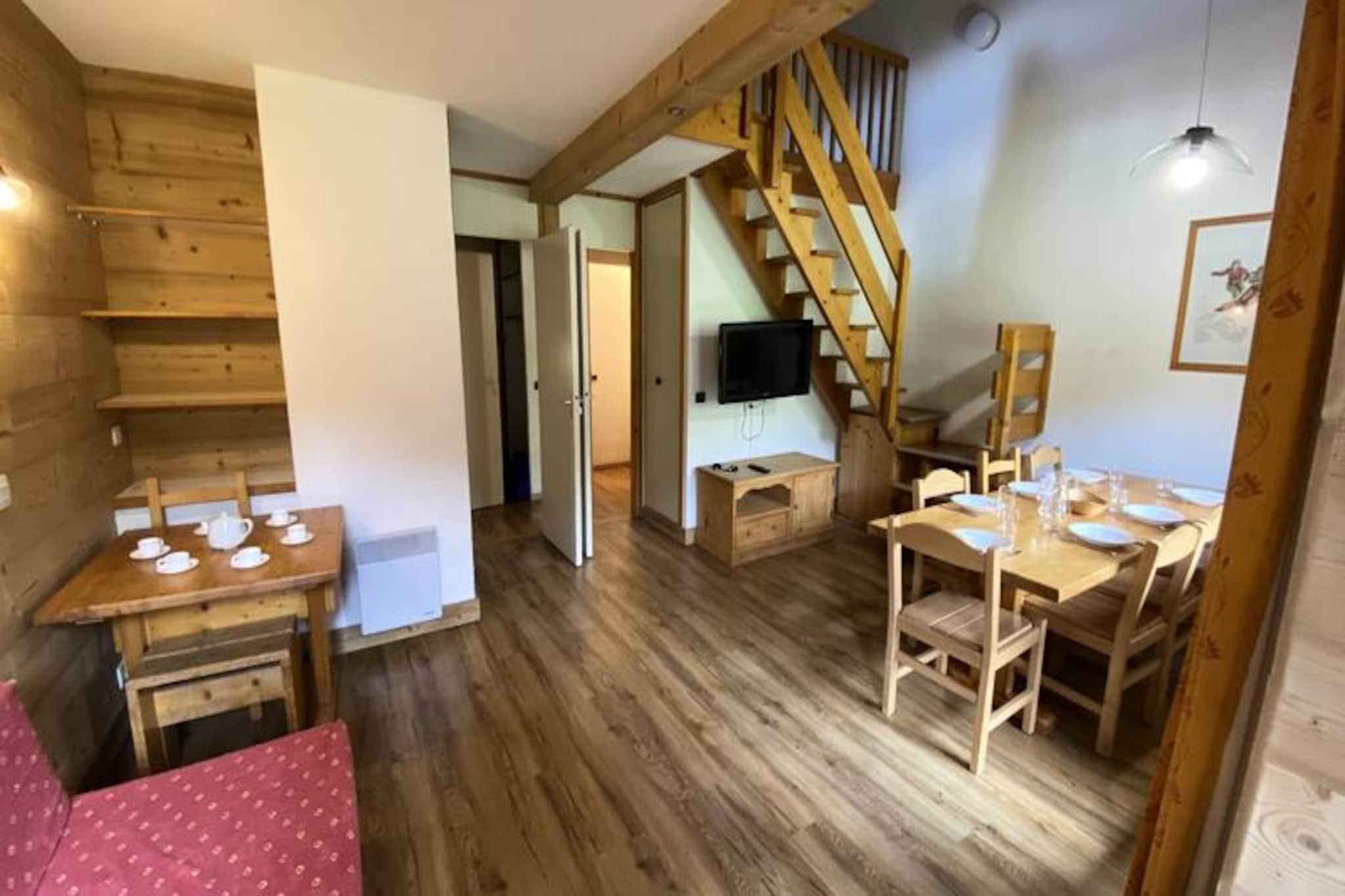 In the charming hamlet of Le Mottet, this delightful 3-room duplex offers a quintessential alpine retreat, perfect for ski enthusiasts and families alike. With the slopes just 20 meters away and the ski school a mere 50 meters from your doorstep, the convenience of ski-in/ski-out access ensures every moment of your holiday is spent enjoying the pristine snow of the Valmorel ski area. The pedestrianized setting adds to the serene atmosphere, making it a safe and peaceful haven for families with children. From the west-facing balcony, soak in the breathtaking views of the surrounding slopes and the enchanting alpine landscape. \n\nThe apartment spans 50m² and is thoughtfully designed to accommodate up to eight guests. The divisible living room features two single sofa beds, offering flexibility and comfort. Upstairs, the mezzanine boasts two single beds, while the separate bedroom includes two sets of bunk beds, making it ideal for families or groups of friends. The property includes a bathroom with a separate toilet and an additional shower room upstairs for added convenience. While Wi-Fi is not included, the cozy interiors and well-equipped spaces ensure a comfortable stay. Please note that the apartment is non-smoking, does not allow pets, and is not accessible for guests with reduced mobility.\n\nLe Mottet’s location is unparalleled, with the Altispace slope right at your doorstep and the convenience of the Télèbourg cable car connecting you to the heart of Valmorel resort. Shops, restaurants, and après-ski options are just 300 meters away, ensuring everything you need is within easy reach. In winter, enjoy the thrill of skiing, while summer opens up a world of hiking trails and mountain adventures. For added ease, underground parking is available for a fee, ensuring a stress-free arrival and departure.\n\nWhether you’re here to carve through the snow, explore the scenic beauty of the French Alps, or simply relax in the tranquil surroundings, this duplex in Le Mottet promises an unforgettable alpine escape. With its prime location, comfortable amenities, and stunning views, it’s the perfect choice for your next mountain getaway.