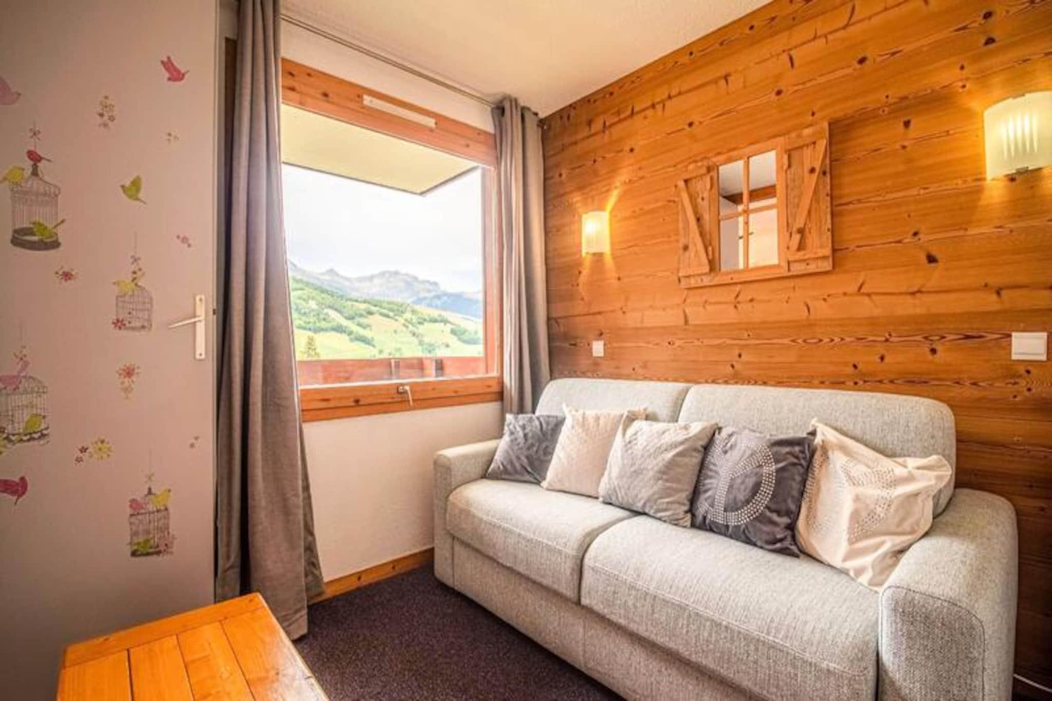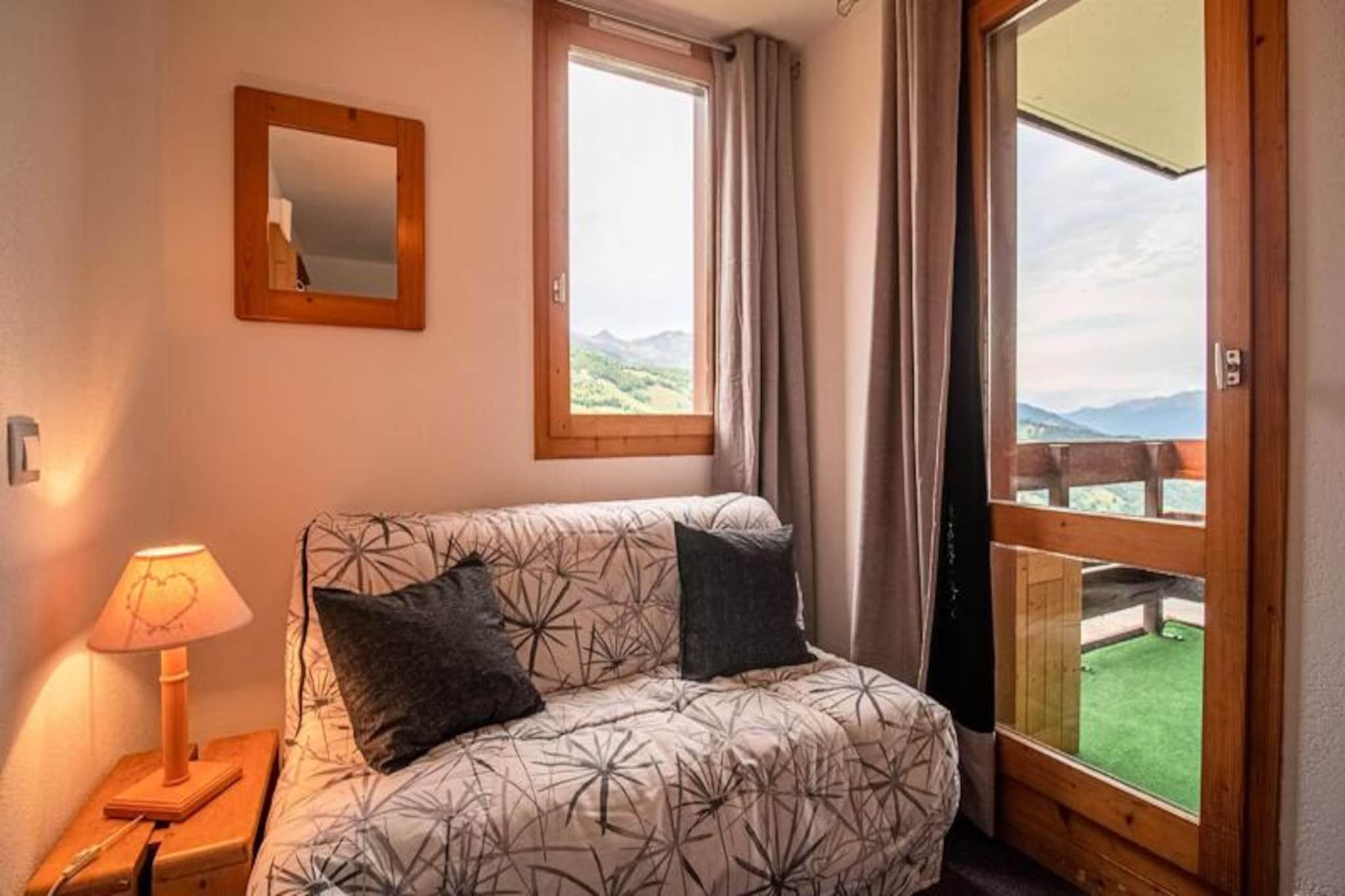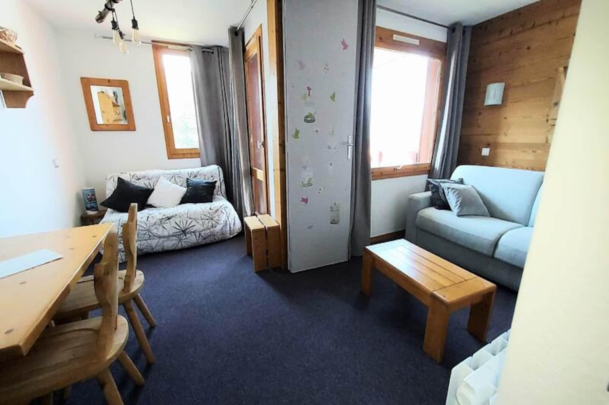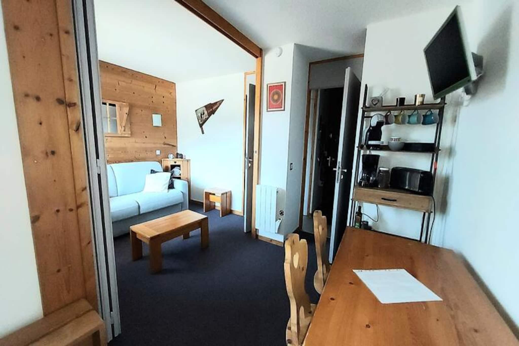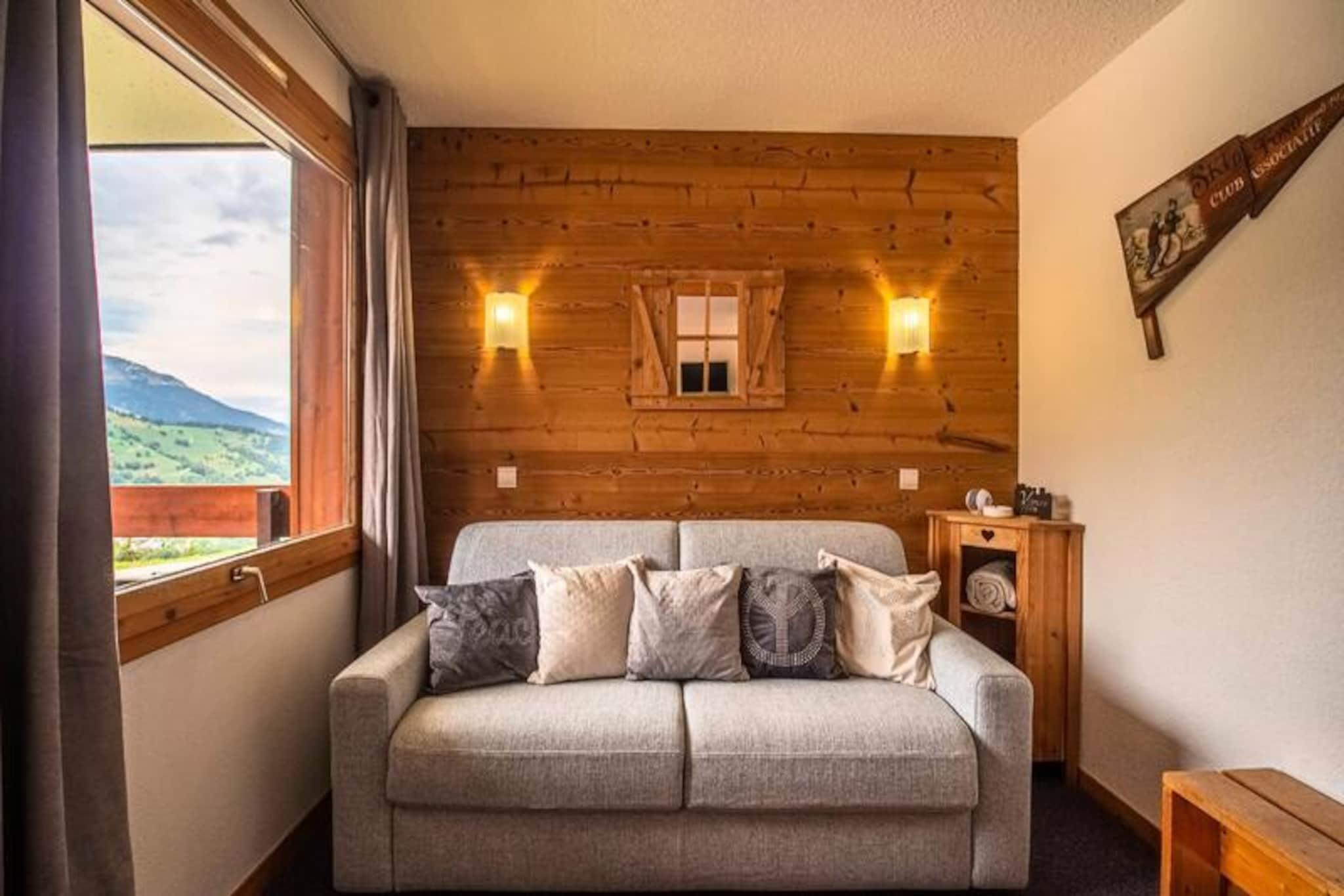 Perched in the serene Crève Coeur neighborhood of Valmorel, this charming studio apartment offers an inviting retreat for ski enthusiasts and nature lovers alike. With ski slopes just 50 meters away and ski lifts 100 meters from your doorstep, you’ll find yourself immersed in the alpine adventure from the moment you arrive. The unobstructed views from the north-west-facing balcony provide a tranquil backdrop for your mornings, as you sip coffee and breathe in the crisp mountain air. The peaceful surroundings and convenient location make this property a perfect base for exploring the beauty of the French Alps. \n\nInside, the apartment is thoughtfully designed for comfort and practicality. The living room features a sofa bed and an additional sofa bed, accommodating up to three guests. The kitchen is equipped with modern amenities, including a ceramic hob, dishwasher, multifunction oven, and refrigerator, making it easy to prepare meals after a day on the slopes. A separate bathroom and toilet add to the convenience, while the ski locker ensures your gear is safely stored. Although Wi-Fi is not included, the cozy ambiance and stunning views more than make up for it. Please note that pets are not allowed, and the apartment is non-smoking. \n\nThe Crève Coeur neighborhood is a hidden gem within Valmorel, offering easy access to essential shops such as a bakery, mini-market, and sports store just 200 meters away. The nearby Pierrafort cable car connects you to the resort center and the hamlet of Mottet, ensuring you’re never far from the action. Paid parking is available right in front of the residence, adding to the convenience for those traveling by car. \n\nWhether you’re here to ski, hike, or simply relax in the breathtaking alpine scenery, this studio provides a welcoming and practical home away from home. With an average guest rating of 8.86/10, it’s clear that this property leaves a lasting impression on all who stay here. Let the magic of Valmorel captivate you as you create unforgettable memories in this idyllic mountain retreat.