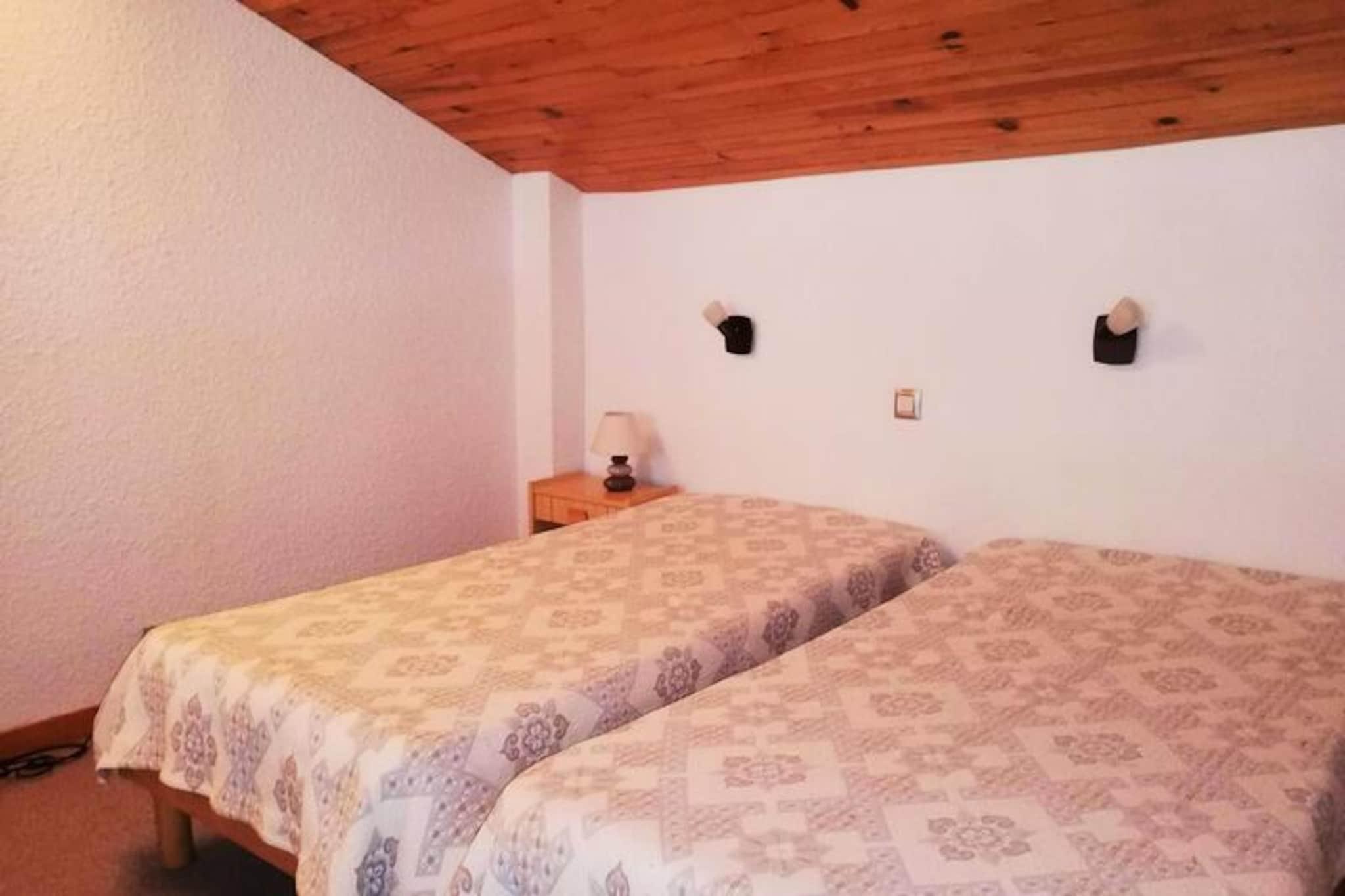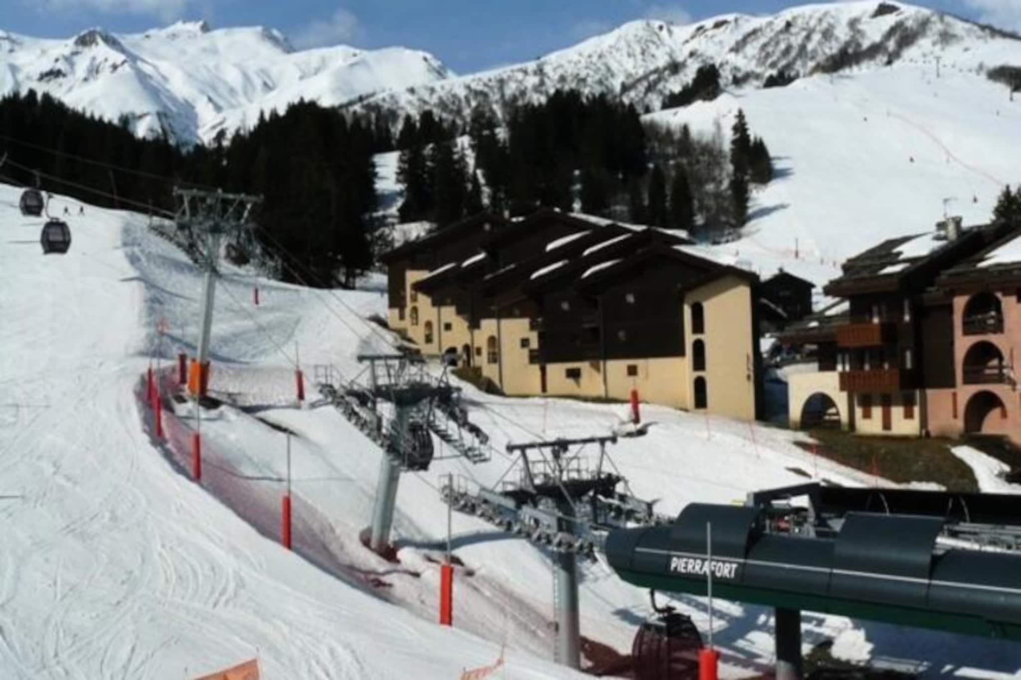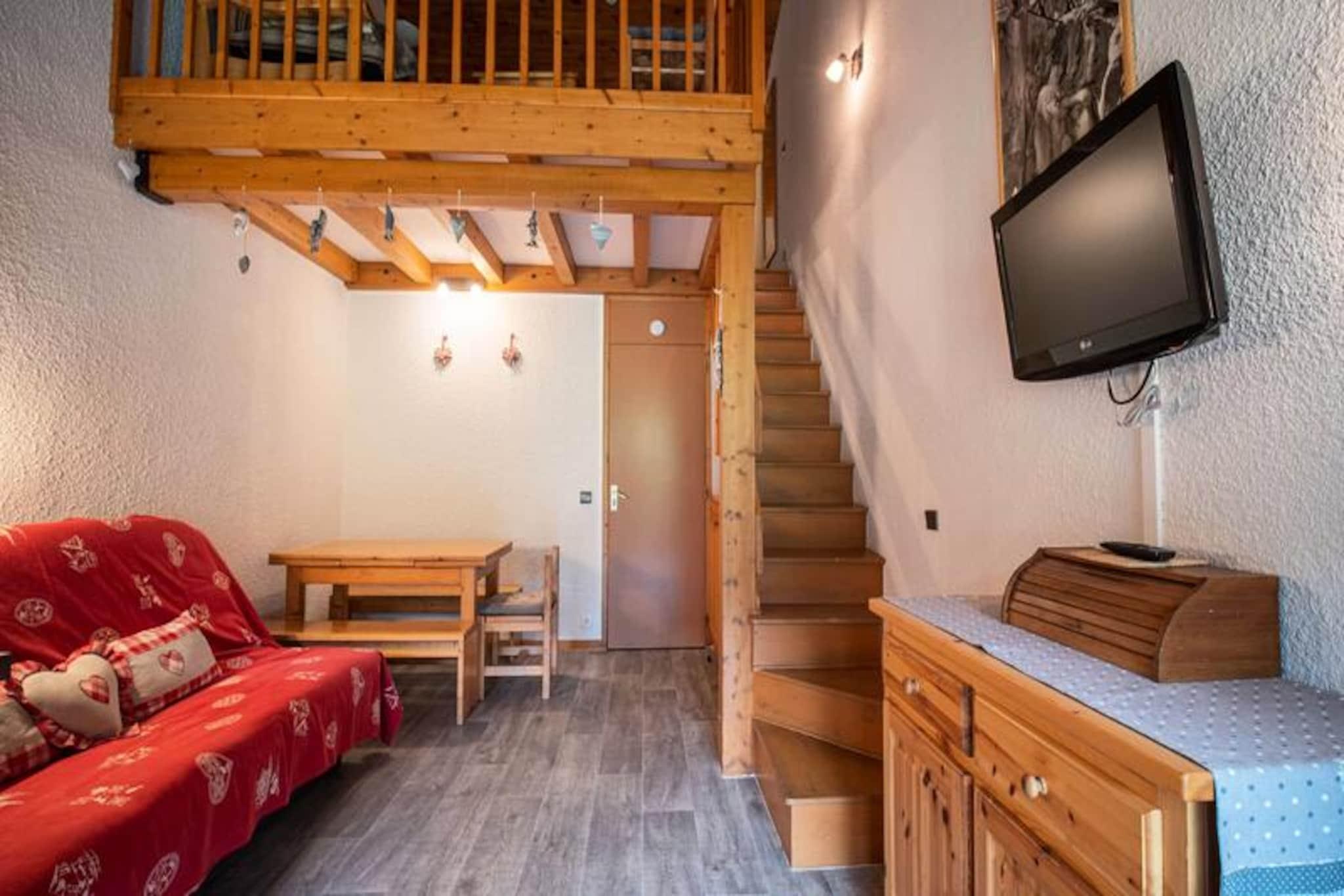 High above the picturesque slopes of Valmorel, this charming 44m² apartment on the top floor of the 'Le Pierrafort' residence offers a serene alpine retreat with breathtaking views of the surrounding mountains. The south-facing balcony invites you to soak in the beauty of the slopes while enjoying the crisp mountain air. Perfectly situated for ski enthusiasts, the residence provides direct access to the Pierrafort cable car and is less than 100 meters from the Télèbourg ski lift, ensuring seamless access to the snowy adventures of the French Alps. \n\nInside, the apartment is thoughtfully designed to combine comfort and functionality. The spacious living room features a cozy double sofa bed, while the bedroom and mezzanine offer flexible sleeping arrangements with two single beds each, making it ideal for families or groups of up to six. A modern open-plan kitchen, equipped with a ceramic hob, dishwasher, oven, microwave, and a large refrigerator, allows you to prepare hearty meals after a day on the slopes. The mezzanine also includes a lounge area, perfect for unwinding. The apartment boasts new bedding for added comfort, a separate bathroom, and a toilet. Please note that Wi-Fi is not included, and the apartment is non-smoking. Pets are welcome for an additional fee.\n\nThe Crève Coeur hamlet, where the residence is located, offers a quiet and convenient base. Basic shops such as a bakery, mini-market, and sports store are within walking distance, and the Télèbourg cable car connects you to the resort center and the Mottet hamlet. In summer, the area transforms into a haven for outdoor enthusiasts, with free parking nearby and easy access to hiking trails and playgrounds for children. \n\nWhether you're seeking thrilling ski adventures in winter or tranquil mountain escapes in summer, this apartment promises a memorable stay in the heart of Valmorel's alpine charm.