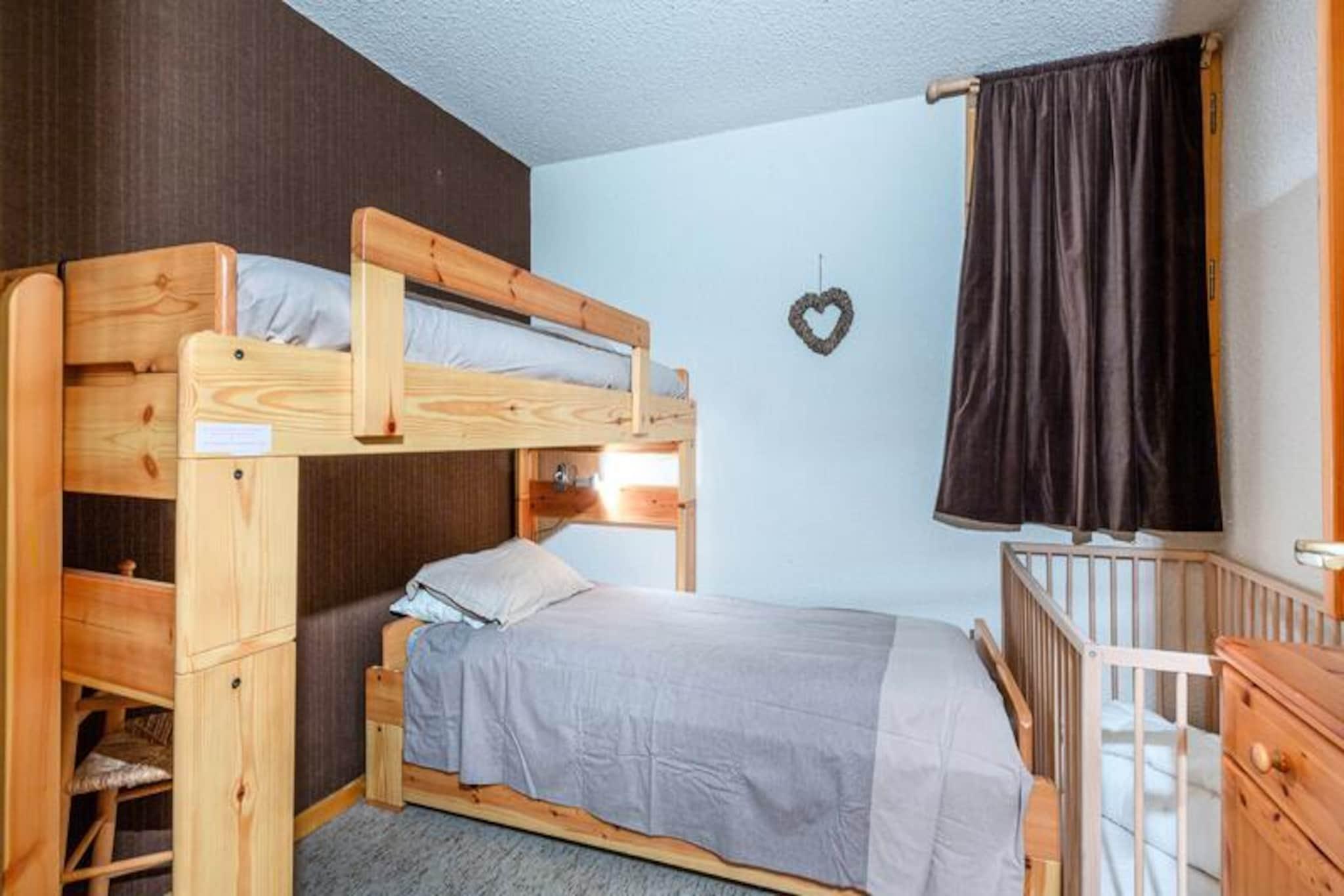 At the heart of the picturesque Crève Coeur district in Valmorel, this charming 3-room mezzanine apartment invites you to experience the perfect alpine getaway. With ski slopes just 50 meters away and ski lifts within 100 meters, every day begins with effortless access to the pristine snow-covered trails. The southwest-facing balcony offers unobstructed views of the surrounding peaks, creating a serene backdrop for your mountain retreat. Whether you're seeking adventure or relaxation, this property is a haven for all seasons. \n\nInside, the apartment boasts a fully renovated kitchen equipped with a ceramic hob, dishwasher, multifunction oven, and refrigerator, making it easy to prepare hearty meals after a day on the slopes. The living room features a TV and DVD player for cozy evenings, while the sleeping arrangements cater to families and groups with a mezzanine double bed, bunk beds in one bedroom, and flexible options in the second bedroom. Modern amenities include a separate bathroom, a fully renovated shower room with a washing machine, and a ski locker for added convenience. Please note that Wi-Fi is not included, and pets are not allowed. \n\nThe Crève Coeur district is ideally located between the resort center and the hamlet of Mottet, connected by a cable car. Nearby, you'll find essential shops such as a bakery, mini-market, and sports store, ensuring all your needs are met. Paid parking is available right in front of the residence, making arrival and departure stress-free. For those looking to explore, the Pierrafort gondola and Côte Soleil ski lift provide easy access to Valmorel’s expansive ski domain. \n\nWhether you're here to carve through fresh powder, hike scenic trails, or simply soak in the alpine charm, this apartment offers the perfect base for unforgettable memories in the French Alps.