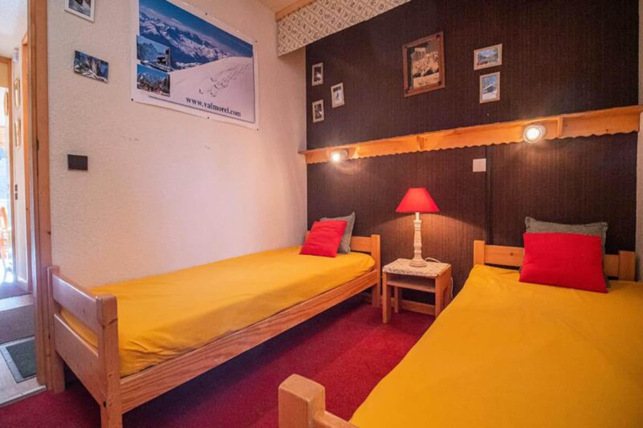 In the charming Crève-Cœur district of Valmorel, this delightful two-room apartment offers a cozy alpine retreat just steps from the slopes. With the Côte Soleil ski lift only 100 meters away and shops within a short 200-meter stroll, you’ll find everything you need for a seamless mountain getaway. The southwest-facing balcony invites you to soak in the breathtaking views of the surrounding peaks, making it the perfect spot to unwind after a day of adventure in the snow or sunshine. \n\nInside, the apartment is thoughtfully designed for comfort and convenience. The open-plan kitchen is fully equipped with an electric hob, dishwasher, combination oven, and refrigerator, making it easy to prepare hearty meals. The living room features a comfortable 140 cm rapido sofa and a television, while the bedroom offers two single beds for a restful night’s sleep. A separate bathroom and toilet add to the practicality of the space. For added convenience, the residence includes a ski locker and allows car access right up to the building. Pets are welcome for a small supplement, ensuring no family member is left behind.\n\nThe Crève-Cœur neighborhood is ideally located, connecting you to the heart of Valmorel and the picturesque hamlet of Mottet via cable car. Nearby, you’ll find a sports store, bakery, and mini-market for all your essentials. Whether you’re here to carve through pristine slopes in winter or explore scenic hiking trails in summer, this apartment places you at the center of it all. \n\nWith its prime location, charming ambiance, and practical amenities, this residence is the perfect choice for couples, small families, or friends seeking an unforgettable alpine escape.