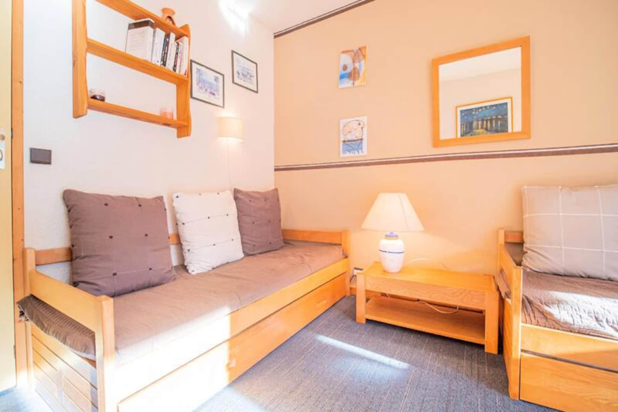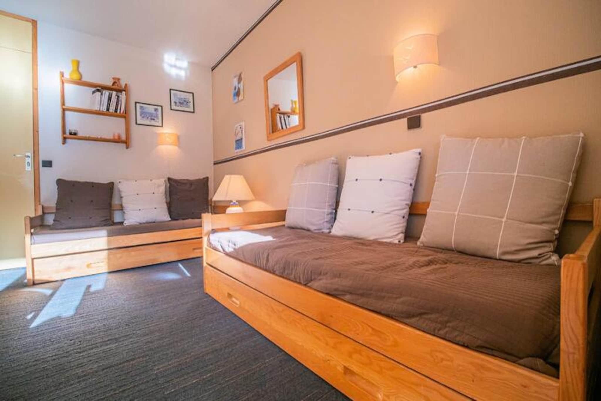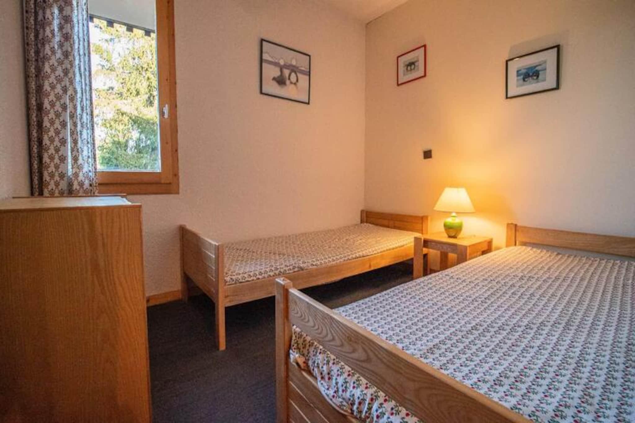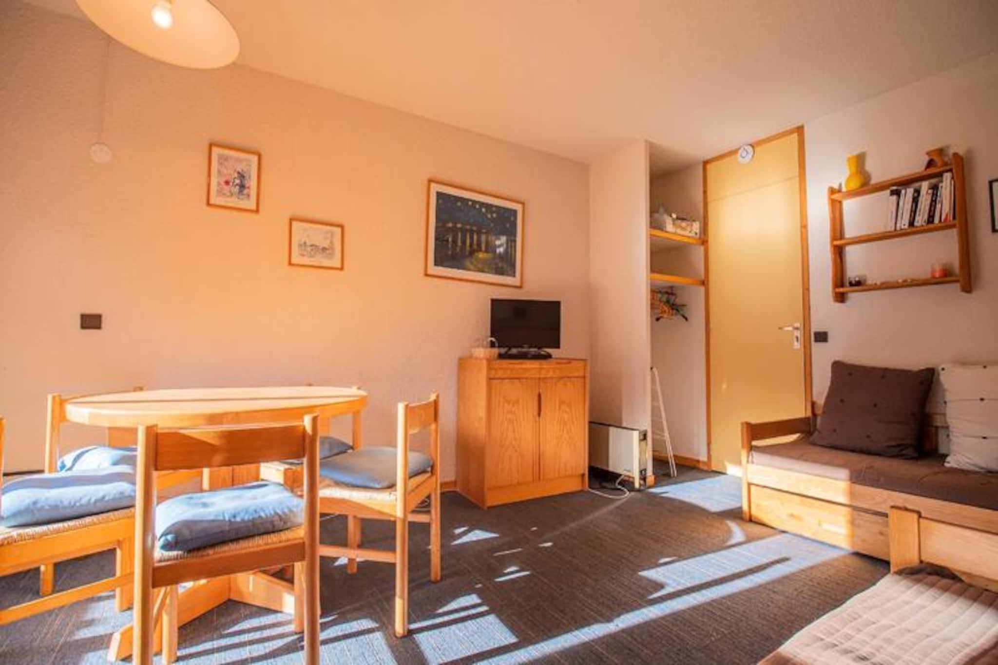 At the edge of the picturesque Crève-Cœur district in Valmorel, this charming two-room apartment invites you to experience the magic of the French Alps. With ski slopes just 50 meters away and the Pierrafort gondola a mere 100 meters from your doorstep, every day begins with the promise of alpine adventures. Whether you're here to carve through fresh powder or explore scenic trails in the summer, this cozy retreat offers a perfect blend of comfort and convenience. From its southwest-facing balcony, soak in unobstructed views of the surrounding peaks, a tranquil backdrop to your mountain escape. \n\nInside, the apartment is thoughtfully designed to accommodate up to five guests. The open-plan kitchen is equipped with modern appliances, including an electric hob, dishwasher, microwave, and refrigerator, making it easy to prepare hearty meals after a day outdoors. The living room features two single beds and a trundle bed, while the separate bedroom offers two additional single beds, ensuring restful nights for all. A bathroom and separate toilet add to the practicality, while the ski locker and car access in front of the residence enhance convenience. Pets are welcome for a small supplement, making this a great choice for families. \n\nThe Crève-Cœur district is ideally situated between Valmorel's resort center and the charming hamlet of Mottet, connected by cable car. Basic shops, including a bakery, mini-market, and sports store, are just 200 meters away, ensuring you have everything you need within easy reach. Whether you're exploring the slopes or enjoying the vibrant atmosphere of the village, this apartment is your gateway to unforgettable alpine moments. \n\nChoose this cozy haven for its unbeatable location, welcoming amenities, and the chance to create lasting memories in the heart of the French Alps.