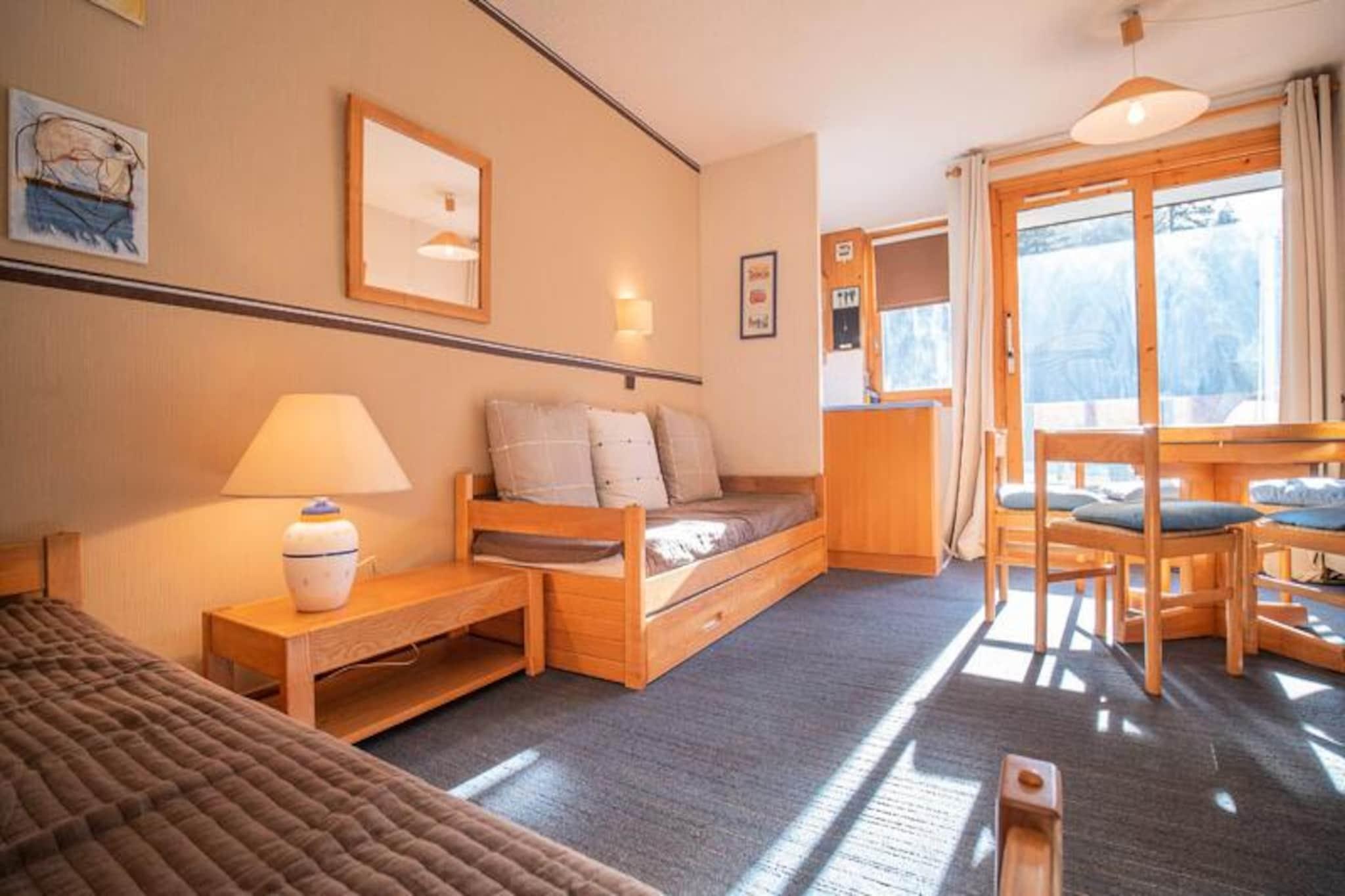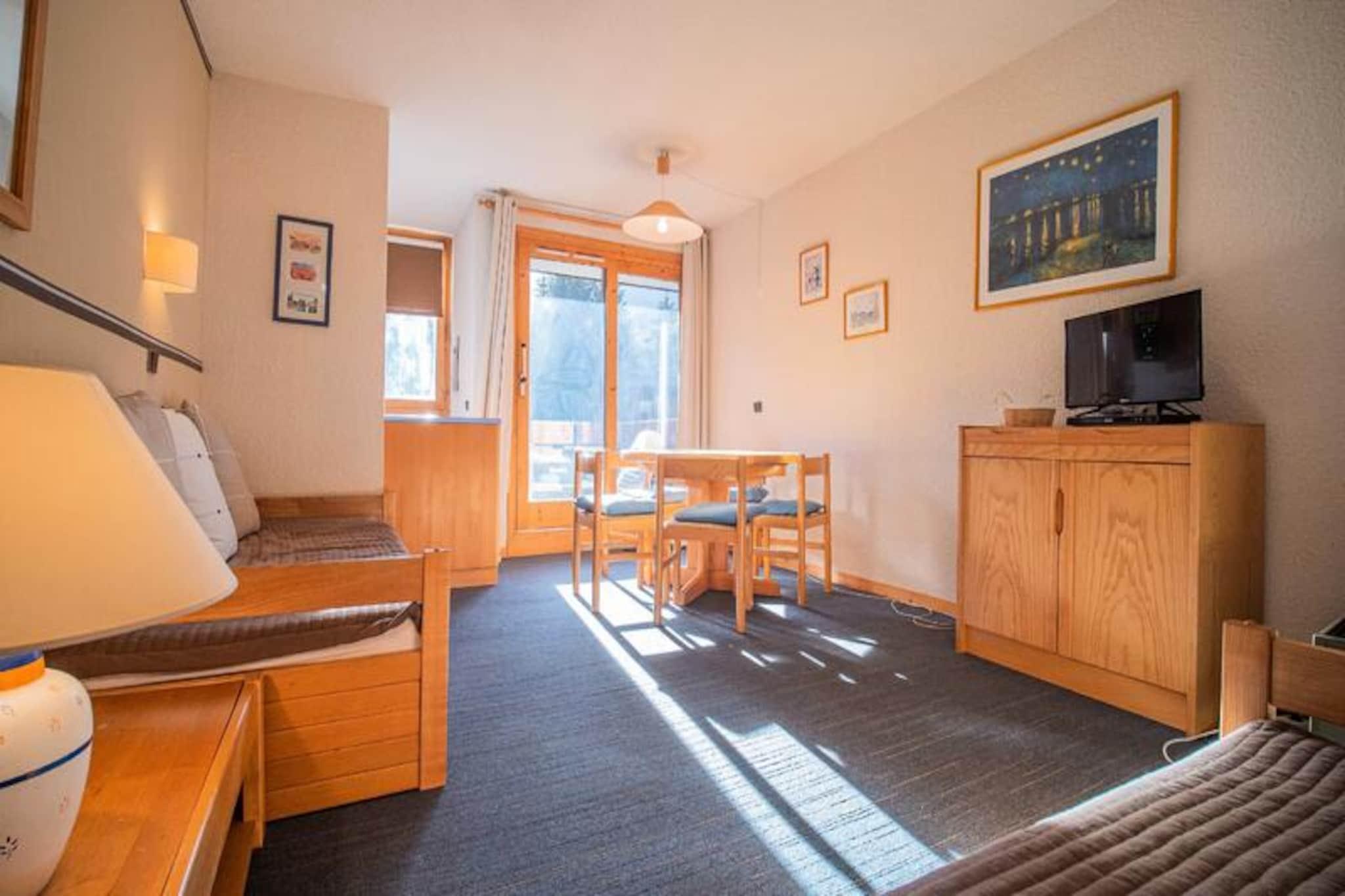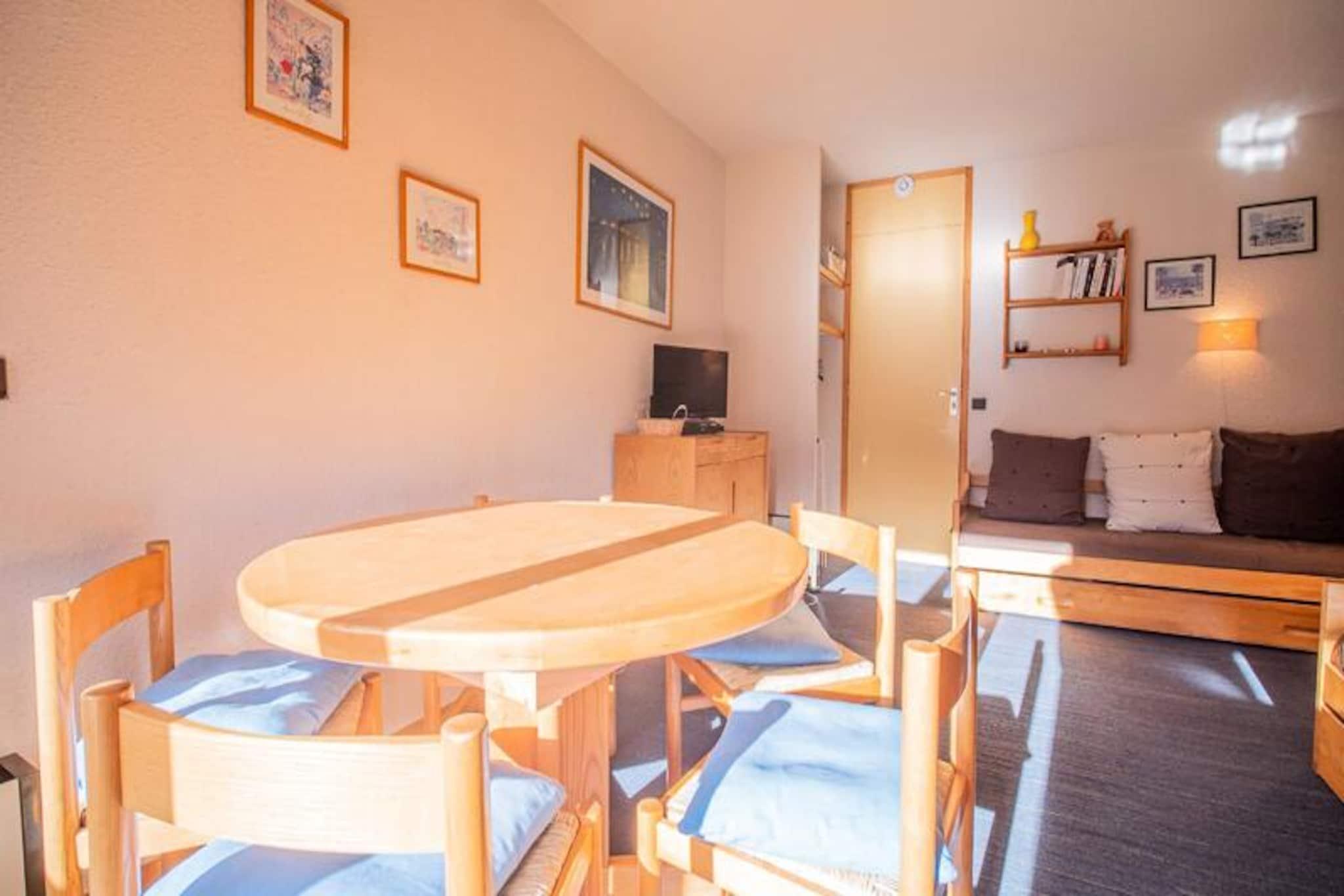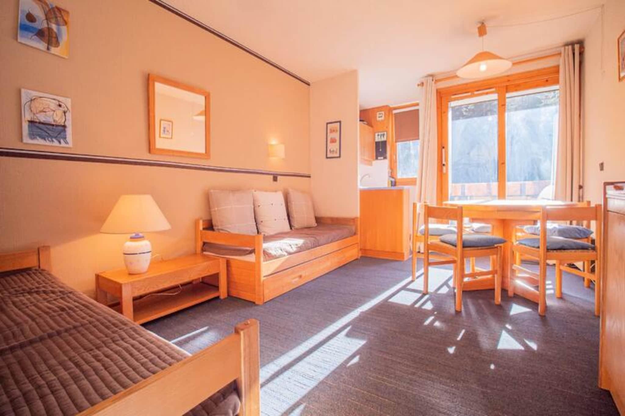 At the edge of the picturesque Crève-Cœur district in Valmorel, this charming two-room apartment invites you to experience the magic of the French Alps. With ski slopes just 50 meters away and the Pierrafort gondola a mere 100 meters from your doorstep, every day begins with the promise of alpine adventures. Whether you're here to carve through fresh powder or explore scenic trails in the summer, this cozy retreat offers a perfect blend of comfort and convenience. From its southwest-facing balcony, soak in unobstructed views of the surrounding peaks, a tranquil backdrop to your mountain escape. \n\nInside, the apartment is thoughtfully designed to accommodate up to five guests. The open-plan kitchen is equipped with modern appliances, including an electric hob, dishwasher, microwave, and refrigerator, making it easy to prepare hearty meals after a day outdoors. The living room features two single beds and a trundle bed, while the separate bedroom offers two additional single beds, ensuring restful nights for all. A bathroom and separate toilet add to the practicality, while the ski locker and car access in front of the residence enhance convenience. Pets are welcome for a small supplement, making this a great choice for families. \n\nThe Crève-Cœur district is ideally situated between Valmorel's resort center and the charming hamlet of Mottet, connected by cable car. Basic shops, including a bakery, mini-market, and sports store, are just 200 meters away, ensuring you have everything you need within easy reach. Whether you're exploring the slopes or enjoying the vibrant atmosphere of the village, this apartment is your gateway to unforgettable alpine moments. \n\nChoose this cozy haven for its unbeatable location, welcoming amenities, and the chance to create lasting memories in the heart of the French Alps.