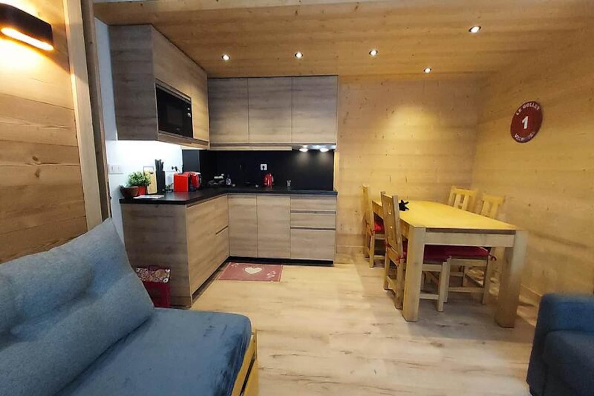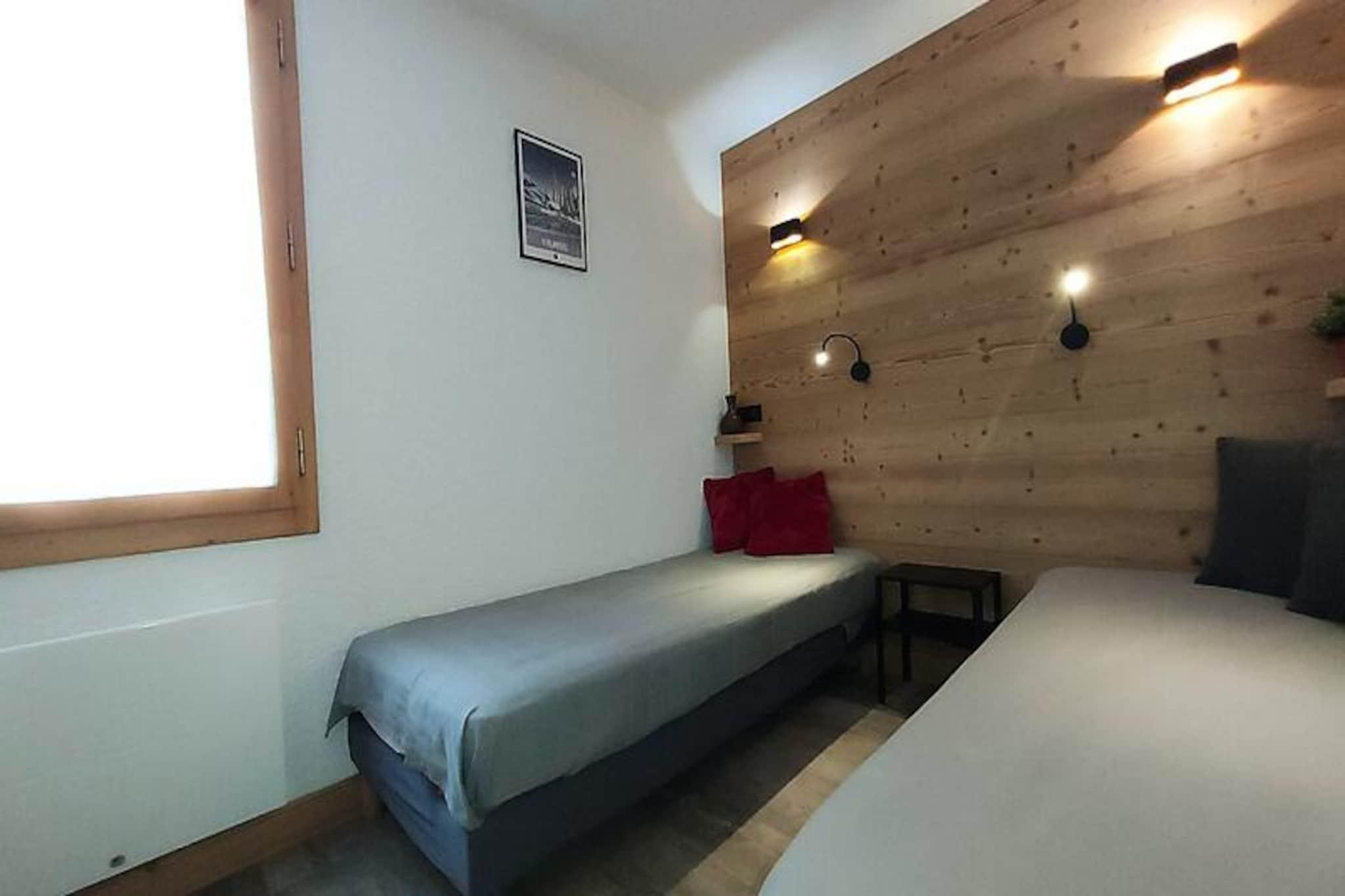 High above the charming hamlet of Crève Coeur, this cozy apartment invites you to experience the magic of the French Alps. Imagine waking up to the crisp mountain air, stepping onto your southwest-facing terrace, and taking in the serene views of the surrounding residences. With ski slopes just 0 meters away and ski lifts a mere 80 meters from your door, this is a skier’s paradise, offering unparalleled convenience for your alpine adventures. Whether you’re here to carve through fresh powder or explore the scenic trails, every moment feels like a celebration of nature’s beauty. \n\nInside, the apartment is thoughtfully designed with comfort and practicality in mind. The fully renovated open-plan kitchen is equipped with modern amenities including a dishwasher, induction hob, microwave, and refrigerator, making meal preparation a breeze. The living room features a double sofa bed and a TV, perfect for unwinding after a day of exploration. The separate bedroom offers two single beds, ensuring restful nights for all guests. A separate bathroom and toilet add to the convenience, while the ski lockers in the residence keep your gear secure and ready for action. Please note that Wi-Fi is not included, and the apartment is non-smoking and pet-free, ensuring a clean and tranquil environment. \n\nThe residence \