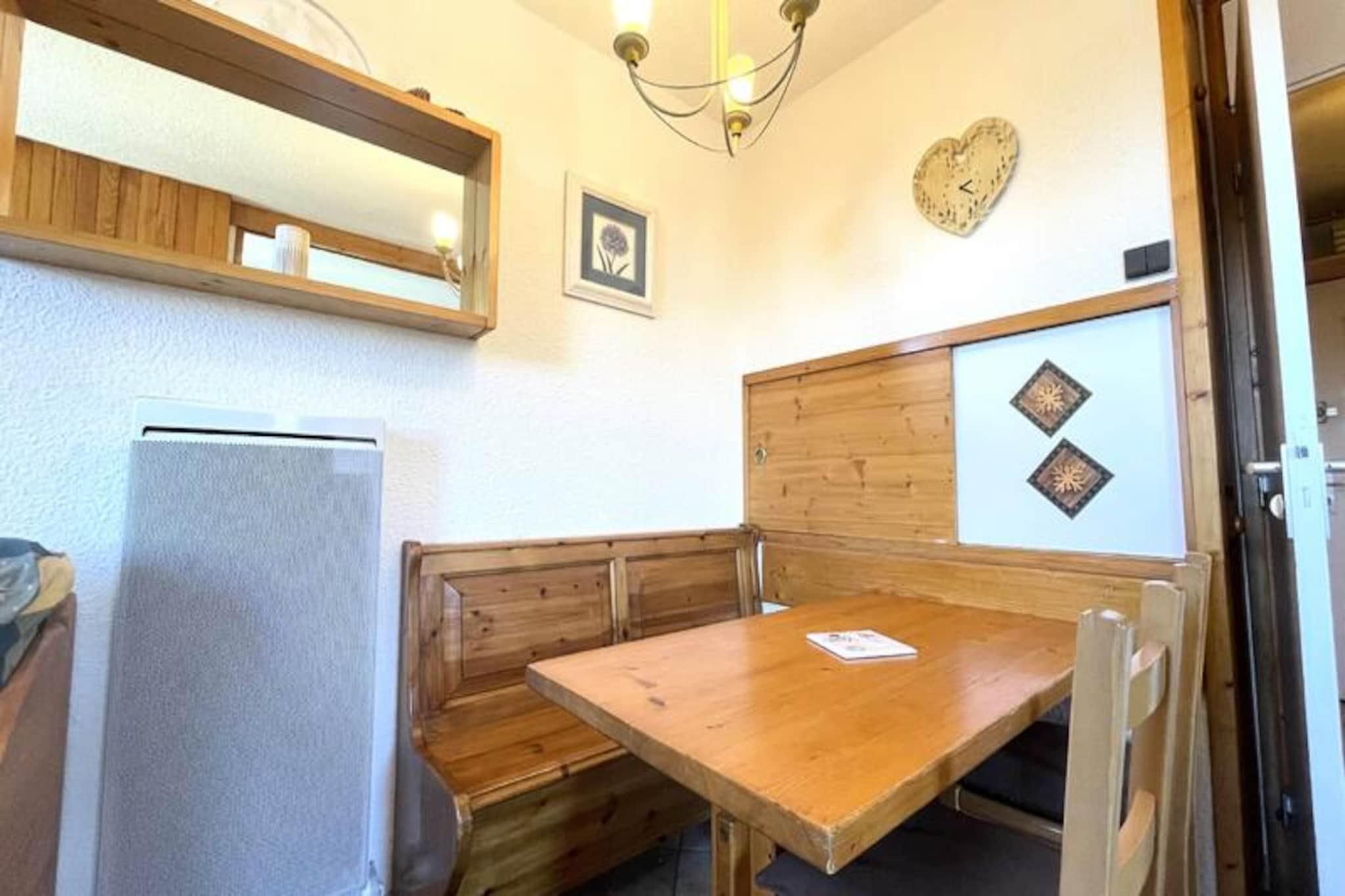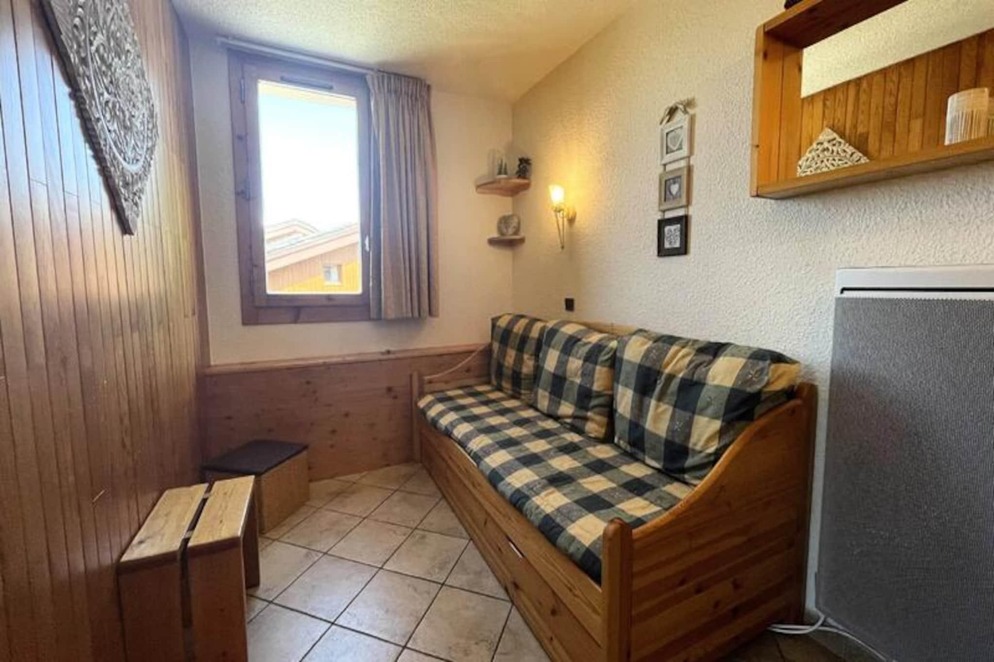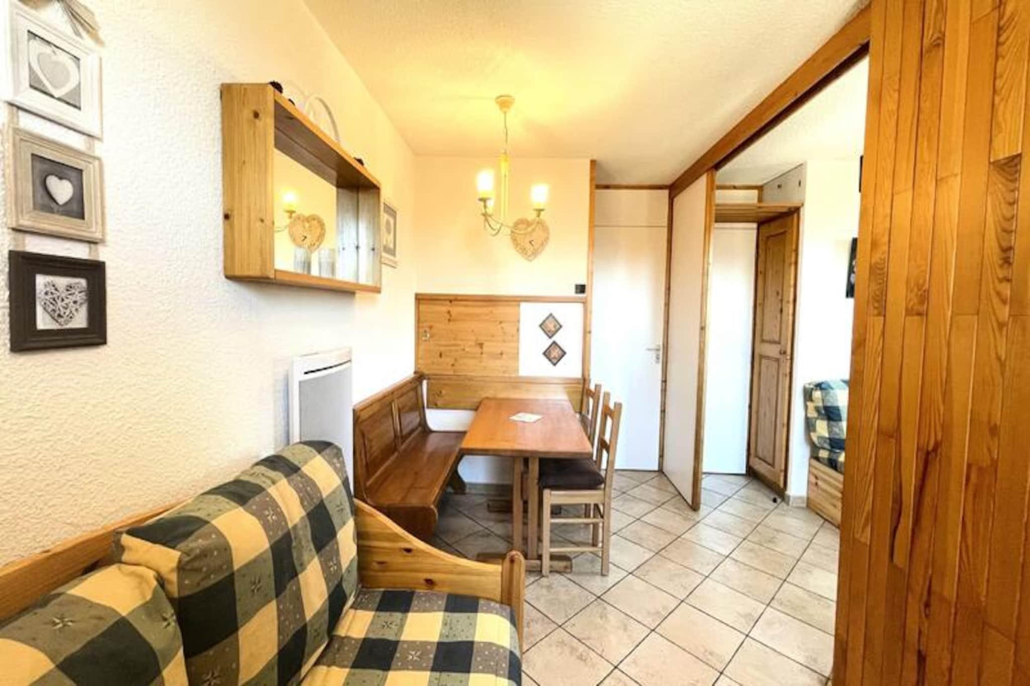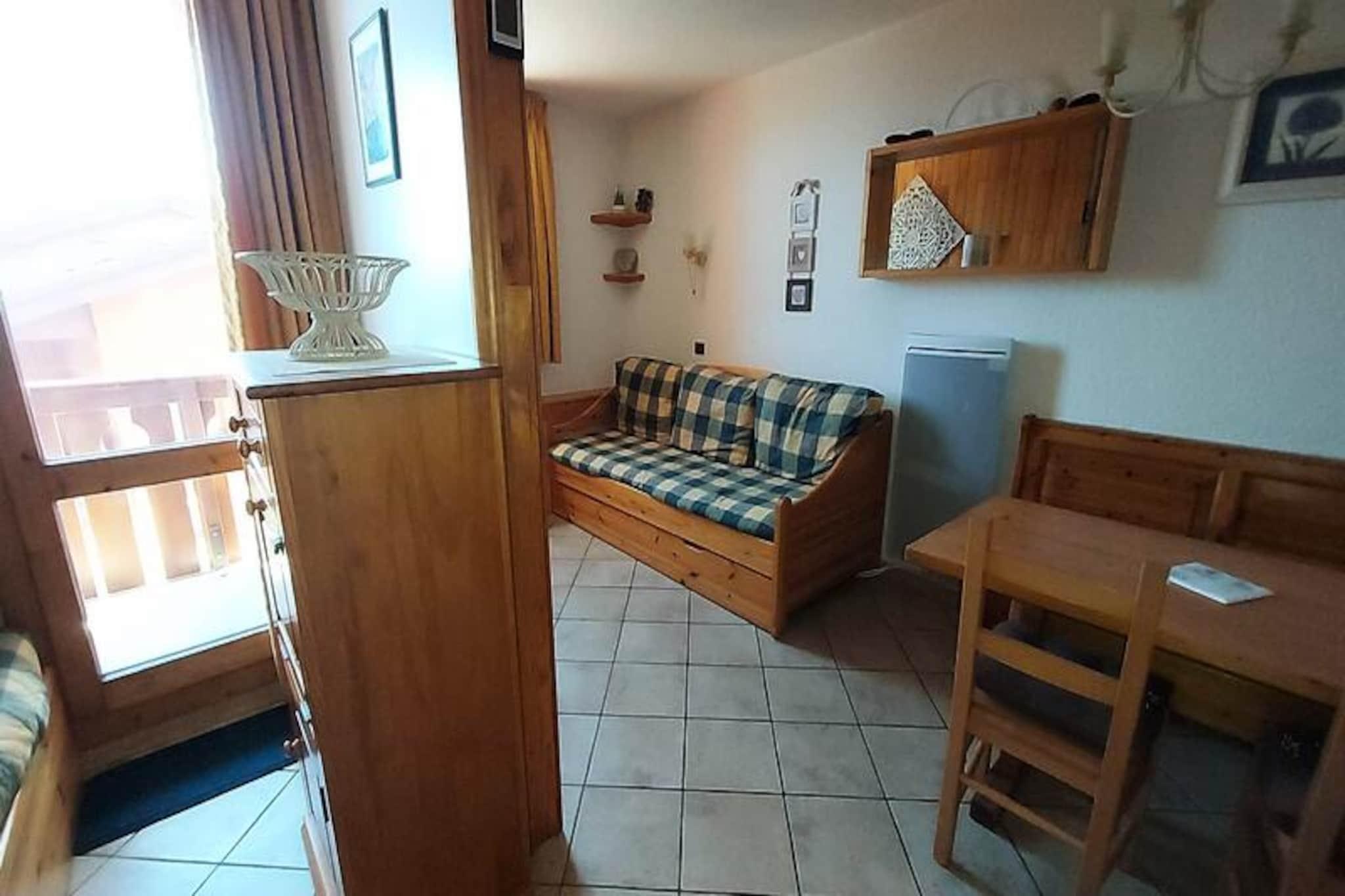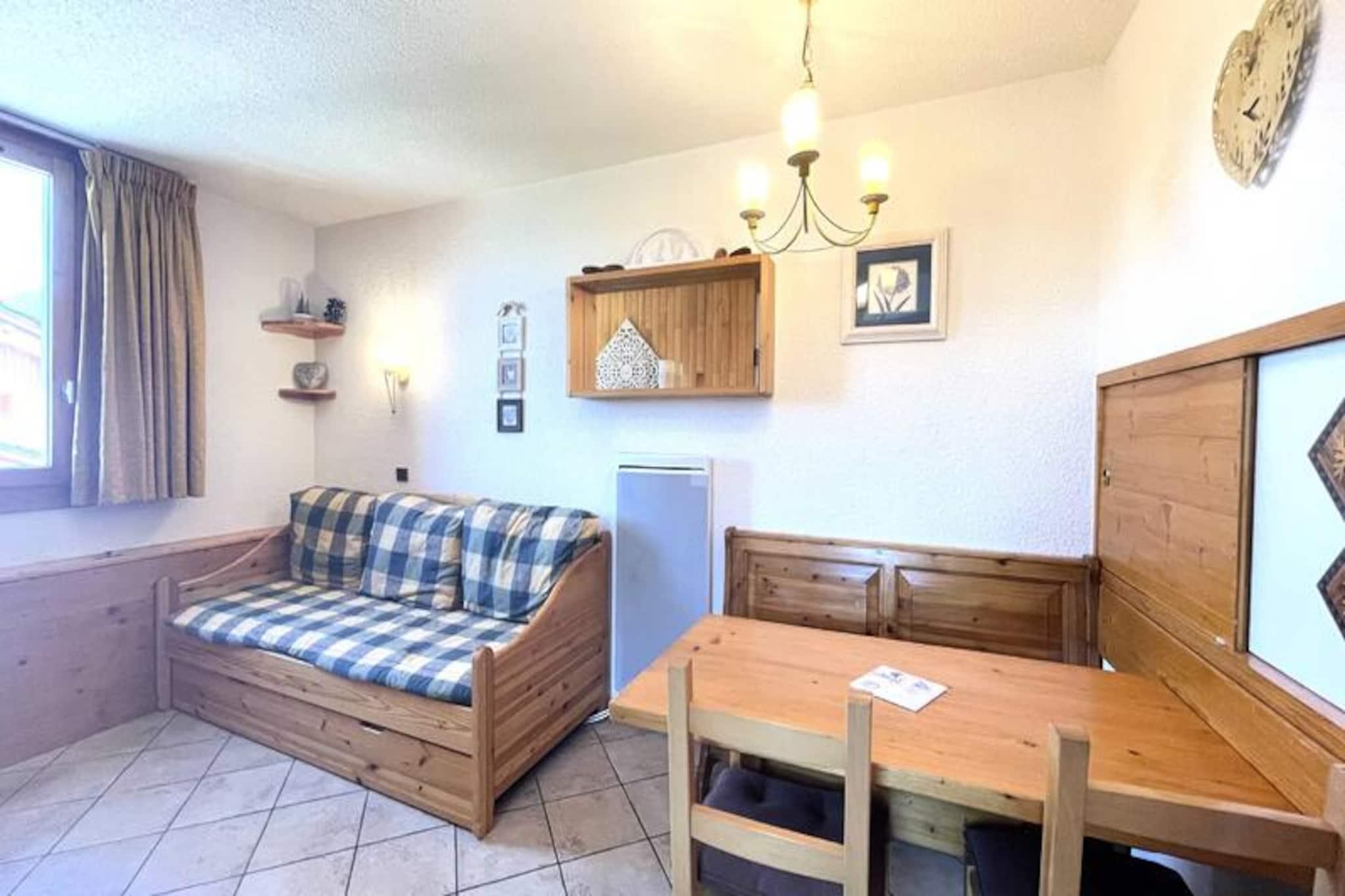 Imagine waking up to the serene beauty of the French Alps, where your balcony offers uninterrupted views of the slopes just steps away. This cozy studio apartment in the Crève Coeur hamlet of Valmorel is a skier’s dream, perfectly positioned for effortless access to the slopes and nearby amenities. Whether you're here for the winter snow or summer trails, this charming retreat promises a memorable alpine escape. \n\nThe 27 m² apartment is thoughtfully designed for comfort and functionality. The divisible living room features two single sofa beds and two trundle beds, accommodating up to four guests. A well-equipped kitchen with a dishwasher, microwave, and refrigerator ensures you can prepare hearty meals after a day of adventure. The apartment also includes a shower room with a washing machine, a separate WC, and an east-facing balcony where you can soak in the mountain air and breathtaking views. Additional conveniences include an elevator, ski locker, and proximity to essential services. Please note that Wi-Fi is not included, and pets are not allowed, ensuring a peaceful and allergy-friendly environment. \n\nLocated in the \