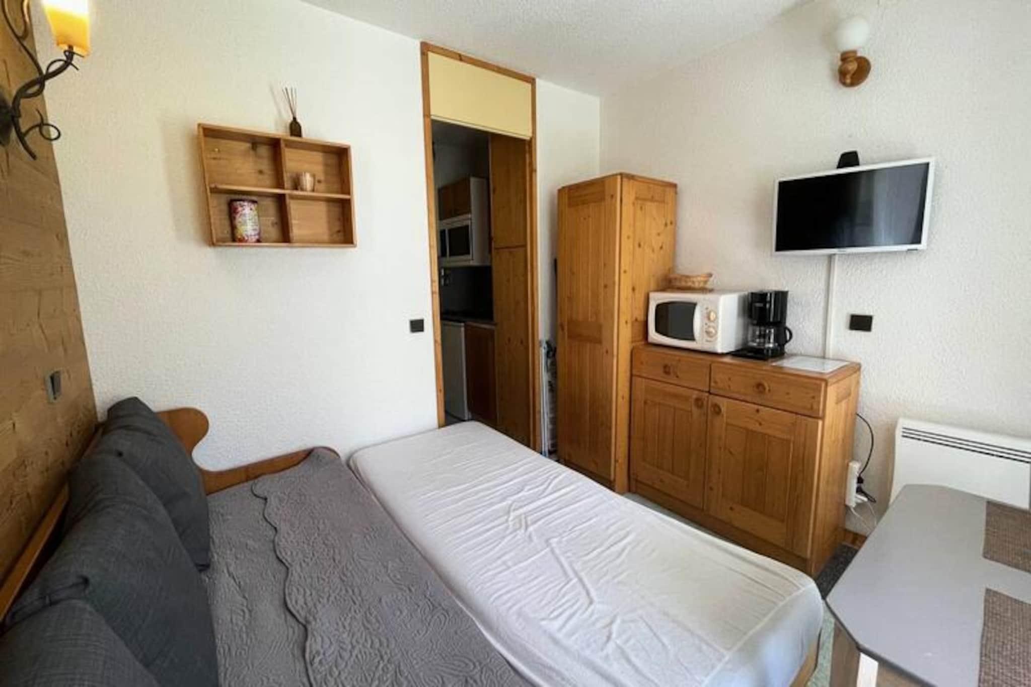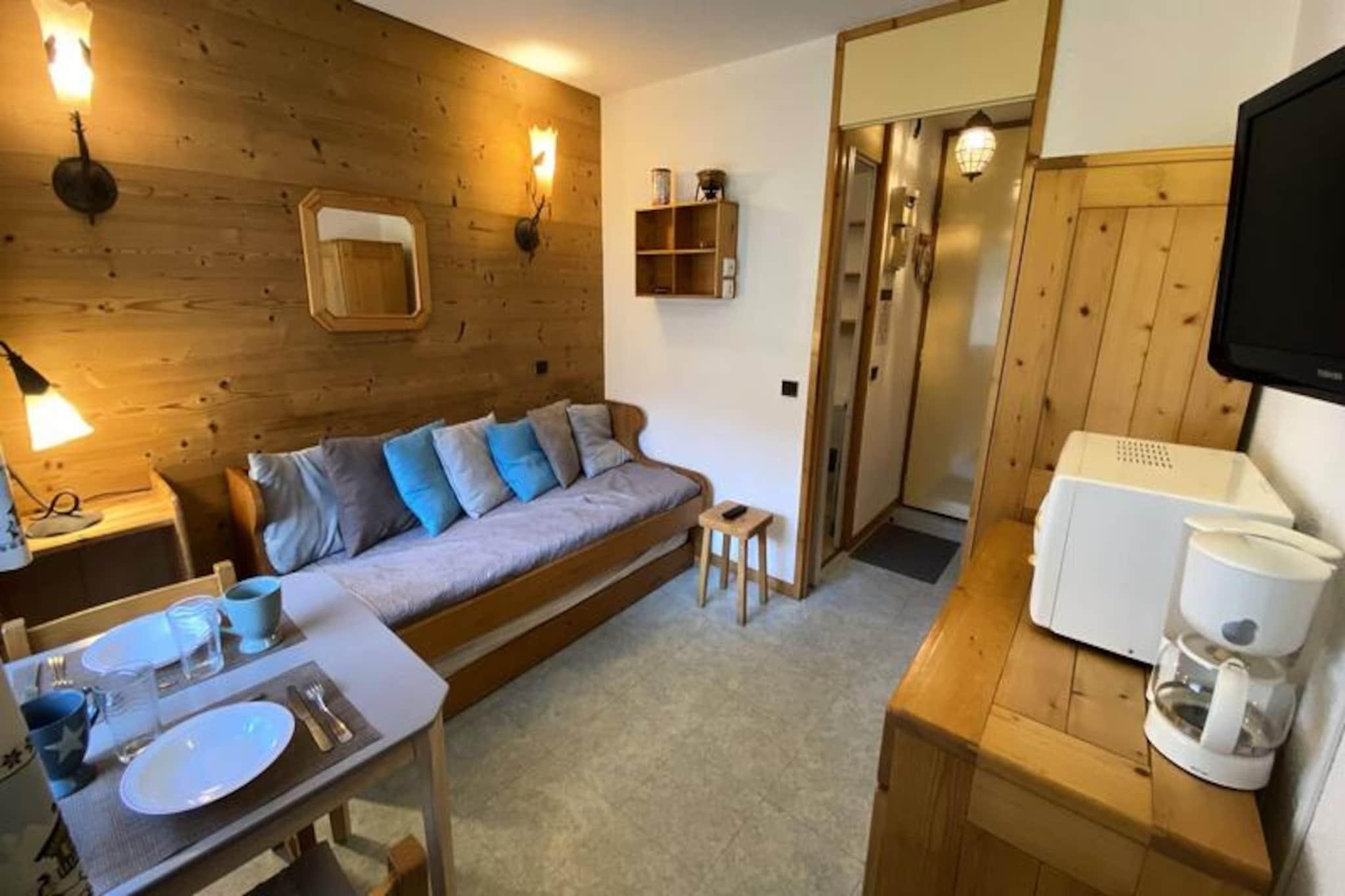 Imagine waking up to the crisp mountain air and stepping out onto your private terrace to take in the serene, unobstructed views of the French Alps. This cozy 13m² studio apartment, located in the heart of the Mottet area in Valmorel, is the perfect retreat for two skiers seeking a convenient and comfortable alpine escape. With the ski slopes and ESF ski school just steps away, your day of adventure begins the moment you leave the front door. The pedestrian-friendly neighborhood ensures a peaceful and safe environment, ideal for families and couples alike. \n\nInside, the apartment is thoughtfully designed to maximize space and comfort. The living area features a single bed and a trundle bed, providing flexible sleeping arrangements. The kitchenette is equipped with a ceramic hob and microwave, perfect for preparing quick meals after a day on the slopes. The shower room with WC is compact yet functional, and the east-facing terrace offers a tranquil spot to unwind with a warm drink as you watch the sunrise over the mountains. Additional amenities include a ski locker for your equipment and the option to bring your furry companion for a small supplement. \n\nBeyond the apartment, the Mottet area offers unparalleled access to the slopes and ski school, making it a favorite among avid skiers and families with children. The Télèbourg cable car connects you effortlessly to the shops and lively center of Valmorel, where you can explore charming boutiques, cozy restaurants, and après-ski activities. For those arriving by car, underground parking is available with advance reservation. \n\nWhether you're here to carve through fresh powder, enjoy scenic alpine walks, or simply relax in the breathtaking surroundings, this studio apartment offers everything you need for an unforgettable mountain getaway.