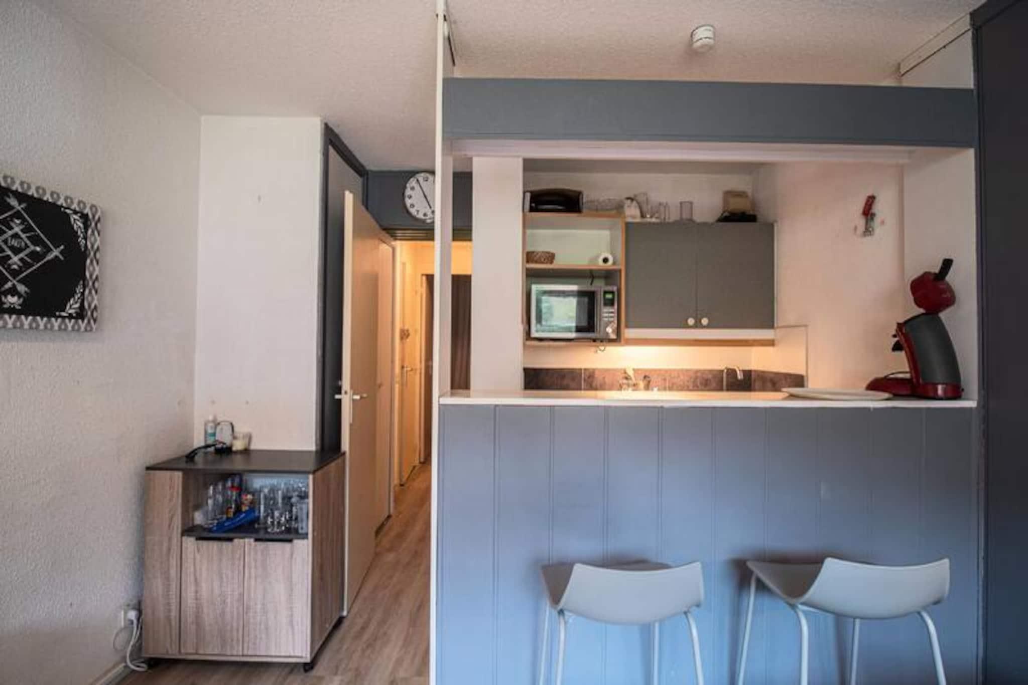 Imagine waking up to the serene beauty of the French Alps, where crisp mountain air and breathtaking views set the tone for your day. This charming 28 m² apartment, nestled in the tranquil Fontaine district of Valmorel, offers the perfect alpine escape for couples or small families. With the Lanchettes chairlift just 100 meters away, you can step out of your door and onto the slopes in moments, making it a haven for ski enthusiasts seeking convenience and comfort. \n\nThe apartment features a cozy open-plan kitchen equipped with a dishwasher, ceramic hob, multifunction oven, refrigerator, and even a raclette grill for authentic alpine dining experiences. The living room invites you to unwind with a comfortable double sofa bed and a TV, while the separate bedroom with bunk beds provides a snug retreat for restful nights. A south-facing balcony offers stunning mountain views, perfect for savoring your morning coffee or an evening glass of wine. Additional amenities include a ski locker and a shower room with a separate toilet, ensuring practicality for your stay.\n\nLocated in the peaceful La Fontaine hamlet, this residence provides direct access to the slopes and is just a short 600-meter stroll from local shops. Whether you’re exploring the vibrant village atmosphere or indulging in après-ski delights, everything you need is within easy reach. In summer, the region transforms into a paradise for hikers and nature lovers, with endless trails and picturesque landscapes to discover.\n\nChoose this delightful apartment for your next alpine getaway and experience the perfect blend of tranquility, adventure, and authentic mountain charm.