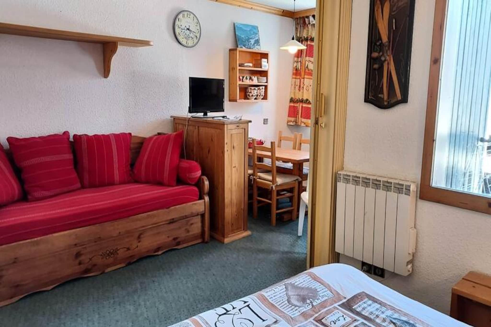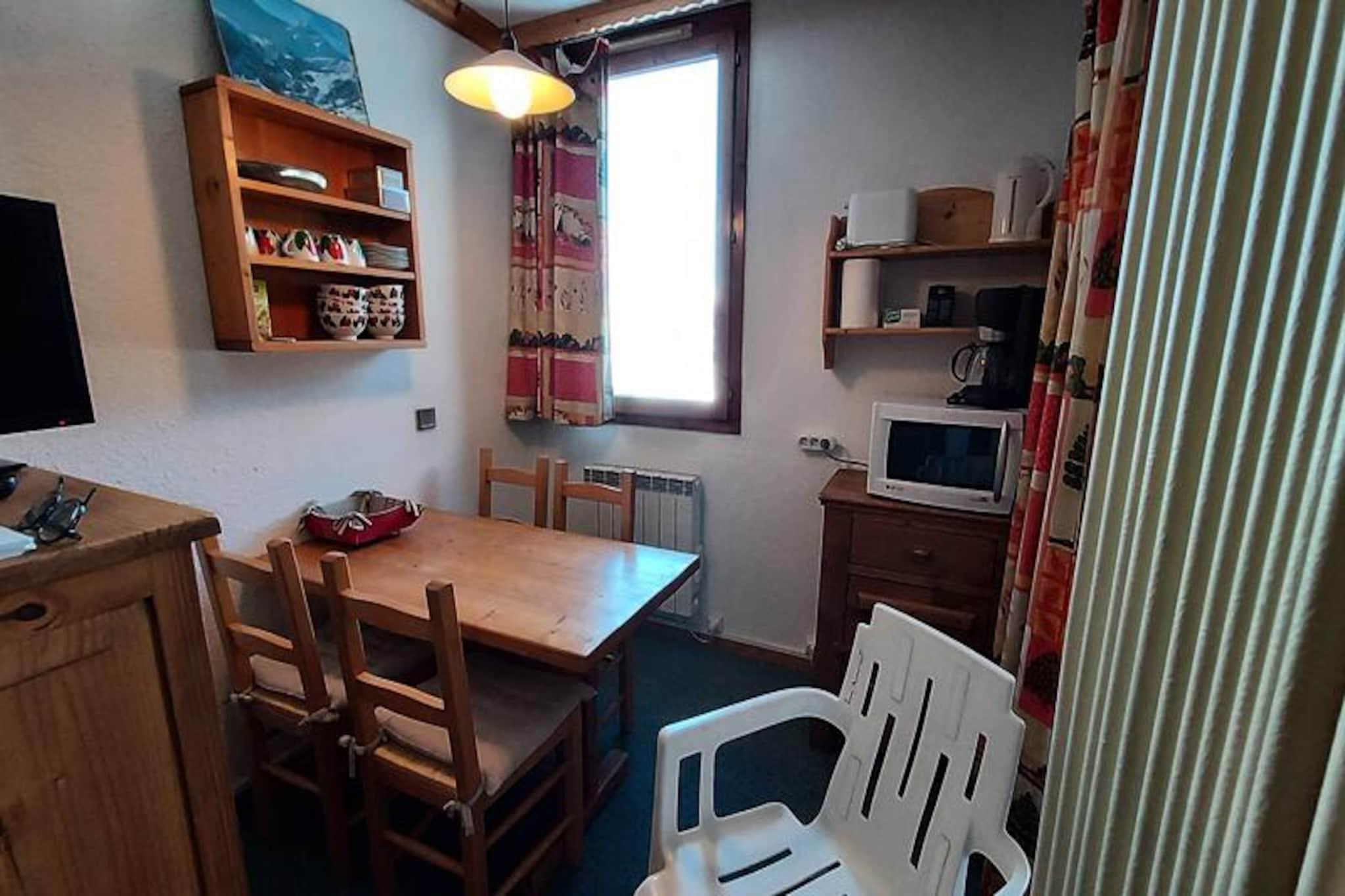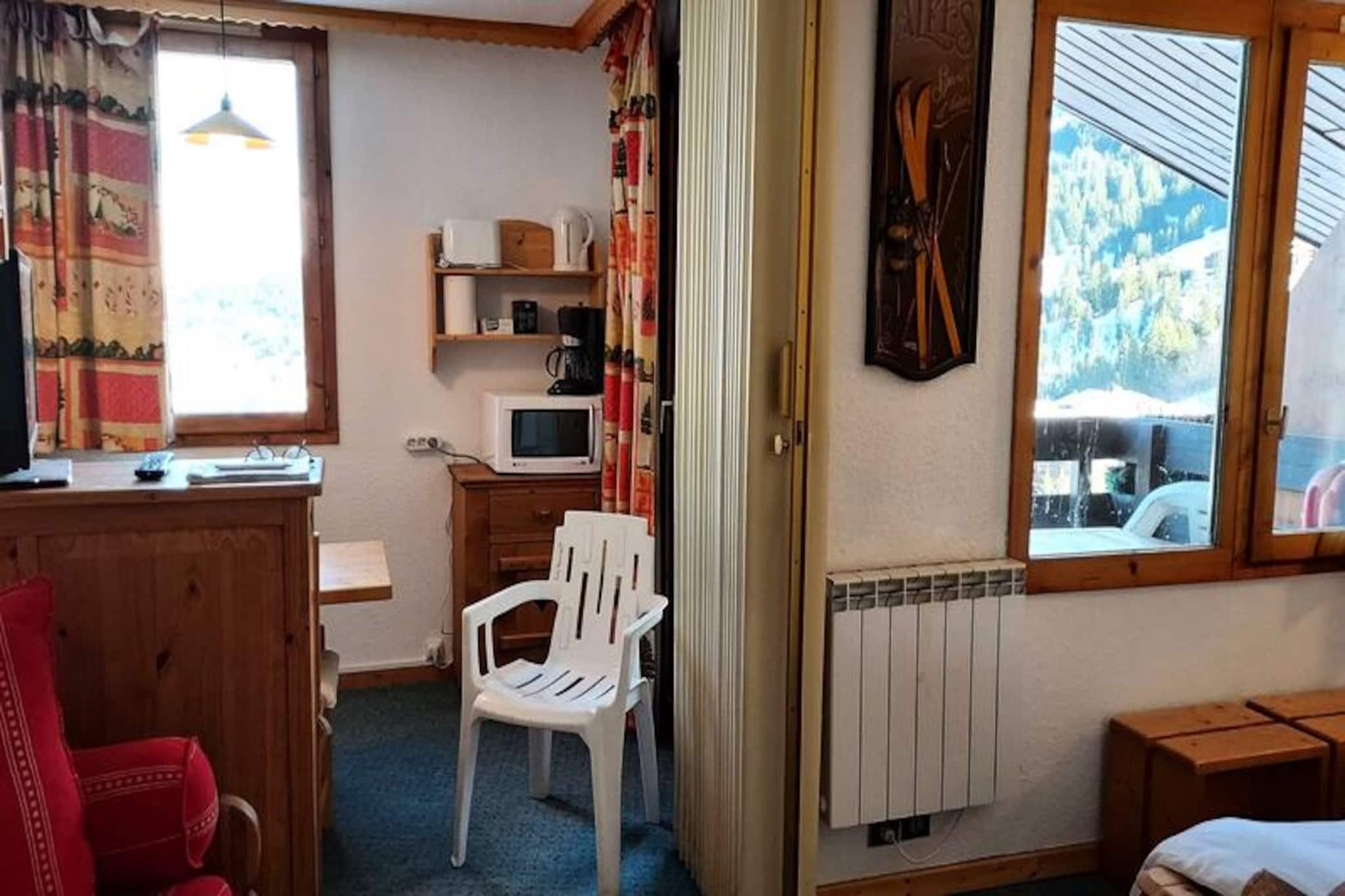 On the edge of Valmorel's enchanting La Forêt district, this cozy studio apartment offers a perfect blend of comfort and convenience for your alpine getaway. Imagine waking up to serene mountain views from your northeast-facing balcony, stepping out to the slopes just 100 meters away, and enjoying effortless access to Le Grand Domaine via the Altispace chairlift. Whether you're here for skiing, hiking, or simply soaking in the tranquil atmosphere, this charming retreat is your gateway to the best of the French Alps. \n\nThe 27 m² apartment is thoughtfully designed to maximize space and functionality. The entrance hall features a fully equipped kitchen with a dishwasher, electric hob, microwave, refrigerator, and even a raclette grill for cozy evenings. The dining area comfortably seats four, while the divisible living room offers flexible sleeping arrangements with a trundle bed and a double bed. A separate bathroom and toilet ensure privacy, and pets are welcome for a small fee. While Wi-Fi is not included, the apartment provides a ski locker for your gear and promises a smoke-free environment for your stay. \n\nLocated in the quiet La Forêt district, the residence \