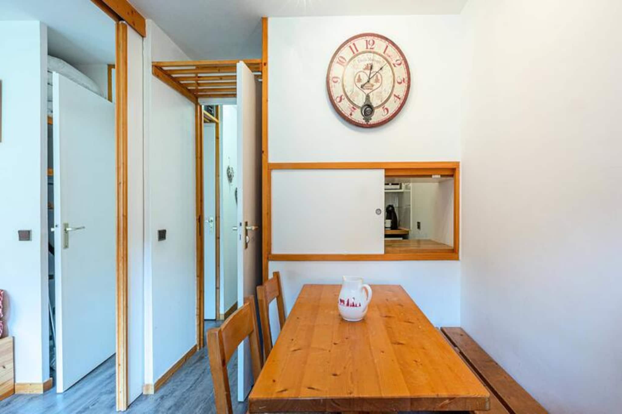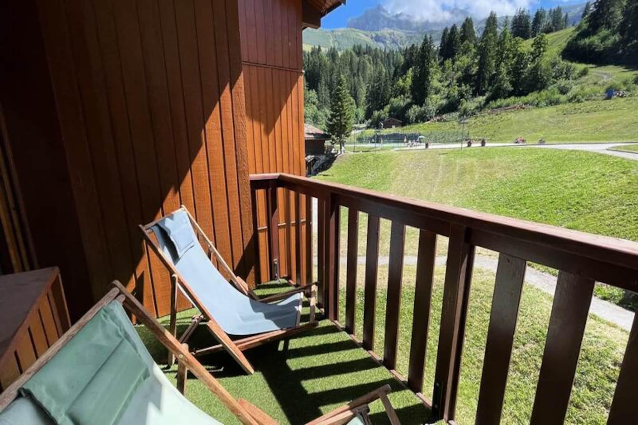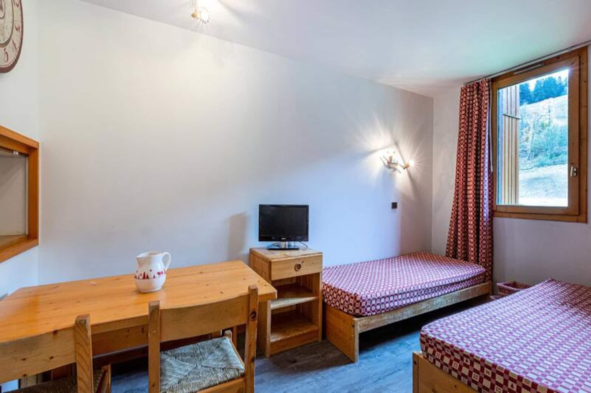 Positioned at the edge of the picturesque slopes of Valmorel, this charming studio invites you to immerse yourself in the beauty of the French Alps. With its south-facing balcony offering breathtaking views of the surrounding mountains, every moment here feels like a serene escape into nature. Whether you're here for the thrill of skiing or the peaceful ambiance of alpine life, this studio provides the perfect retreat for your holiday. Renovated in 2014, it combines modern comfort with warm, functional design to ensure a memorable stay. \n\nThe 27m² studio is thoughtfully designed to accommodate up to four guests. The living area features four single sofa beds, offering flexibility for families or friends traveling together. A separate kitchen is equipped with a dishwasher, ceramic hob, and microwave, making meal preparation a breeze after a day of adventure. The bathroom and toilet are conveniently separated, and the studio is bright and welcoming throughout. Guests particularly appreciate the easy access to the slopes and ski school, as well as the ski locker for added convenience. Pets are welcome for a small supplement, adding to the family-friendly appeal of this property.\n\nLocated in the sought-after Mottet area, the residence is perfectly situated for ski enthusiasts and families alike. The slopes and ski school are just steps away, and the resort center, with its shops and amenities, is easily accessible via the Télèbourg railway. The pedestrian-friendly area ensures a safe and tranquil environment, while underground parking is available for those arriving by car. In summer, the region transforms into a haven for hikers and nature lovers, with trails that wind through lush landscapes and offer stunning views.\n\nWhether you're seeking thrilling winter sports or a peaceful summer retreat, this studio in Valmorel promises an unforgettable alpine experience. Its combination of comfort, convenience, and stunning surroundings makes it a perfect choice for your next getaway.