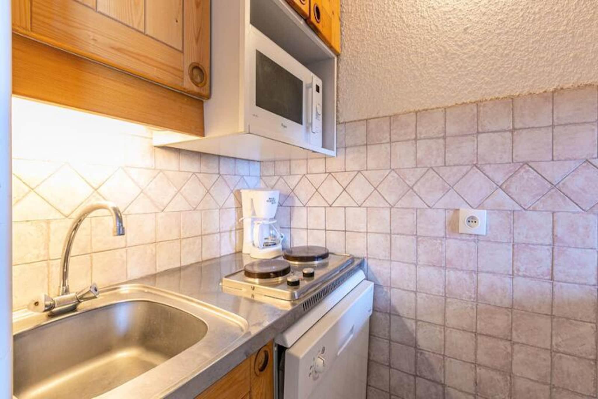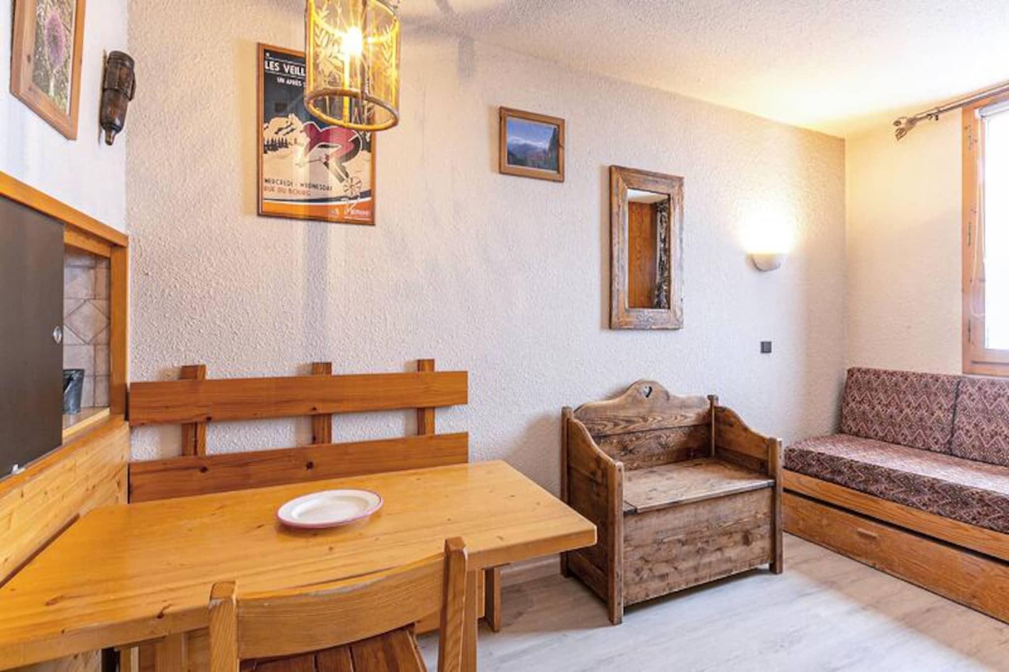 Perched in the charming Mottet neighborhood of Valmorel, this cozy studio offers an unbeatable location for ski enthusiasts and families alike. Imagine waking up to panoramic views from your north-facing balcony, stepping out onto the slopes just meters away, and enjoying effortless access to the ski school for children over six. The pedestrian-friendly area ensures a serene and safe environment, while the nearby Télébourg cable car connects you to the resort center and its vibrant amenities. This is a haven for those seeking both adventure and convenience in the heart of the French Alps. \n\nThe studio spans 27 square meters and is thoughtfully designed to accommodate up to four guests. A removable partition divides the living space into two areas, each featuring trundle beds for flexible sleeping arrangements. The separate kitchen is equipped with modern conveniences, including a dishwasher, electric hob, and combi oven, making it easy to prepare meals after a day on the slopes. The apartment also includes a separate bathroom and toilet, a ski locker for your gear, and welcomes pets for an additional fee. Please note that Wi-Fi is not included, and the apartment is not accessible for guests with reduced mobility. \n\nBeyond the apartment, the Mottet neighborhood offers everything you need for a memorable alpine getaway. The ski school is right at your doorstep, and shops are just a short ride away via the Télébourg cable car. Paid underground parking is available for added convenience, ensuring stress-free access to your vehicle. Whether you're here to carve through pristine slopes or explore the resort's lively center, Valmorel promises an unforgettable experience. \n\nChoose this studio for its unbeatable location, cozy atmosphere, and proximity to all the essentials. Whether you're a seasoned skier or a family looking to introduce your children to the joys of the mountains, this property is the perfect base for your alpine adventure.