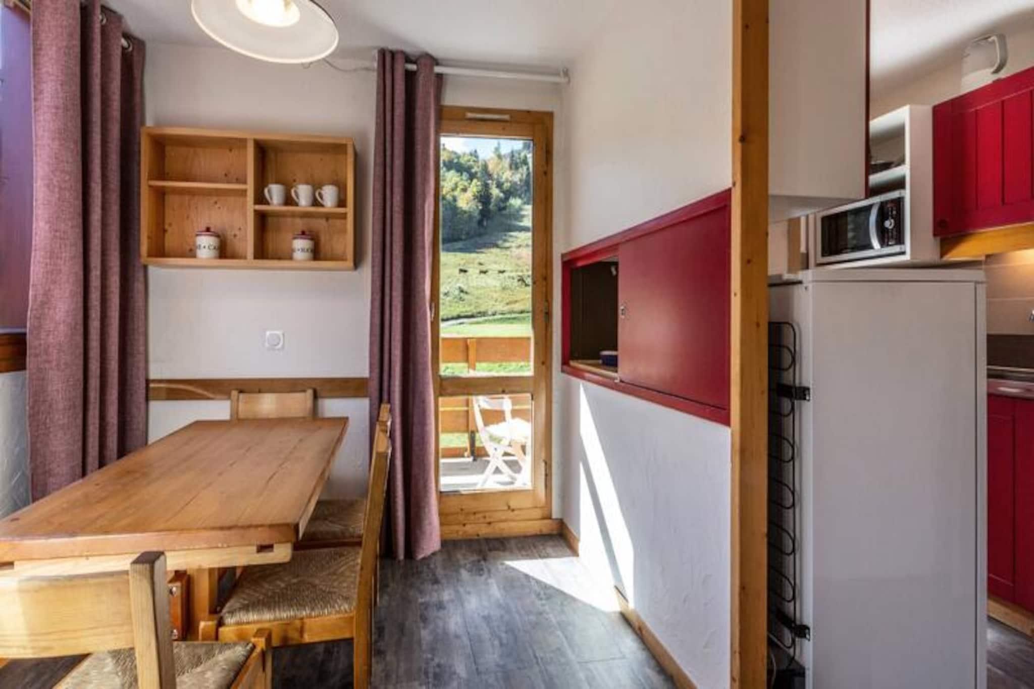 Where snow-dusted peaks meet serene alpine charm, this bright and welcoming apartment in the Mottet area of Valmorel offers the perfect retreat for ski enthusiasts and families alike. With slopes and the ski school just steps from your door, you can start your day effortlessly, gliding into the pristine powder of the Grand Domaine ski area. The dual-exposure balconies provide sweeping views of the Valmorel slopes, inviting you to soak in the beauty of the French Alps while basking in the sunlight that floods the apartment throughout the day. \n\nInside, the apartment spans 39 square meters and is thoughtfully designed for comfort and practicality. The living room, cleverly divided by a removable partition, features two cozy single beds with new mattresses, while the separate bedroom offers a snug double bed. A fully equipped kitchen, complete with a dishwasher and microwave, makes meal preparation a breeze, and the separate bathroom and toilet ensure convenience for all guests. The ski locker adds to the ease of your stay, while the pet-friendly policy means your furry companions can join in on the adventure. \n\nThe La Roche Combe residence is ideally situated for easy access to the slopes, ski school, and the resort center, which is just a short ride away via the Télébourg railway. Shops, restaurants, and après-ski activities are all within walking distance, making it a lively yet tranquil base for your alpine escape. In summer, the area transforms into a haven for hikers and nature lovers, with trails that wind through lush landscapes and breathtaking vistas. \n\nWhether you're here for thrilling winter sports or peaceful summer exploration, this apartment promises a memorable stay in the heart of the French Alps.