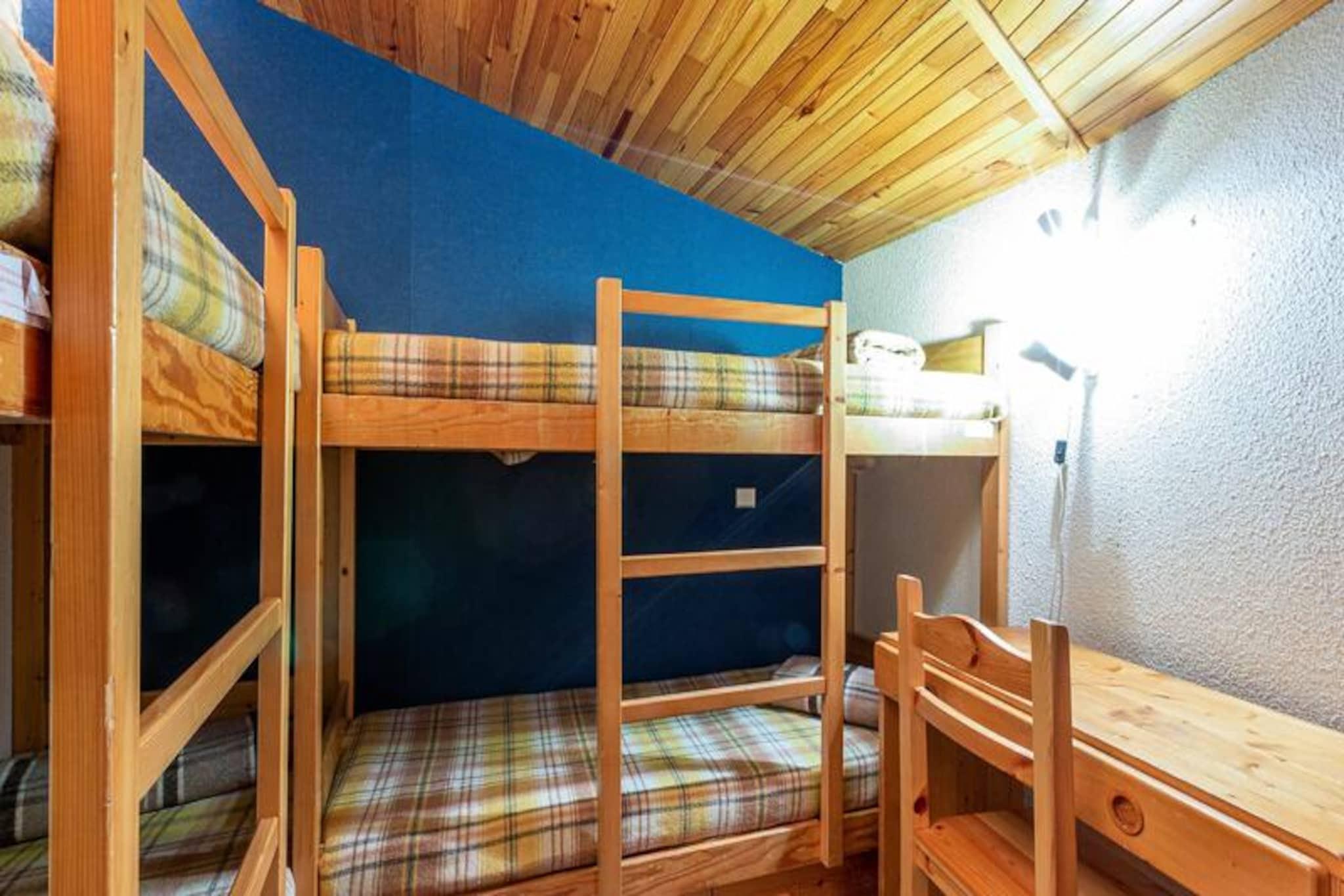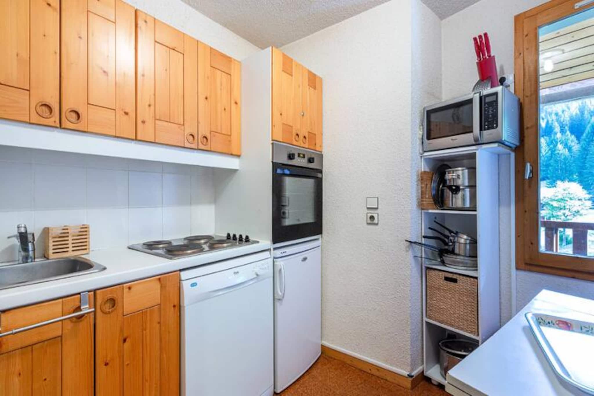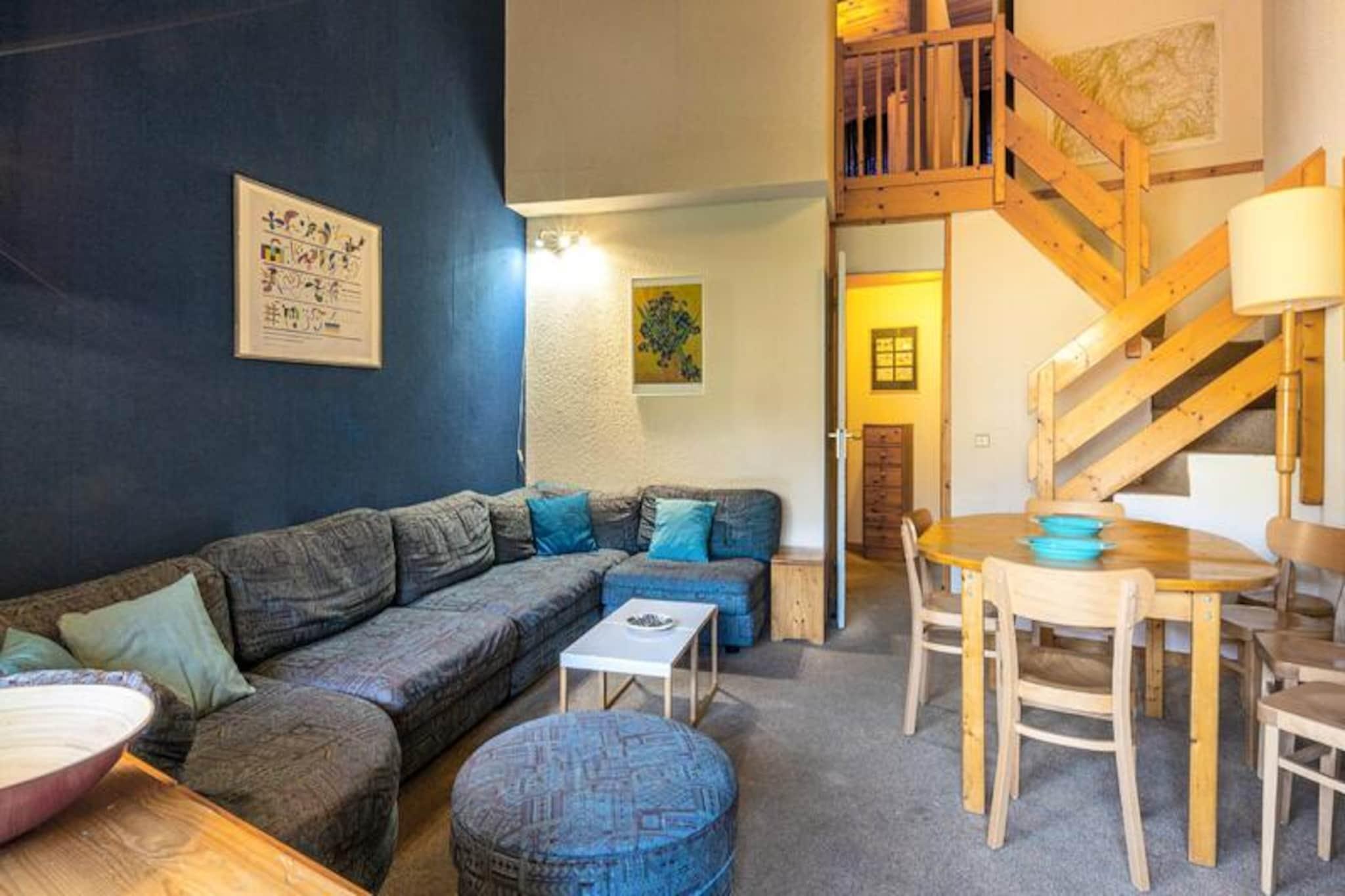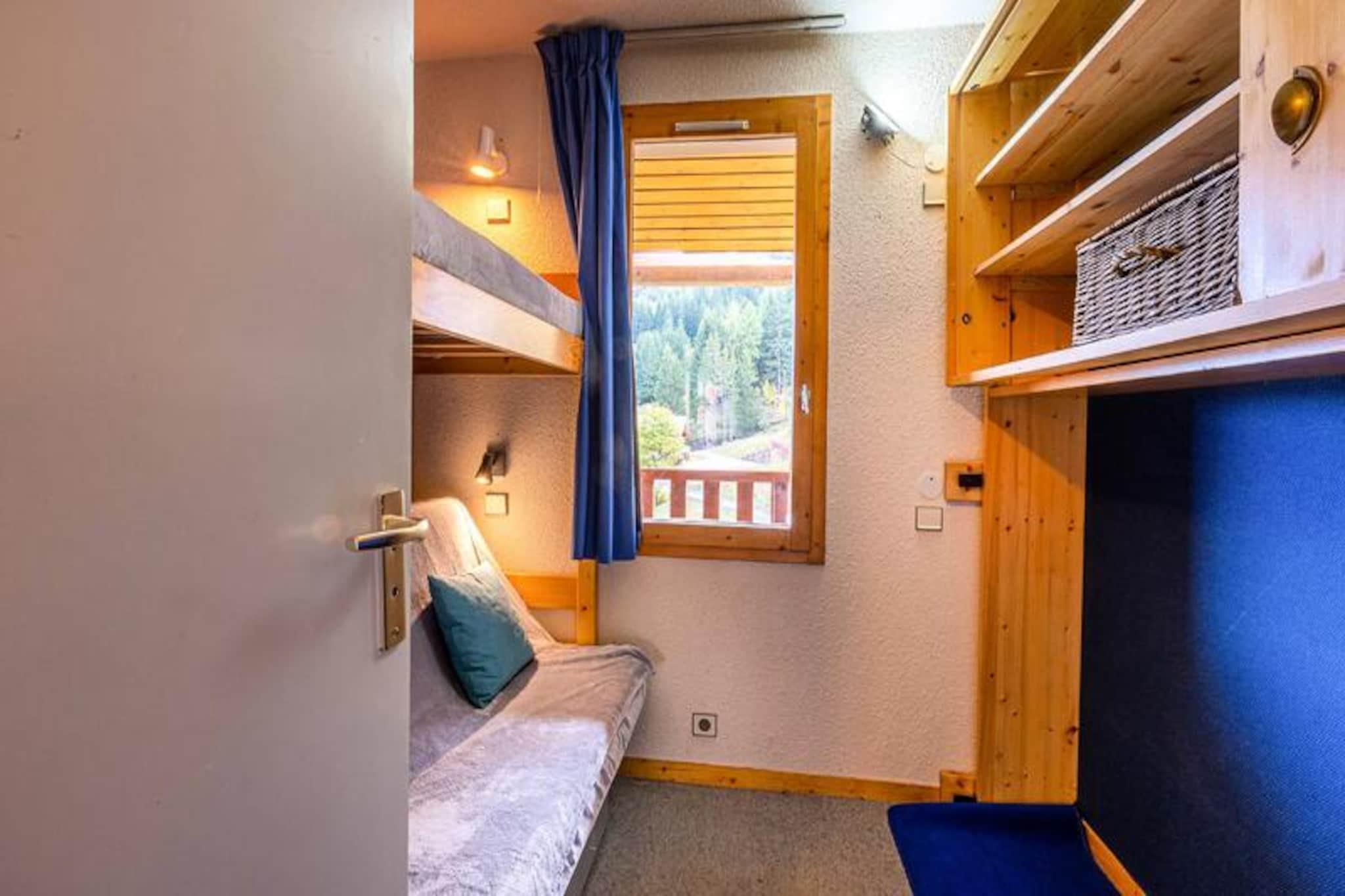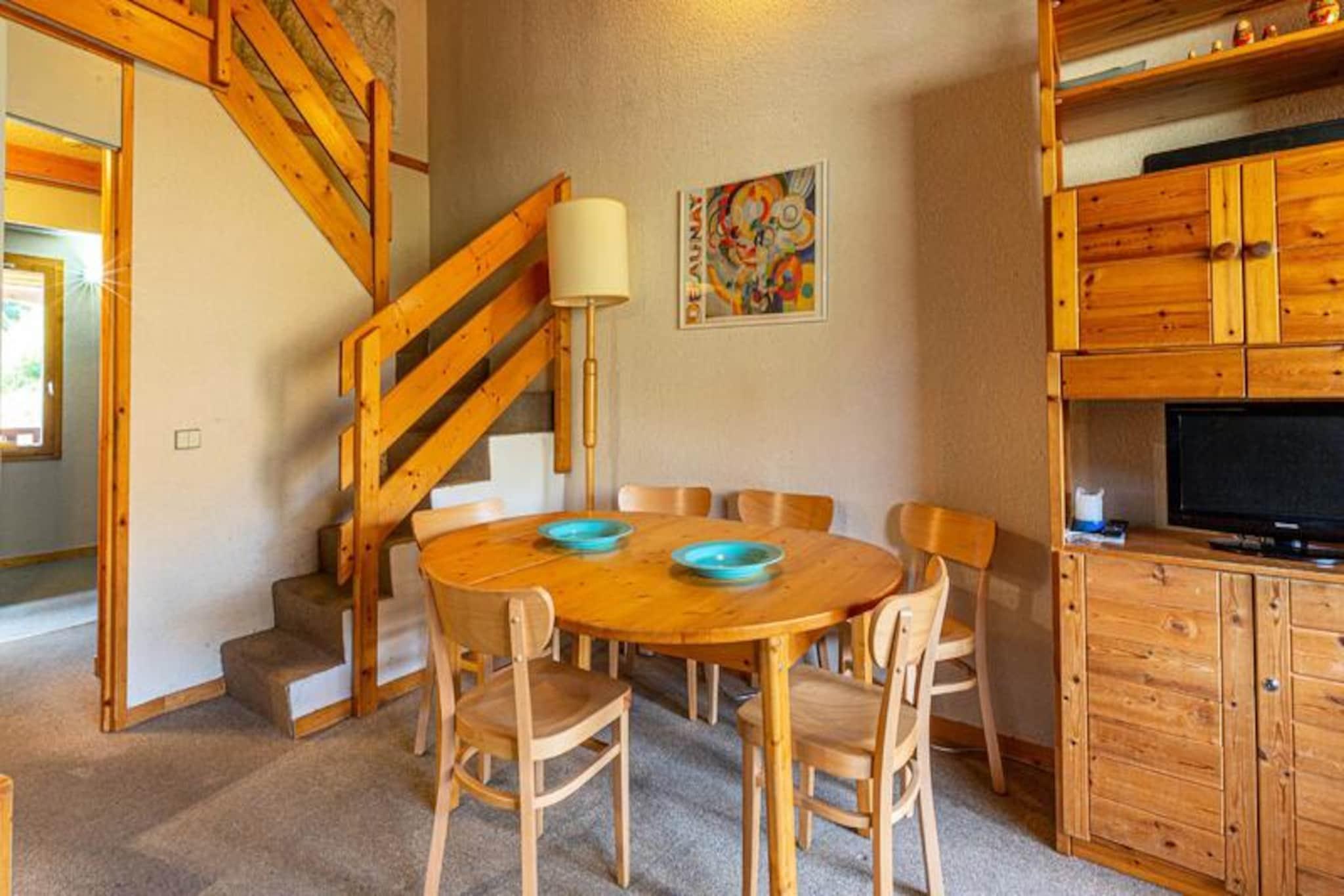 Perched in the serene Crève Coeur district of Valmorel, this charming 4-room duplex apartment offers a perfect alpine retreat for families and groups. With ski slopes just 20 meters away and the nearest ski lifts within a short 200-meter stroll, this property is a haven for winter sports enthusiasts. The southwest-facing balcony provides breathtaking panoramic views, inviting you to soak in the beauty of the surrounding mountains after a day of adventure. \n\nInside, the apartment is thoughtfully designed for comfort and convenience. The separate kitchen is fully equipped with an electric hob, dishwasher, oven, microwave, and refrigerator, making it easy to prepare hearty meals. The living room features a cozy corner sofa and television, creating a warm space to unwind. The sleeping arrangements include a sofa bed in Bedroom 1, a double bed in Bedroom 2, and two sets of bunk beds in Bedroom 3, comfortably accommodating up to eight guests. Additional amenities include a bathroom, a shower room, and two separate toilets. A ski locker is available for your gear, and pets are welcome with a small supplement.\n\nThe Crève Coeur district is ideally located, offering easy access to essential shops such as a bakery, mini-market, and sports store. The nearby Télèbourg cable car connects you to the resort center and the charming hamlet of Mottet, ensuring you’re never far from the action. For beginners or children, the Pierrafort gondola provides a gentle introduction to the slopes, while advanced skiers can head directly to the Côte Soleil ski lift.\n\nWhether you’re here for the thrill of skiing or the tranquility of the mountains, this duplex apartment combines convenience, comfort, and stunning views to create an unforgettable alpine experience. Book your stay and immerse yourself in the magic of Valmorel.