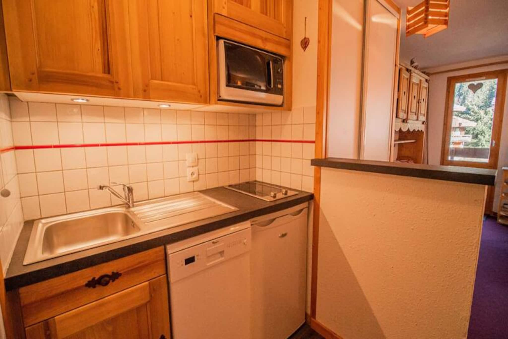 At the edge of the picturesque Crève Coeur area in Valmorel, this charming studio apartment offers a delightful alpine getaway just steps from the slopes. Imagine waking up to the crisp mountain air and stunning views from your east-facing balcony, ready to embark on a day of adventure with ski lifts only 200 meters away and essential shops within a short stroll. Whether you're here to carve through powdery pistes or explore the serene trails in summer, this residence is perfectly situated for year-round enjoyment. \n\nInside, the apartment is thoughtfully designed to accommodate up to four guests. The living room features a double sofa bed, a single bed, and a trundle bed, ensuring comfort and flexibility for families or small groups. The well-equipped kitchen includes a ceramic hob, dishwasher, oven, microwave, and refrigerator, making it easy to prepare hearty meals after a day outdoors. A separate shower room and toilet add convenience, while the ski locker ensures your gear is always ready for the next adventure. Please note that Wi-Fi is not included, and the apartment is non-smoking and pet-free.\n\nThe Crève Coeur area is a tranquil yet connected sector of Valmorel, linked to the resort center and the charming hamlet of Mottet via cable car. Nearby, you'll find a bakery, mini-market, and sports store for all your needs. For advanced skiers, the Côte Soleil ski lift provides direct access to the slopes, while beginners and children can enjoy the Pierrafort gondola. Paid underground parking is available for added convenience.\n\nWhether you're seeking thrilling ski days or peaceful mountain escapes, this cozy studio is your gateway to the enchanting landscapes of Valmorel. With its prime location and welcoming ambiance, it promises an unforgettable alpine experience.
