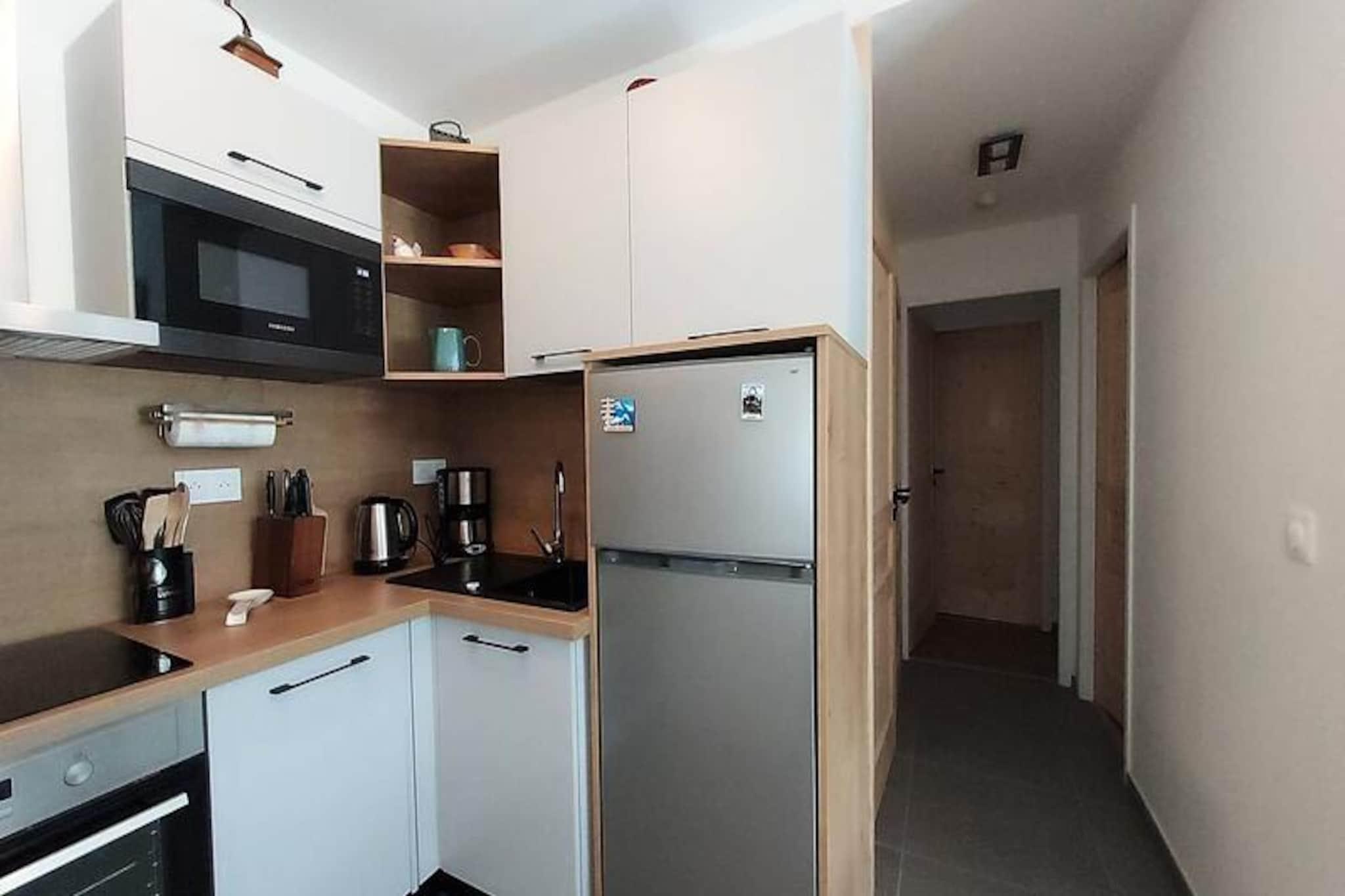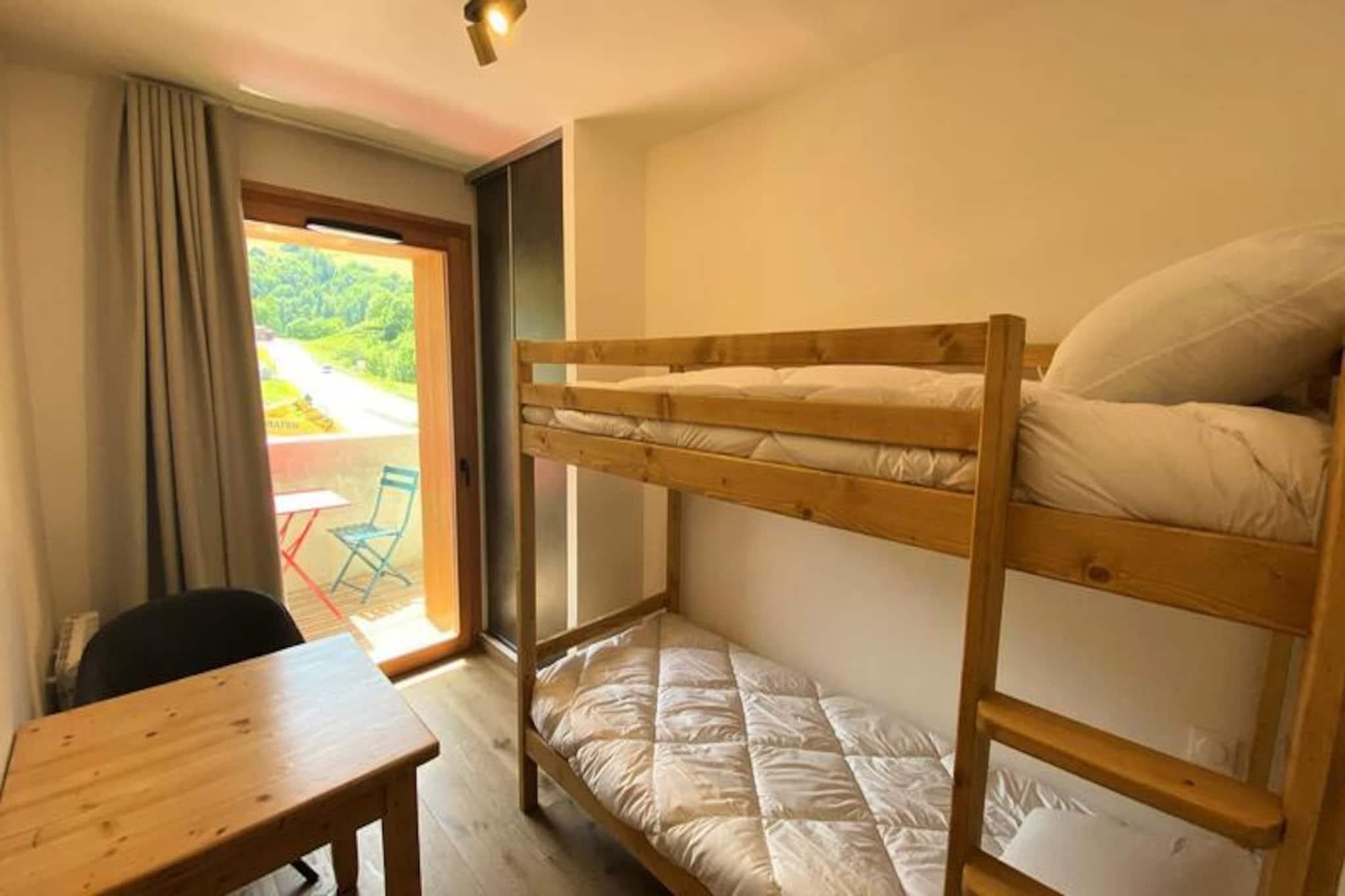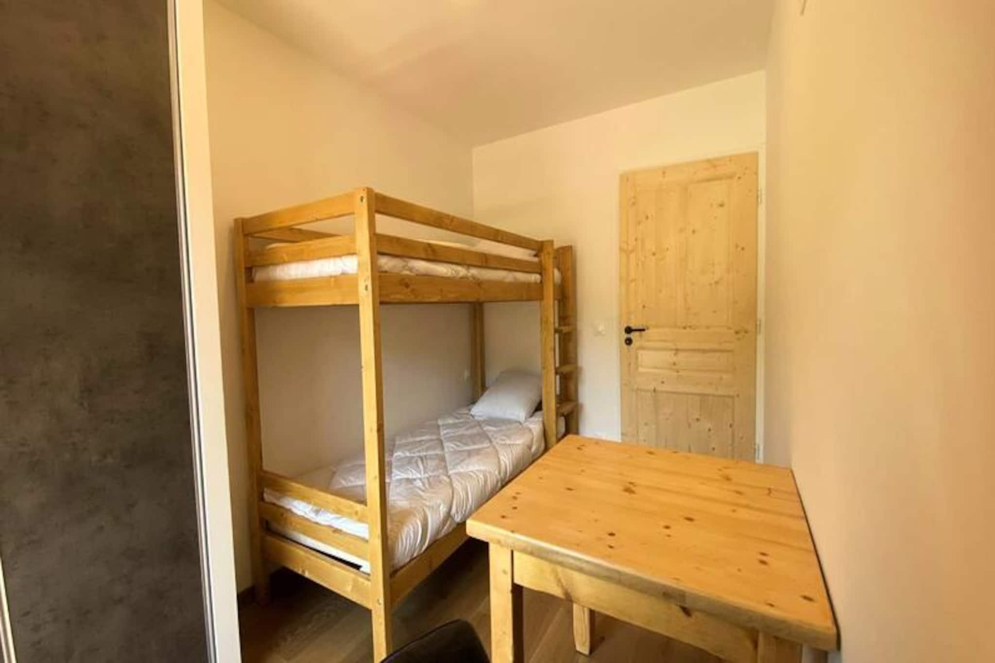 High above the picturesque Tarentaise Valley, this brand-new apartment in Le Roc-La Charmette Residence offers a modern alpine retreat for travelers seeking comfort and convenience. With sleek interiors and thoughtful design, this two-room cabin apartment welcomes up to six guests, making it ideal for families or small groups. The serene surroundings and proximity to world-class ski slopes create an unforgettable mountain escape, whether you're visiting for winter adventures or summer explorations. The nearby free bus stop ensures easy access to the region's attractions, while the peaceful ambiance of the residence invites you to relax and recharge. Inside, the apartment boasts a fully equipped living room with a 160cm Rapido sofa and television, perfect for cozy evenings after a day outdoors. The open kitchen features top-of-the-line appliances, including a dishwasher, conventional oven, microwave, induction hob, refrigerator, and freezer, making meal preparation a breeze. The cabin bedroom offers charming bunk beds and access to the balcony, while the master bedroom includes a luxurious 160cm bed, en-suite shower room with toilet, and a washing machine. Step onto the spacious 7.8m² balcony, where a table and chairs await for alfresco dining or simply soaking in the crisp alpine air. Guests will appreciate the added convenience of an underground parking space, ski locker, and bicycle storage, ensuring a hassle-free stay. While pets are not allowed, the residence caters to all other needs, with nearby amenities and services available to enhance your holiday experience. From the slopes to the trails, this apartment is perfectly positioned to explore the natural beauty of the French Alps. Whether you're carving through fresh powder or hiking under sunny skies, Le Roc-La Charmette Residence is your gateway to unforgettable alpine adventures.