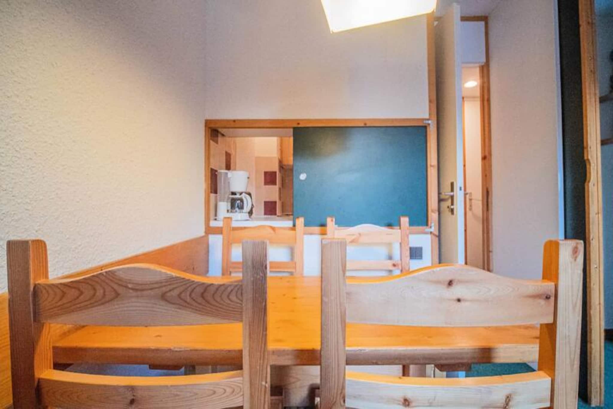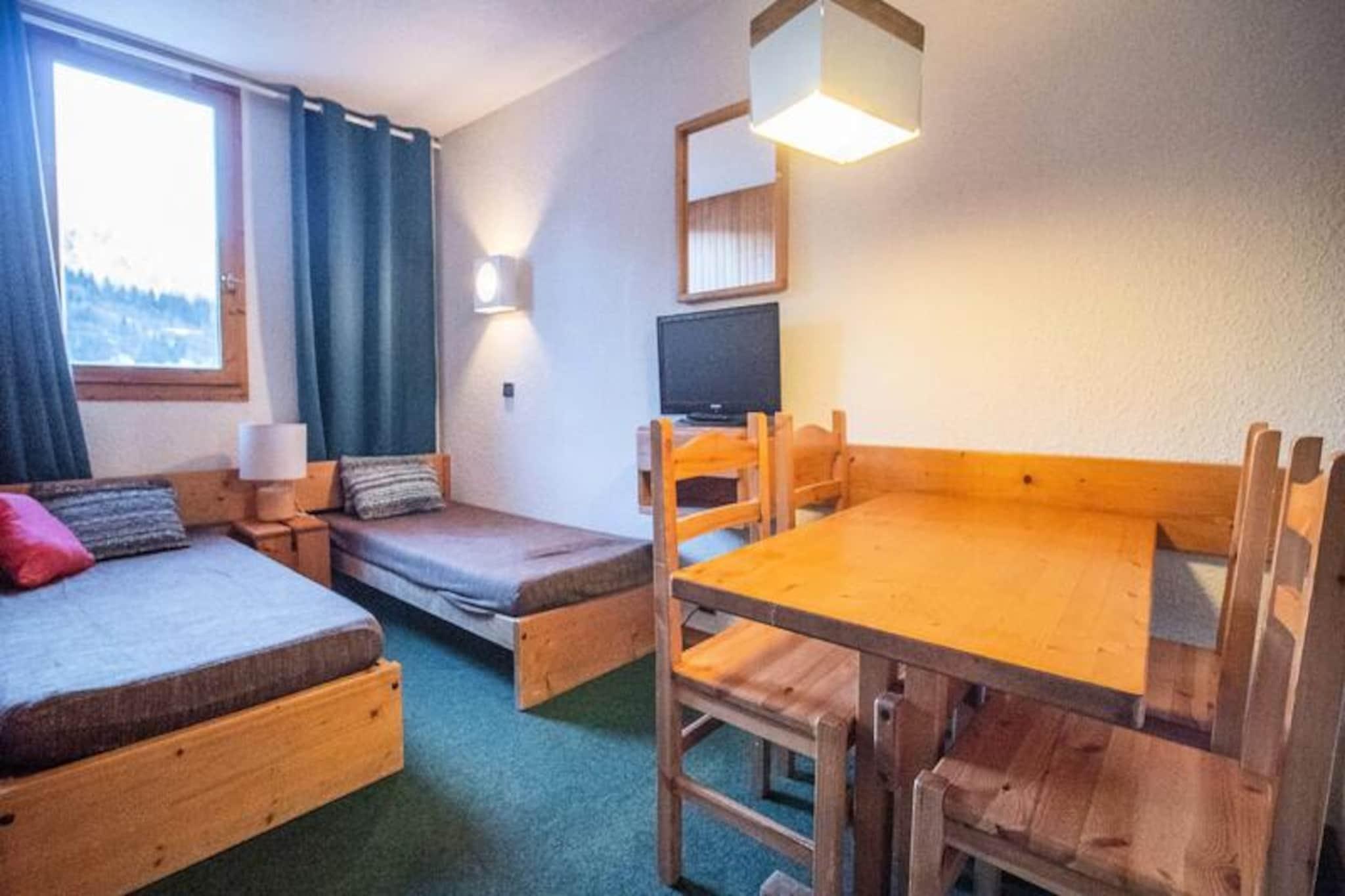 In the charming Crève Coeur area of Valmorel, this cozy studio apartment offers the perfect alpine retreat for up to four guests. With its unbeatable location just steps from the slopes and shops, and only 50 meters from the nearest ski lift, this property is ideal for those seeking convenience and comfort in the heart of the French Alps. The northwest-facing balcony provides stunning views of the Valmorel resort, making it a delightful spot to unwind after a day of mountain adventures. \n\nThe 27m² studio is thoughtfully designed with a divisible living room featuring four single beds, allowing for flexible sleeping arrangements. The separate kitchen is fully equipped with a dishwasher, electric stovetop, and oven, making meal preparation a breeze. A bathroom with a separate toilet adds to the functionality of the space. While Wi-Fi is not included, the apartment offers a ski locker for your equipment and welcomes pets for an additional fee, ensuring a truly inclusive stay for all. \n\nNestled in the Les Pierres Plates residence, the property is conveniently located opposite the Télébourg cable car station, providing seamless access to the ski school and the vibrant resort center. The residence is surrounded by essential amenities, including a bakery, mini-market, and sports store, ensuring all your needs are met within walking distance. Paid parking is available right in front of the building for added convenience. \n\nWhether you're here to carve through the pristine slopes, explore the picturesque hamlet of Mottet, or simply soak in the breathtaking alpine scenery, this studio apartment in Valmorel offers a warm and welcoming base for your mountain getaway. Experience the magic of the French Alps and create unforgettable memories in this idyllic setting.