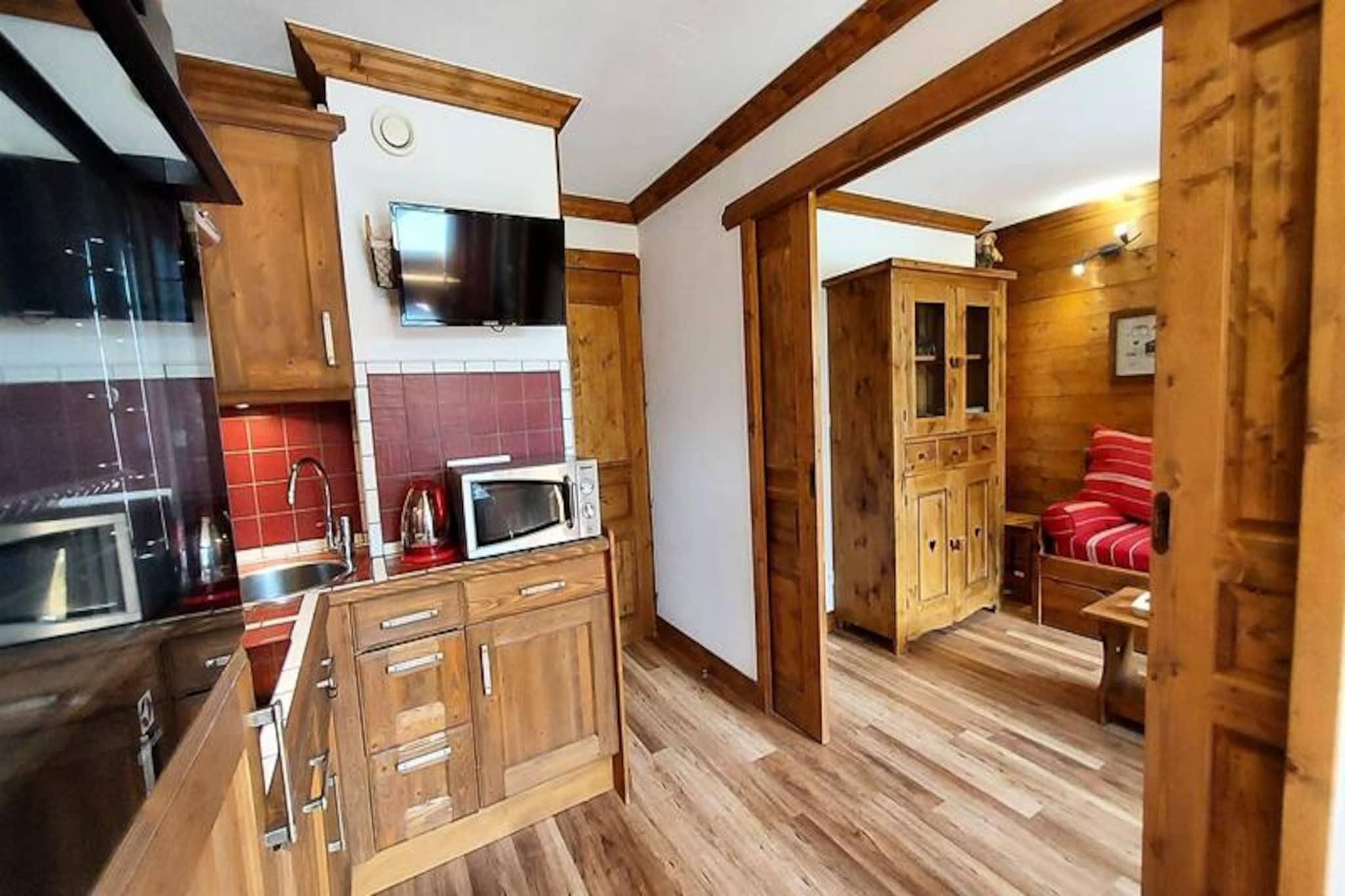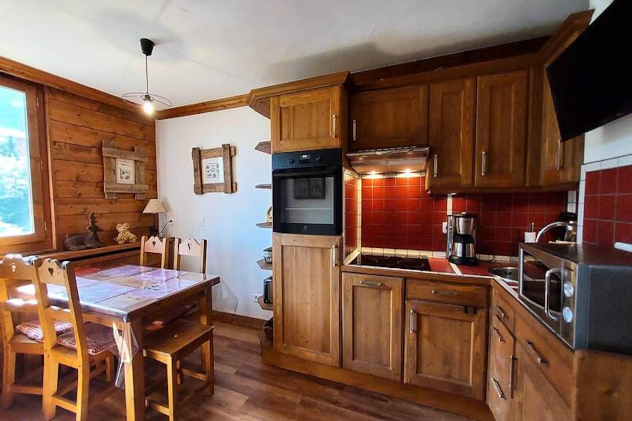 In the picturesque hamlet of Planchamp, where the charm of Savoyard traditions meets the thrill of alpine adventures, this renovated divisible studio apartment offers a delightful retreat for your mountain getaway. Imagine waking up to the crisp mountain air, stepping out onto your private east-facing balcony to enjoy a sunny breakfast, and being just 50 meters from the slopes for a day of skiing or snowboarding. Whether you’re seeking tranquility or excitement, this location offers the perfect balance. \n\nThe 34m² studio is thoughtfully designed to accommodate up to four guests. The living area features a comfortable single sofa bed with a pull-out bed, a cozy dining space with seating for four, and a fully equipped kitchen complete with a dishwasher, ceramic hob, oven, microwave, and even raclette and fondue sets for a true alpine culinary experience. The sleeping alcove with bunk beds provides a snug and private space, while the modern shower room and separate WC ensure convenience. A ski locker is also available for your gear, making your stay even more hassle-free.\n\nPlanchamp’s location is ideal for those who want to immerse themselves in the Savoyard atmosphere while enjoying easy access to amenities. The slopes and ski lifts are just 50 meters away, and the resort center with shops and restaurants is only 200 meters from your doorstep. Whether you’re exploring the snowy trails in winter or the lush alpine landscapes in summer, this hamlet offers a serene yet accessible base for your adventures.\n\nChoose this cozy studio for a holiday that combines comfort, authenticity, and the joy of the mountains. With its prime location and thoughtful amenities, it’s the perfect setting for creating unforgettable memories in the heart of the French Alps.