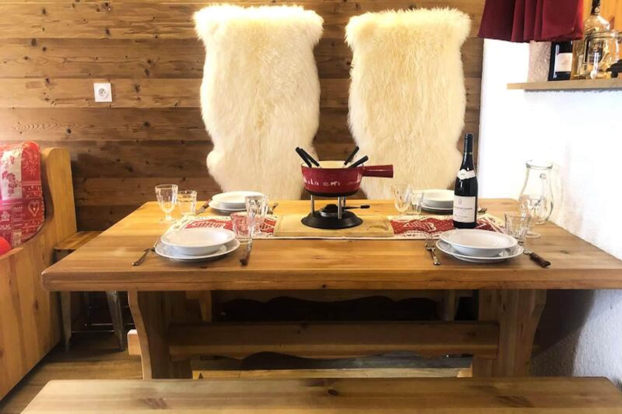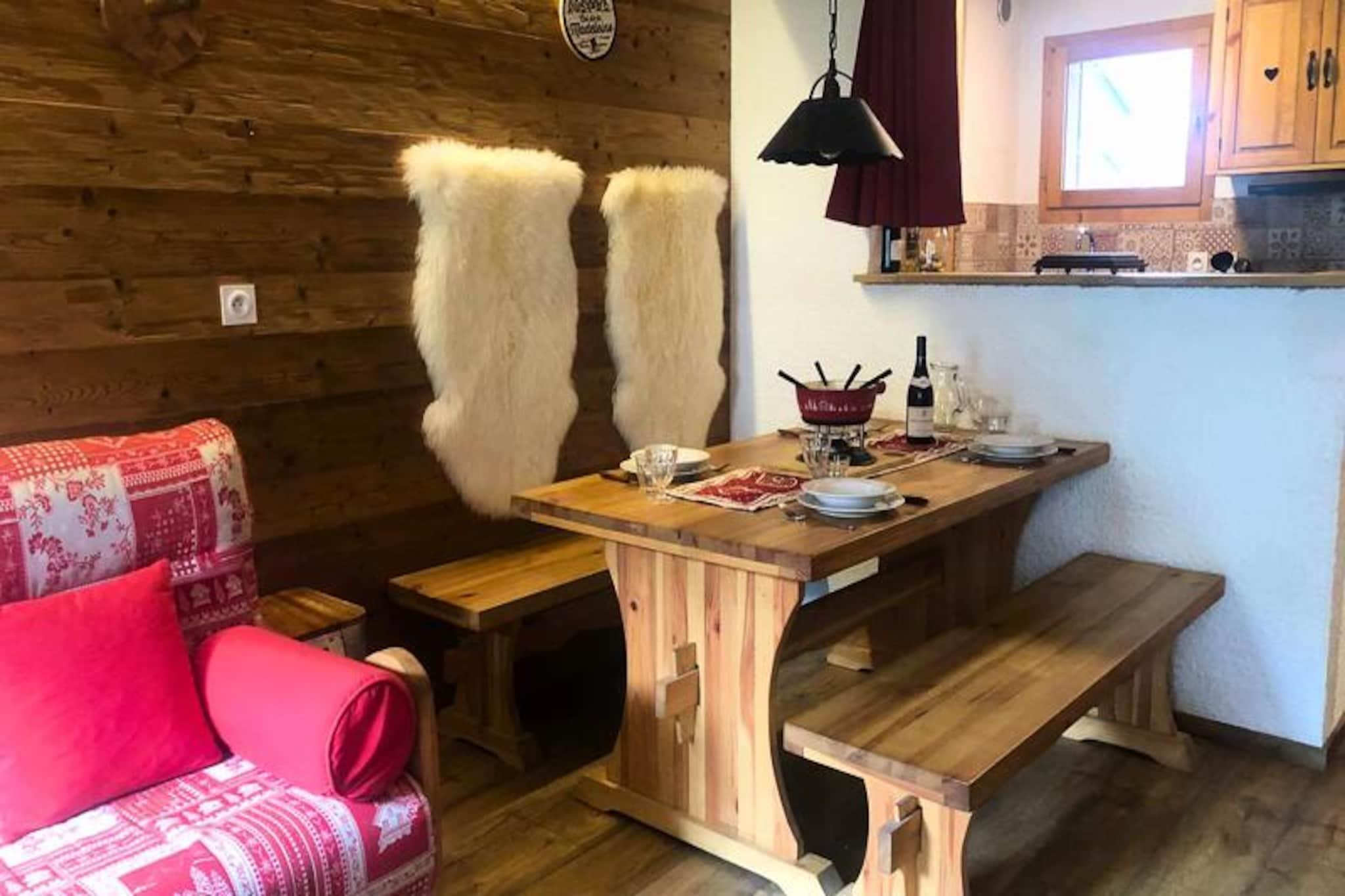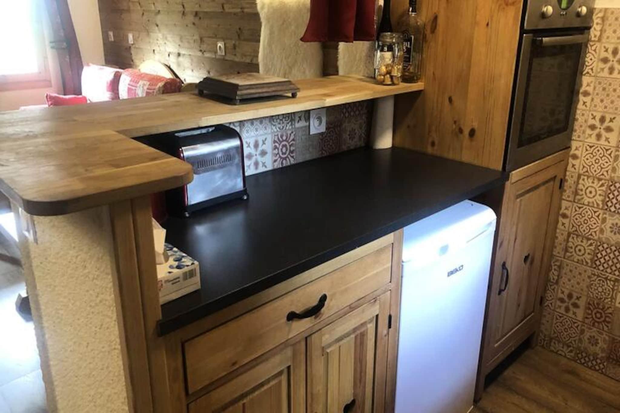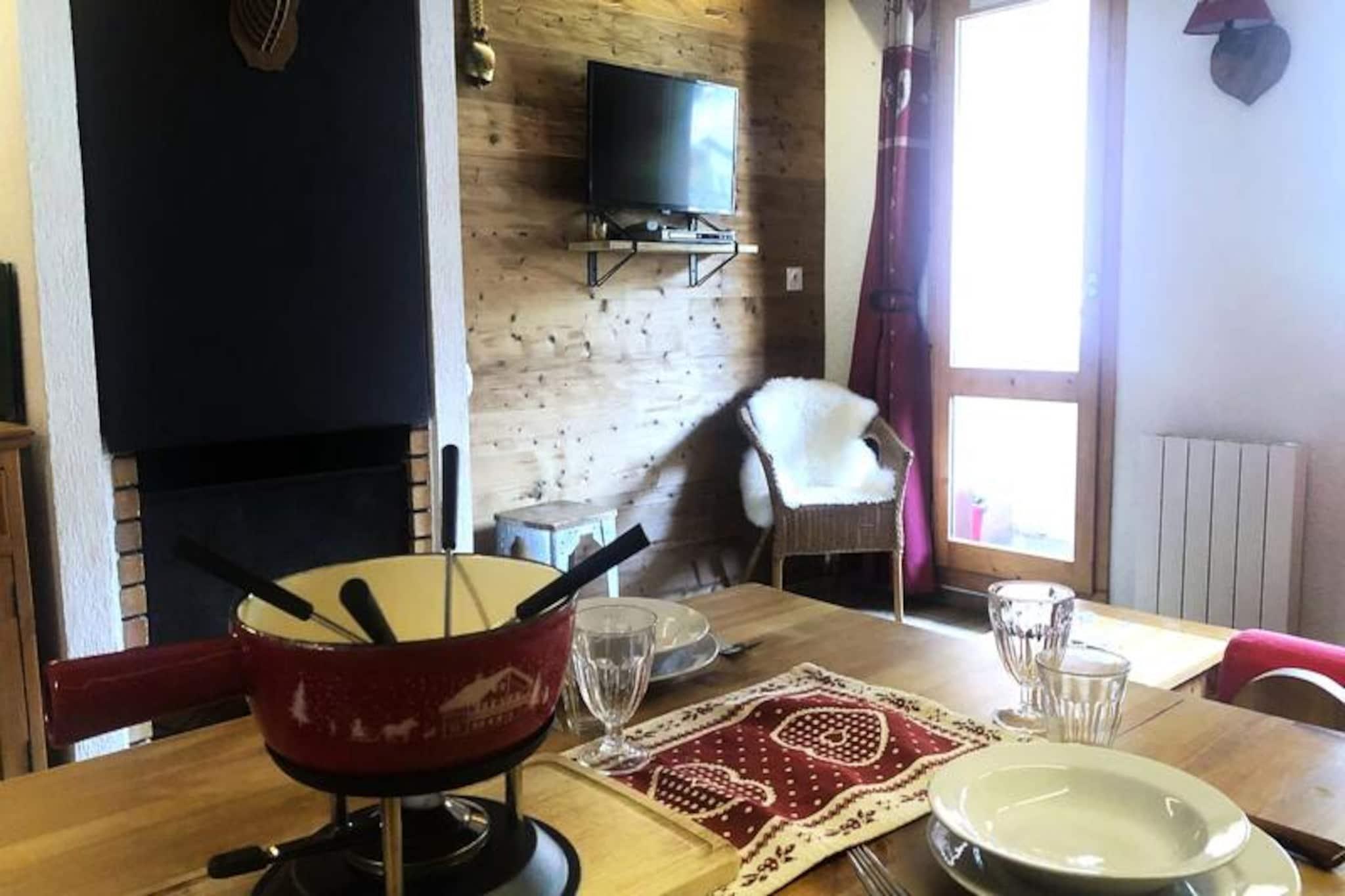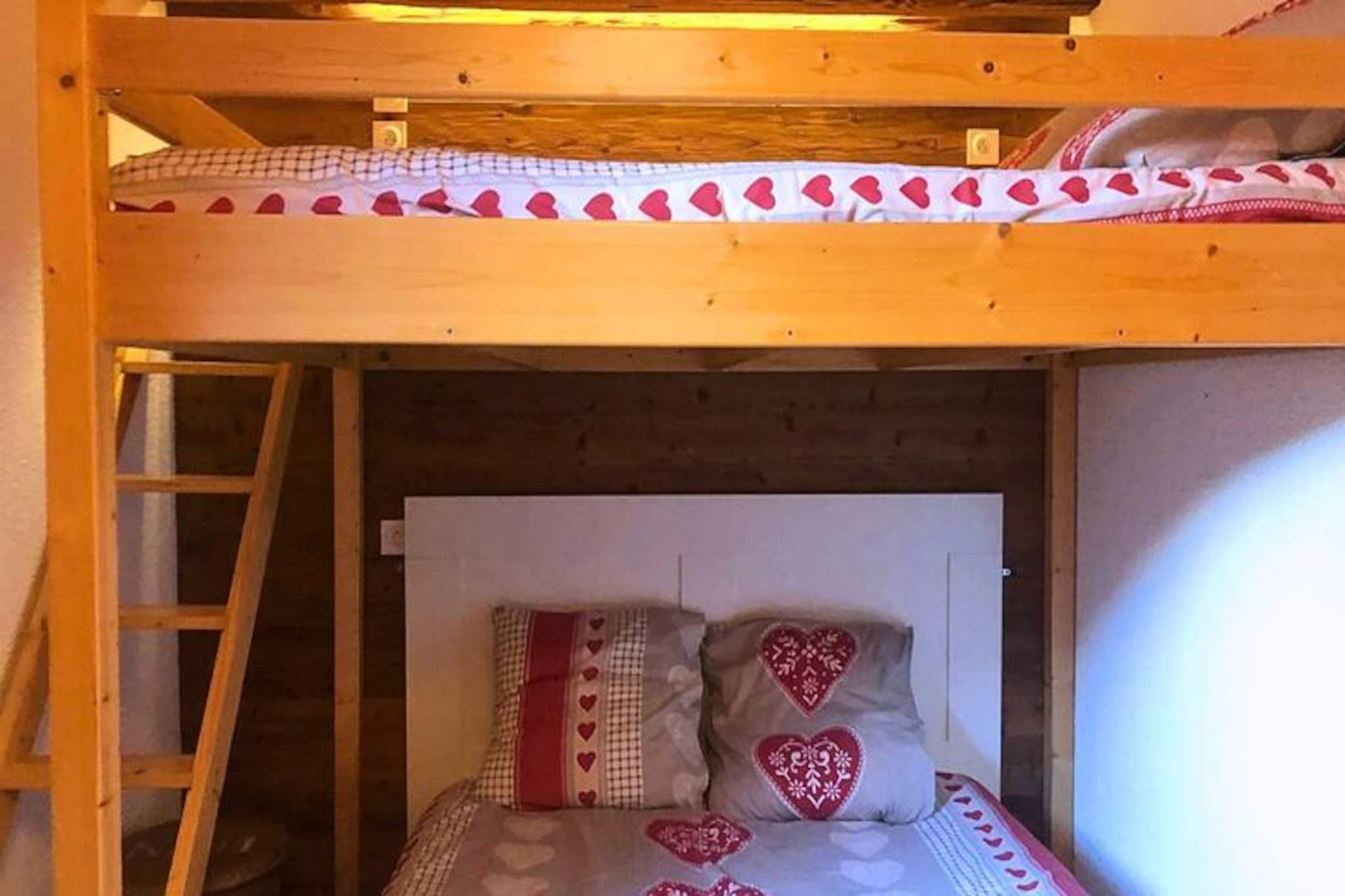In the charming hamlet of Le Bourg, this cozy two-room apartment offers a delightful alpine retreat for families or small groups. Imagine waking up to the crisp mountain air, stepping onto your private balcony, and gazing out at the serene snow-covered slopes just steps away. With its warm ambiance and thoughtful amenities, this apartment is the perfect base for an unforgettable ski holiday in the French Alps. The apartment comfortably accommodates 4 to 6 guests, featuring a bright open-plan kitchen and living area complete with a crackling fireplace to unwind after a day on the slopes. The bedroom is equipped with two double bunk beds, while the living room offers a sofa bed for additional sleeping space. A fully equipped kitchen includes everything from a microwave and oven to raclette and fondue sets, ensuring cozy evenings filled with delicious meals. Modern conveniences like a TV, DVD player, and high-speed WiFi make your stay even more enjoyable. Located at the foot of the slopes, this property is just a 5-minute walk from the ESF ski school and the Piou Piou children’s ski club, making it ideal for families. Nearby, you’ll find shops and restaurants to cater to all your needs. Whether you’re skiing in winter or hiking in summer, the surrounding area offers endless opportunities for adventure and relaxation. Choose this apartment for its unbeatable location, welcoming atmosphere, and the promise of creating cherished memories in the heart of the Alps.