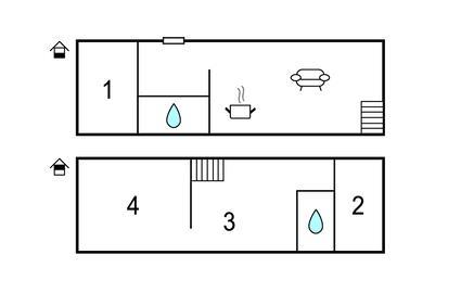 Badezimmer (nr. 1) - WC. Warmes und kaltes Wasser. Dusche