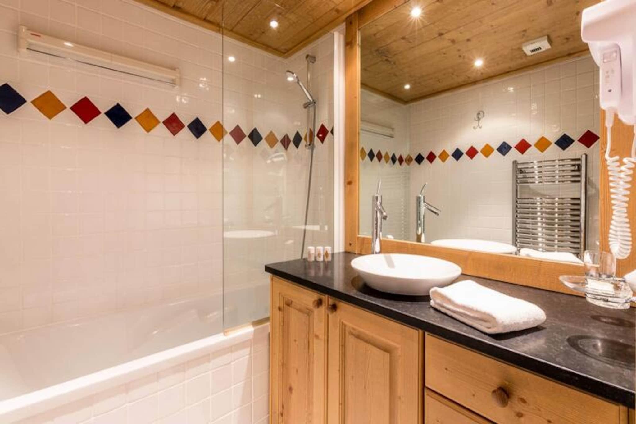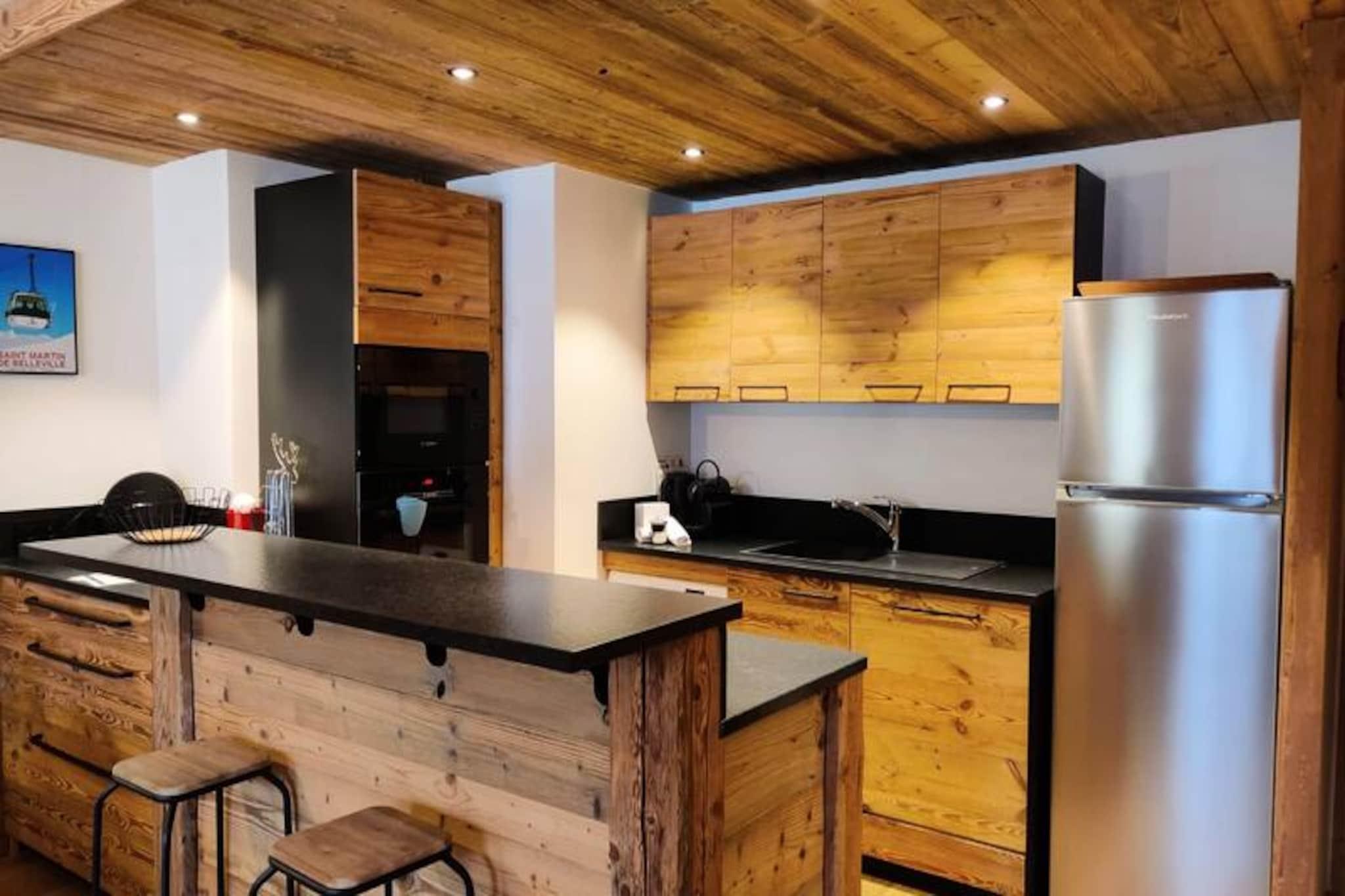 In the picturesque village of Saint Martin de Belleville, this luxurious 2-bedroom apartment offers a serene escape with unparalleled amenities. Imagine waking up to breathtaking views of the slopes and the charming village from your southwest-facing balcony, where the crisp mountain air invigorates your senses. This is a place where modern comfort meets alpine charm, creating the perfect setting for an unforgettable holiday in the heart of Les 3 Vallées ski area. The 67 m² apartment is thoughtfully designed with cozy chalet-style decor and contemporary touches. The spacious living room invites you to relax after a day of adventure, while the fully equipped open-plan kitchen makes it easy to prepare meals with family or friends. The two bedrooms provide restful retreats: one with a double bed and en-suite shower room, and the other with twin beds. Additional sleeping space is available in the living room with a pull-out sofa bed. Modern conveniences such as a washing machine, Bluetooth speaker, and ski lockers with boot dryers ensure a seamless stay. Guests enjoy complimentary access to the residence’s wellness area, featuring a heated indoor pool, sauna, hammam, jacuzzi, and fitness room. After skiing or exploring the village, indulge in a soothing massage or unwind in the solarium. The residence also offers concierge services, a bakery delivery option, and partnerships with local ski shops for added convenience. Saint Martin de Belleville is a hidden gem in the Alps, blending authentic charm with access to the world-class Les 3 Vallées ski domain. Whether you’re here for the pristine slopes, tranquil nature, or the village’s rich heritage, this apartment provides the perfect base for a rejuvenating mountain getaway.