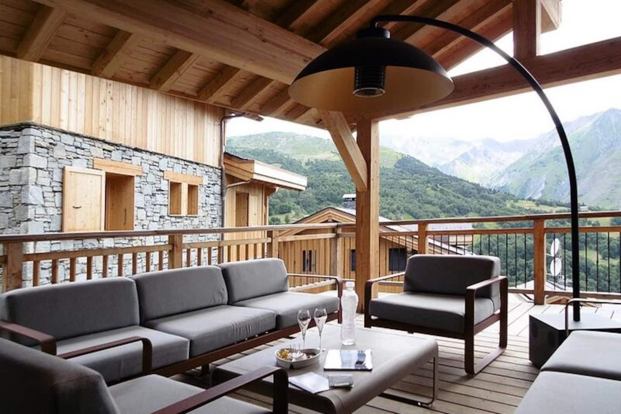 Amidst the serene beauty of the French Alps, Chalet Becca in the hamlet of Caseblanche offers an unparalleled retreat for those seeking luxury and adventure. This recently built collection of upscale chalets is perfectly situated just 50 meters from the Saint Martin gondola lift, granting direct access to the world-renowned 3 Valleys ski area. Whether you're here for thrilling days on the slopes or tranquil evenings by the fire, this chalet promises an unforgettable mountain experience. \n\nSpanning an impressive 210 m², Chalet Becca is designed to accommodate up to 16 guests across its 7 en-suite bedrooms. Every detail has been carefully curated, from the aged wood and warm Arpin fabrics to the inviting fireplace and private sauna. The chalet’s three levels are connected by a lift, ensuring effortless access to all its amenities. The spacious living area features a cozy lounge, a dining room with breathtaking mountain views, and a fully equipped kitchen. Step out onto the 40 m² heated terrace, furnished with garden furniture and an OFYR barbecue, perfect for enjoying the crisp alpine air. Additional conveniences include Wi-Fi, a ski locker with boot and glove dryers, and a private garage for two cars. \n\nCaseblanche itself offers a sports shop and a mountain brasserie, adding to the ease of your stay. Beyond the chalet, the Saint Martin gondola opens up endless possibilities for skiing, snowboarding, and exploring the vast 3 Valleys domain. In summer, the region transforms into a haven for hikers and nature enthusiasts, with trails that wind through lush landscapes and picturesque villages. Whether you’re here to carve through fresh powder or bask in the alpine sun, Chalet Becca is the perfect base for your mountain adventures.