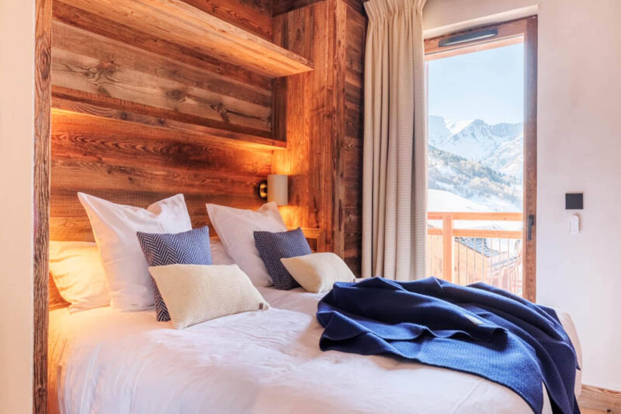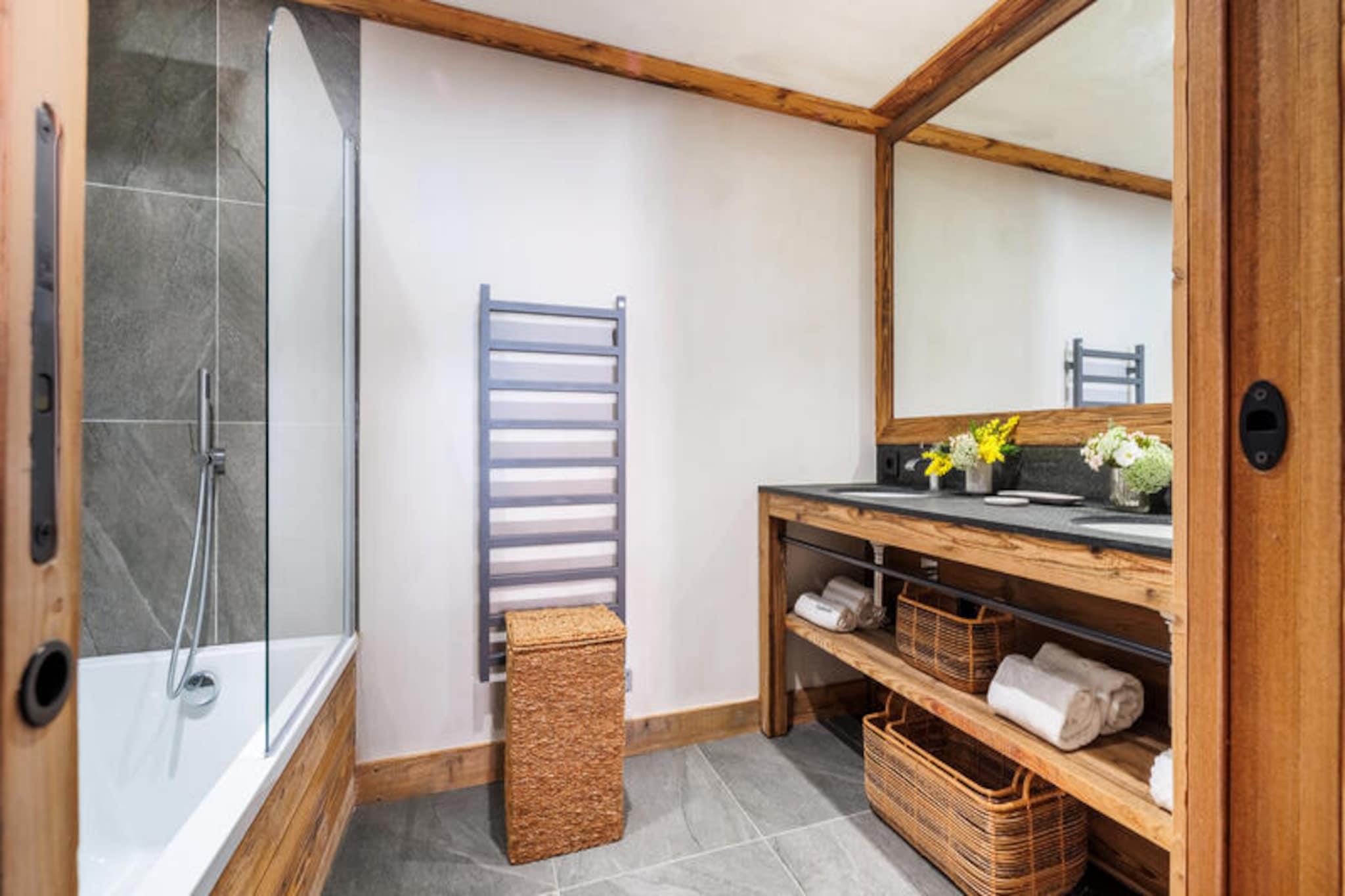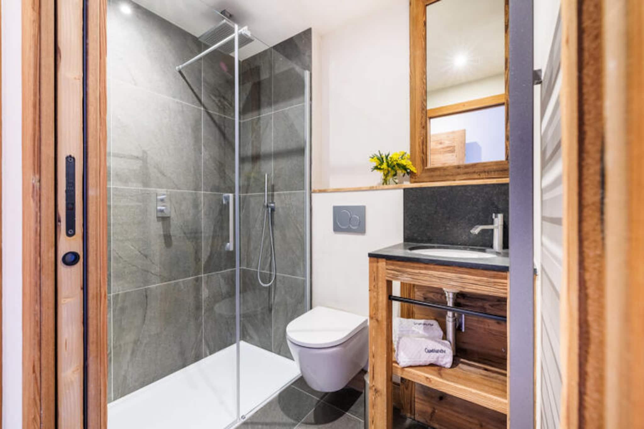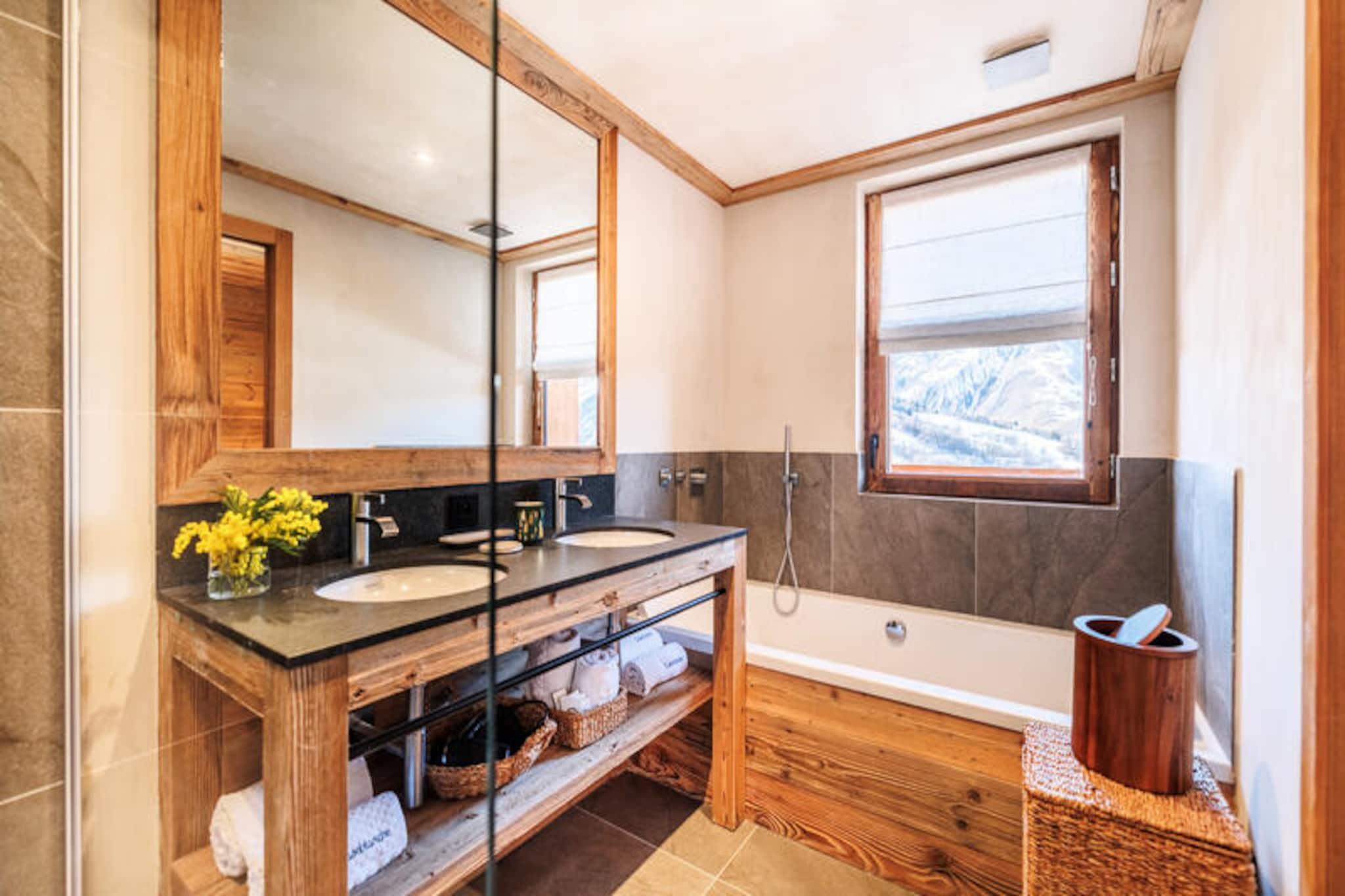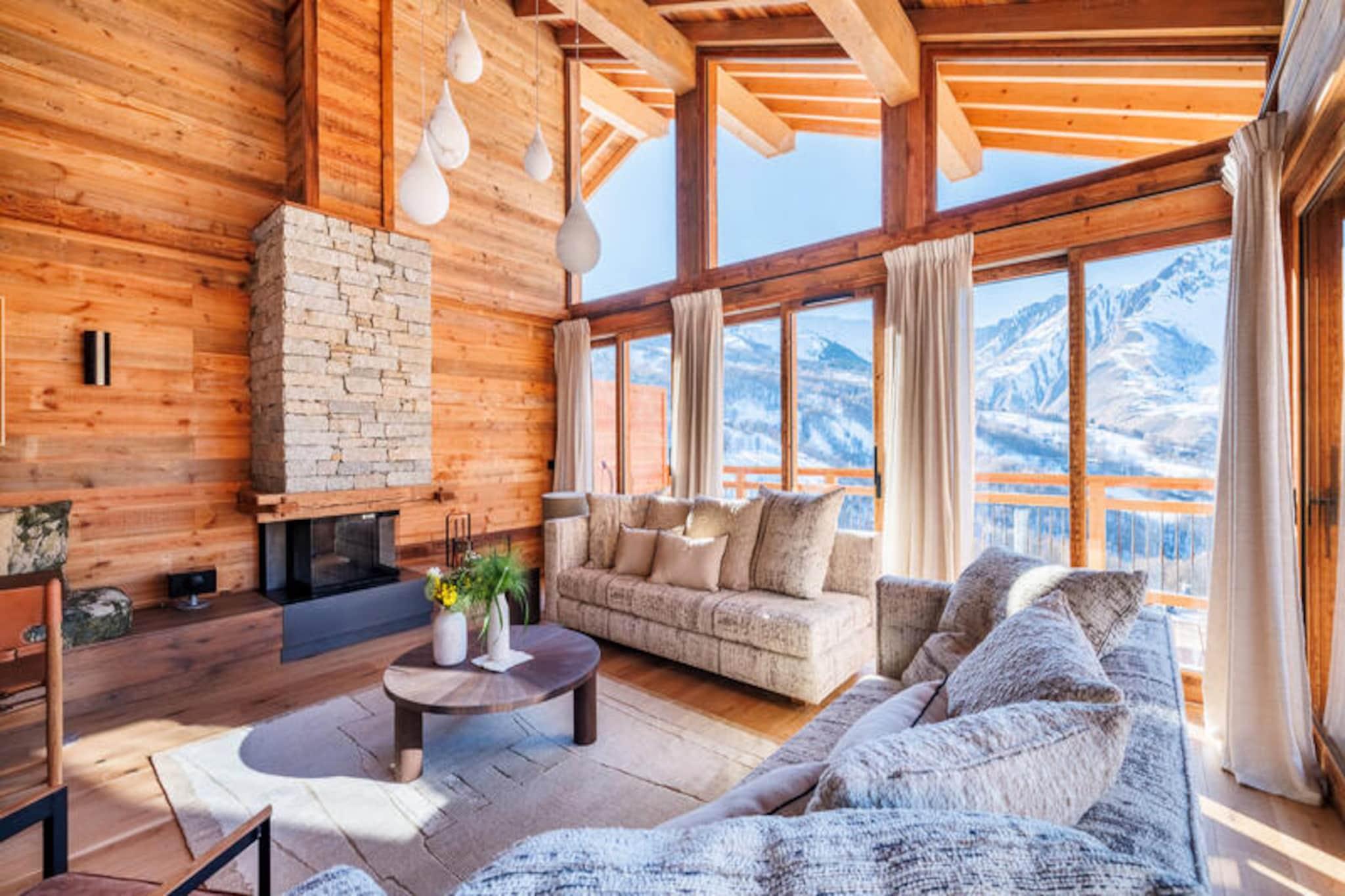 In the heart of the exclusive hamlet of Caseblanche, Chalet ALPEA offers an unparalleled alpine retreat, blending the charm of traditional mountain materials with modern luxury. Surrounded by the majestic peaks of Saint Martin de Belleville, this chalet is bathed in natural light and provides direct ski-in/ski-out access to the slopes, just 50 meters from the Saint Martin gondola lift, connecting you effortlessly to the world-renowned 3 Valleys ski area. Whether you're seeking adventure or tranquility, this chalet is your gateway to unforgettable mountain experiences. Step inside and be greeted by a spacious, light-filled living area with a cathedral ceiling that exudes warmth and elegance. The large living room, framed by a balcony on two sides, features a cozy fireplace and an inviting dining area, perfect for gathering after a day on the slopes. The open-plan kitchen is a chef's dream, equipped with state-of-the-art appliances, including a gas range, oven, microwave, espresso machine, and a large refrigerator. For entertainment, the first-floor cinema room with a giant screen promises cozy movie nights. The chalet comfortably accommodates up to eight guests across its luxurious bedrooms. The master suite boasts a double bed, dressing room, private balcony with mountain views, and a spa-like en suite bathroom with a walk-in shower, bathtub, and double vanity. Additional en suite bedrooms provide twin beds, private balconies, and modern amenities, ensuring every guest enjoys their own private haven. A large sauna offers the perfect place to unwind and rejuvenate after a day of skiing or exploring. With concierge services, a sports shop, and a mountain brasserie on-site, everything you need is at your fingertips. Whether you're savoring the breathtaking views, indulging in the chalet's luxurious amenities, or exploring the vibrant 3 Valleys, Chalet ALPEA is the ultimate destination for an unforgettable alpine escape.