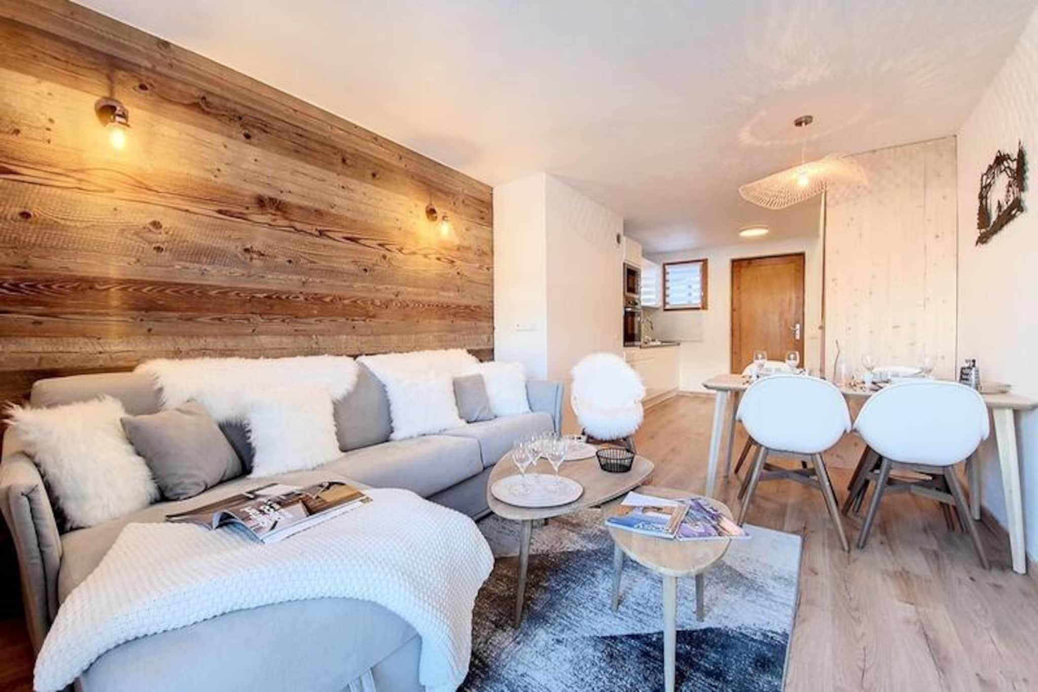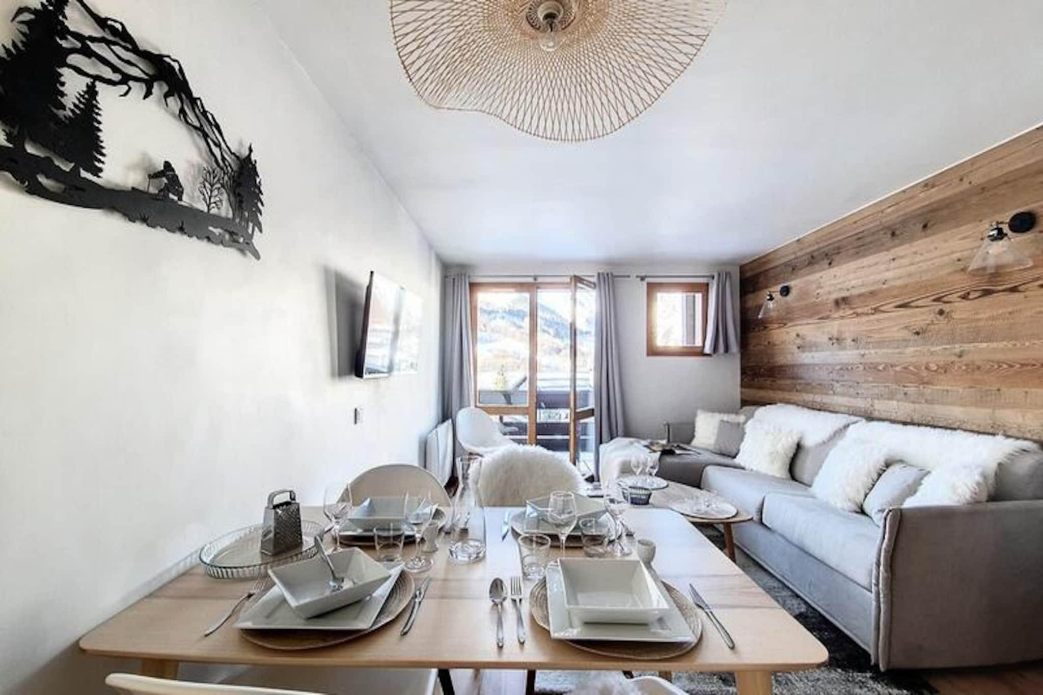High above the charming village center, this delightful duplex apartment offers a cozy alpine retreat with breathtaking views of the surrounding peaks. Located in the HORS PISTE residence, you’ll find yourself just steps away from local shops, including a bakery, sports store, and pharmacy, as well as direct access to the village ski lift, making it a perfect base for your mountain adventures. The south/west-facing balcony invites you to soak in the sun and admire the stunning mountain vistas after a day on the slopes. \n\nSpanning 46 m², this 3-room duplex comfortably accommodates up to six guests. The apartment features two bedrooms, one with twin beds and another with single beds, as well as a living room with a corner sofa bed equipped with a high-comfort mattress. The fully equipped kitchen includes modern appliances such as an oven, microwave, refrigerator, and dishwasher, ensuring you have everything you need to prepare hearty meals. A bathroom with a shower and a separate WC add to the convenience, while thoughtful amenities like bed linen, towels, and a ski locker are included during winter stays of seven nights or more. \n\nThe residence also provides a covered parking space, a rare luxury in the heart of the village. Beyond the comfort of your apartment, the vibrant village center offers a variety of dining and shopping options, while the ski lift grants seamless access to the pristine slopes. Whether you’re visiting in winter for skiing or in summer for hiking and exploring, this apartment offers the perfect blend of comfort, convenience, and alpine charm. \n\nChoose this welcoming retreat for an unforgettable stay in the French Alps, where every detail has been designed to make your holiday as relaxing and enjoyable as possible.