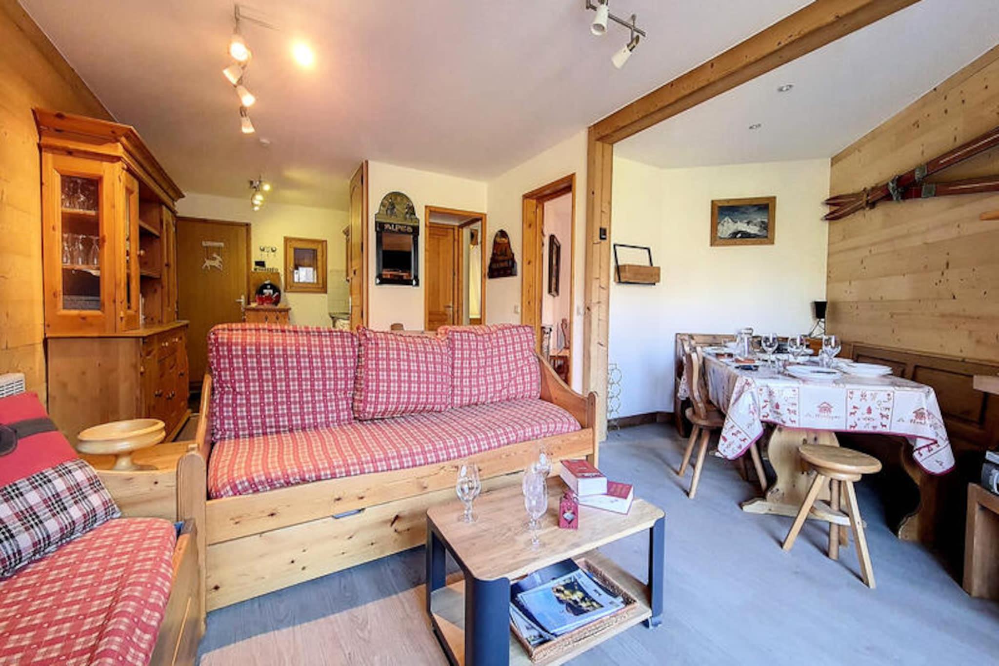 In the charming Grangeraies district, this delightful alpine retreat offers a perfect blend of comfort and convenience for your next mountain getaway. Just a short stroll from the Saint Martin 1 gondola lift, you’ll have direct access to the world-renowned 3 Valleys ski area, making it an ideal base for winter sports enthusiasts. The nearby shops, ski school, and equipment rentals ensure everything you need is within easy reach, while the village center is just a 10-minute walk away, offering a taste of authentic Savoyard charm. \n\nThis cozy 49 m² two-bedroom apartment, located on the third floor, comfortably accommodates up to six guests. The southwest-facing balcony provides breathtaking views of the surrounding peaks, perfect for unwinding after a day on the slopes. Inside, the apartment features a warm and inviting living room with two single sofa beds, a flat-screen TV, DVD player, stereo system, and iPod docking station. The well-equipped kitchen includes modern appliances such as a ceramic hob, oven, microwave/grill, refrigerator, dishwasher, and a Dolce Gusto coffee machine, making meal preparation a breeze. \n\nThe sleeping arrangements are thoughtfully designed with a double bed in the master bedroom and bunk beds in the second bedroom (note: the upper bunk is not suitable for children under six). The bathroom offers a relaxing bathtub, heated towel rail, and washing machine, while a separate WC adds extra convenience. Free Wi-Fi is available throughout the apartment, ensuring you stay connected during your stay. \n\nWith its prime location near the gondola lift, stunning mountain views, and comfortable amenities, this apartment is the perfect choice for families or groups seeking a memorable alpine escape. Whether you’re here for skiing, hiking, or simply soaking in the serene mountain atmosphere, this residence promises an unforgettable experience.
