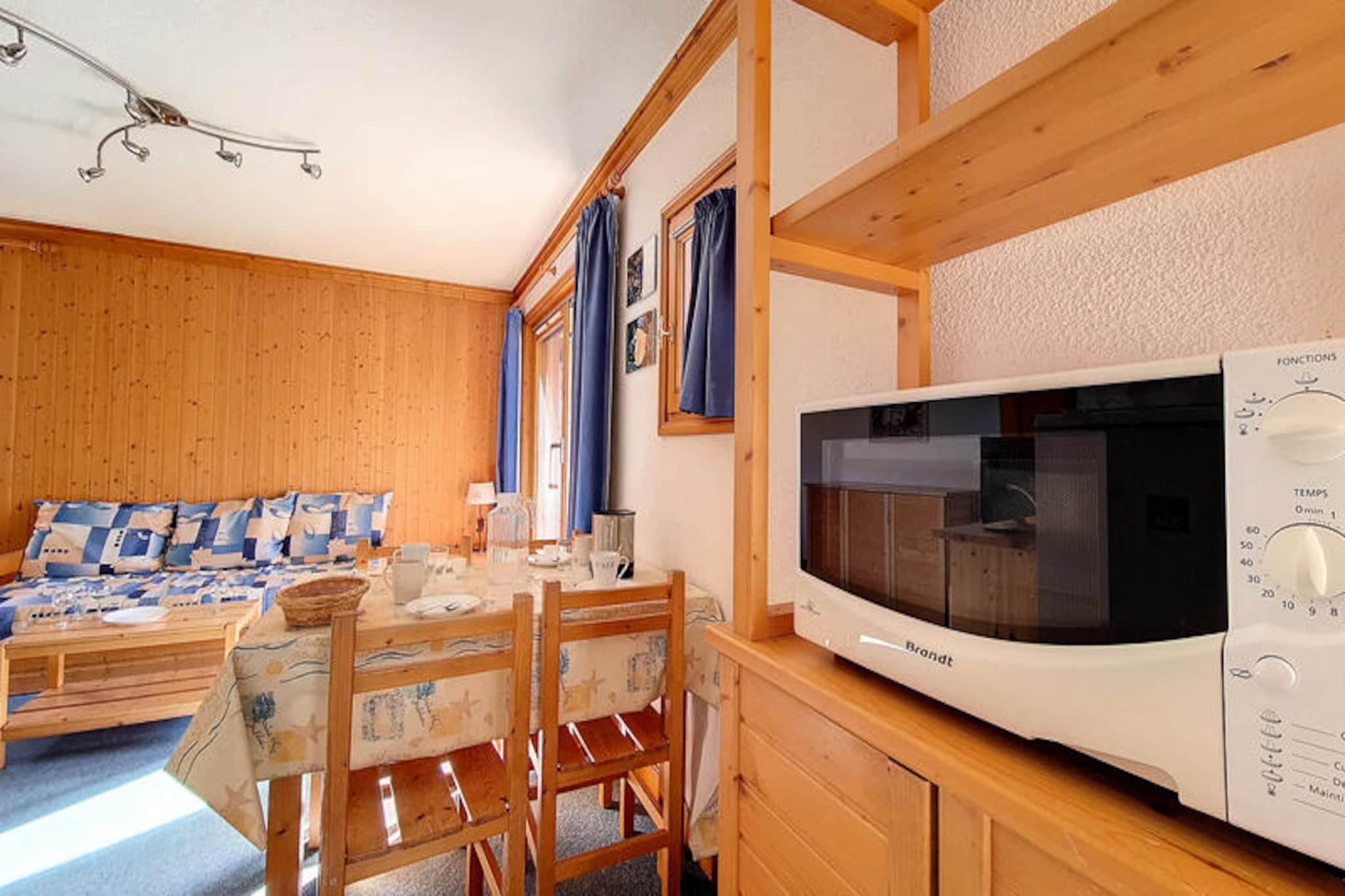In the picturesque Grangeraies district, where alpine charm meets modern convenience, this inviting apartment offers a cozy retreat for your mountain adventures. With the Saint Martin 1 gondola lift just steps away, you’ll have direct access to the renowned 3 Valleys ski area, making it an ideal base for exploring one of the largest ski domains in the world. The south/west-facing balcony provides a serene spot to soak in the breathtaking views and golden sunsets over the snowy peaks, creating an atmosphere of tranquility and inspiration. \n\nThis 47 m² apartment comfortably accommodates up to six guests across its thoughtfully designed layout. The master bedroom features a plush double bed, while the second bedroom offers two single bunk beds, perfect for families or groups of friends. The living room includes a double sofa bed, satellite TV, and a warm, welcoming space to unwind after a day on the slopes. The well-equipped kitchen boasts modern appliances such as a mini-oven, refrigerator, dishwasher, and microwave, ensuring you can prepare hearty meals with ease. A separate bathroom with a bathtub and a separate WC add to the convenience and comfort of your stay. \n\nLocated just a 10-minute walk from the village center, you’ll find grocery stores, sports equipment shops, and ski schools within easy reach. Whether you’re seeking thrilling descents, peaceful walks through snow-covered trails, or a taste of local Savoyard cuisine, this location places you at the heart of it all. In winter, enjoy the added comfort of included linens, towels, and ski locker access for stays of seven nights or more. \n\nChoose this charming apartment for a memorable alpine escape, where every detail is designed to enhance your experience. From its prime location to its cozy interiors, it’s the perfect haven for creating unforgettable moments in the French Alps.