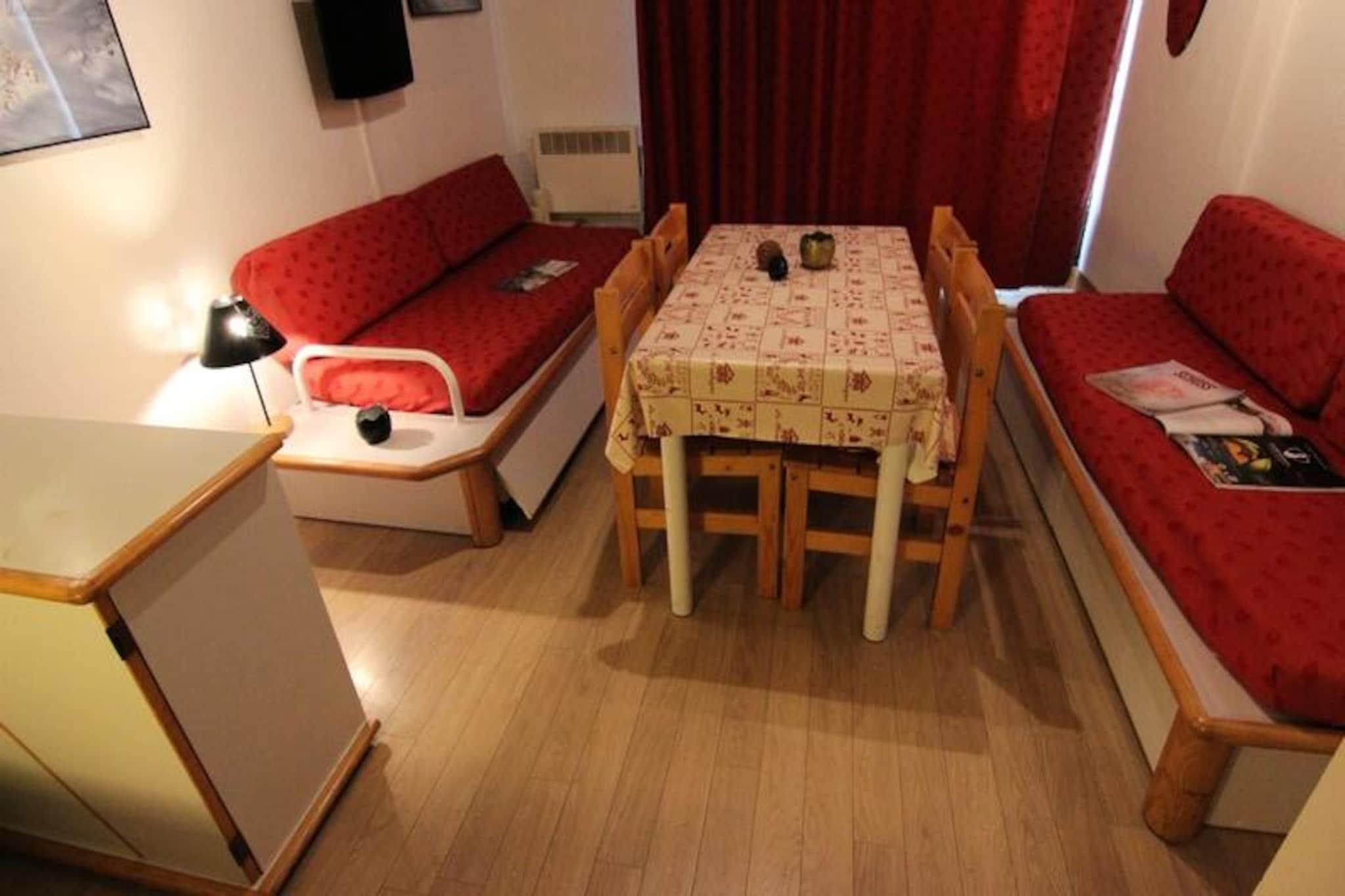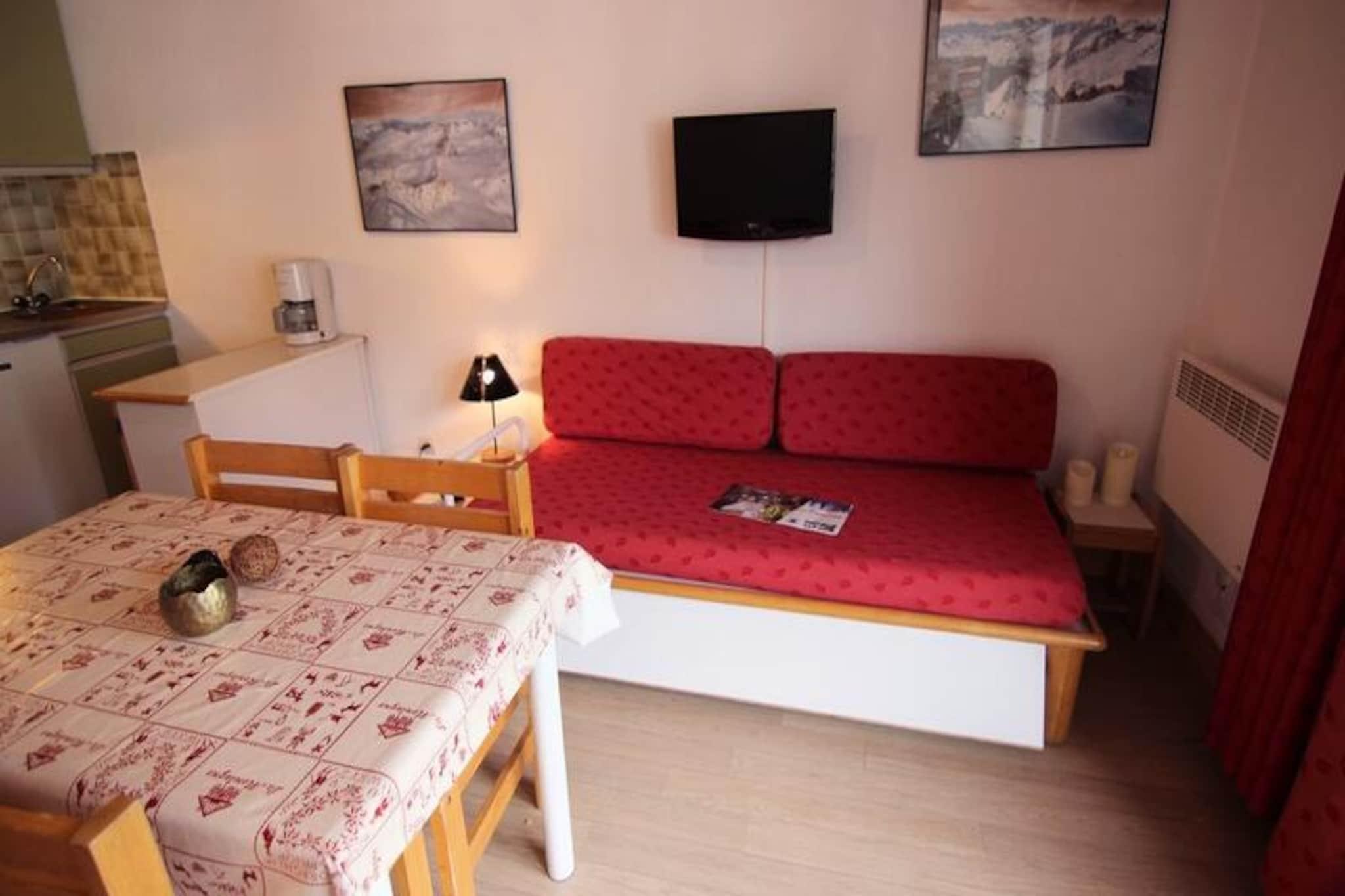 High above the bustling heart of Val Thorens, this charming apartment in the peaceful Slalom district offers a serene alpine retreat with effortless access to the slopes just 50 meters away. Imagine waking up to the crisp mountain air, stepping outside, and gliding straight into your skiing adventure. Whether you're here to carve through powdery pistes or simply soak in the breathtaking views, this residence combines tranquility with convenience for an unforgettable stay in the French Alps. \n\nDesigned for up to four guests, the apartment features a cozy layout with thoughtful amenities. The kitchenette is equipped with a mini-oven, electric stovetop, refrigerator, and dishwasher, making it easy to prepare hearty meals after a day of exploration. The living room invites relaxation with a television and versatile sleeping arrangements, including a single sofa bed and trundle bed. The entrance offers fold-out bunk beds, while the bathroom provides a bathtub and sink for unwinding. The east-facing veranda doubles as a dining area, where you can enjoy meals with a view of the surrounding peaks. \n\nConveniently located near the Péclet shopping center, you'll find everything you need within easy reach, including local shops, restaurants, and the ski lift ticket office. Ski rental is available just 150 meters away at Skiset Goitschel Sport, ensuring you're well-equipped for your alpine adventures. Garage rental and parking at Slalom add to the ease of your stay. \n\nWhether you're drawn to the thrill of skiing, the charm of Val Thorens, or the serene mountain atmosphere, this apartment is your gateway to a memorable alpine escape. Perfectly positioned to balance activity and relaxation, it invites you to create lasting memories in the heart of the French Alps.