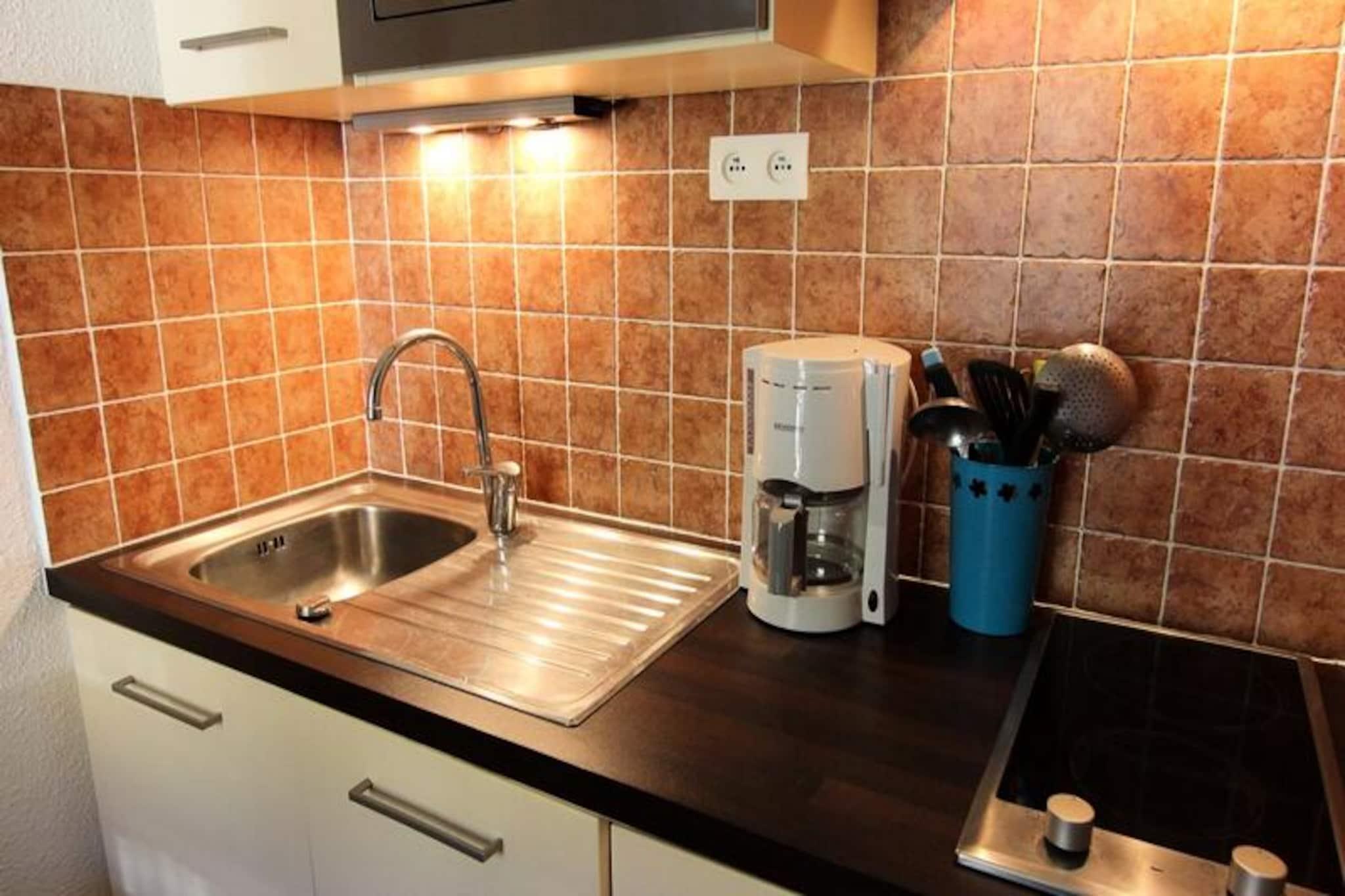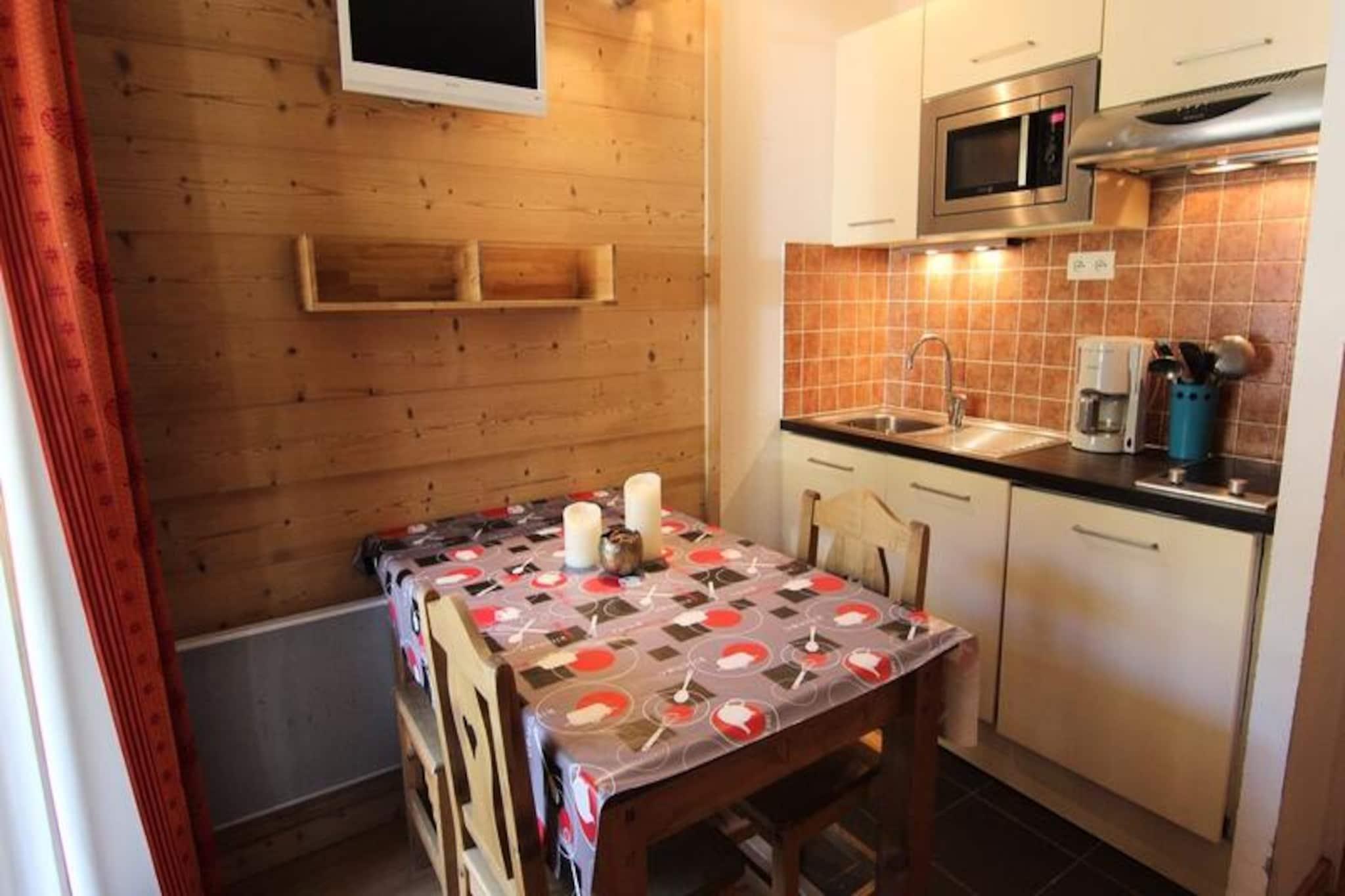 High above the Tarentaise Valley, this cozy studio offers a front-row seat to the alpine charm of Val Thorens, the highest ski resort in Europe. Just steps from the vibrant Caron district, you’ll find yourself immersed in the lively atmosphere of this world-class destination, with its array of shops, restaurants, and après-ski venues. Whether you’re here to carve through pristine slopes or simply soak in the mountain air, this is the perfect base for your adventure. \n\nThis thoughtfully designed 18 m² studio is ideal for two guests, offering a warm and inviting retreat after a day on the slopes. Located on the 5th floor with elevator access, the space features a north-facing balcony where you can unwind and admire the serene alpine views. Inside, the studio is equipped with modern amenities, including a pull-out sofa that converts into two comfortable single beds, a fully equipped kitchen with a combination microwave, ceramic hob, dishwasher, and refrigerator, as well as a sleek bathroom with a separate toilet. \n\nThe ski slopes are just 50 meters away, offering true ski-in/ski-out convenience. For your gear, the nearby SKISET/GOITSCHEL SPORT shop in the ESKIVAL residence is less than 100 meters away. The resort’s sports center, complete with a swimming pool and wellness area, is also within walking distance, making it easy to relax and rejuvenate. Additional amenities such as the ski school, tourist office, and local bank ensure everything you need is close at hand. \n\nWhether you’re seeking thrilling descents, cozy evenings by the fire, or a vibrant après-ski scene, this studio places you in the heart of it all. Experience the magic of Val Thorens and create unforgettable memories in this alpine haven.