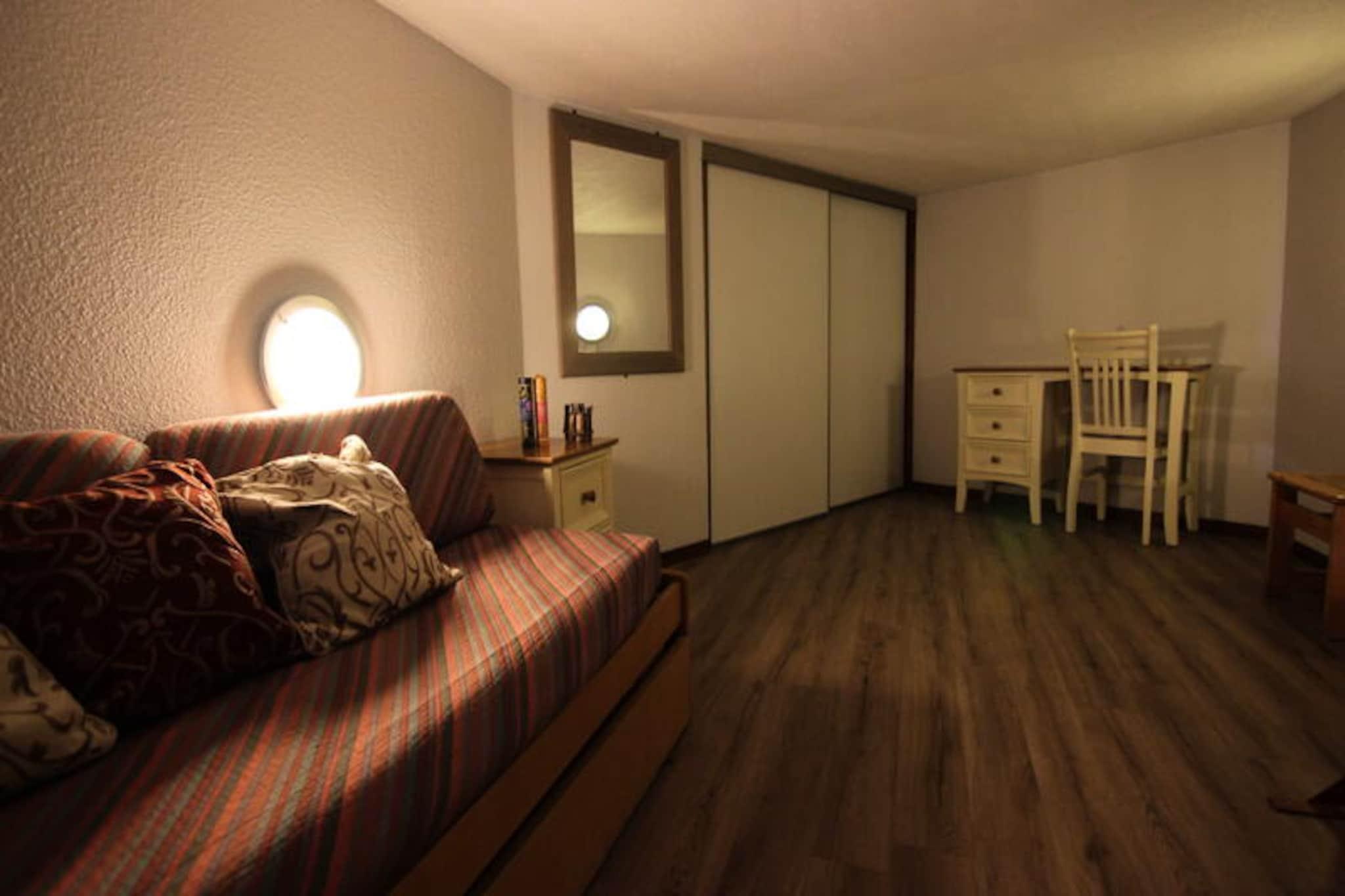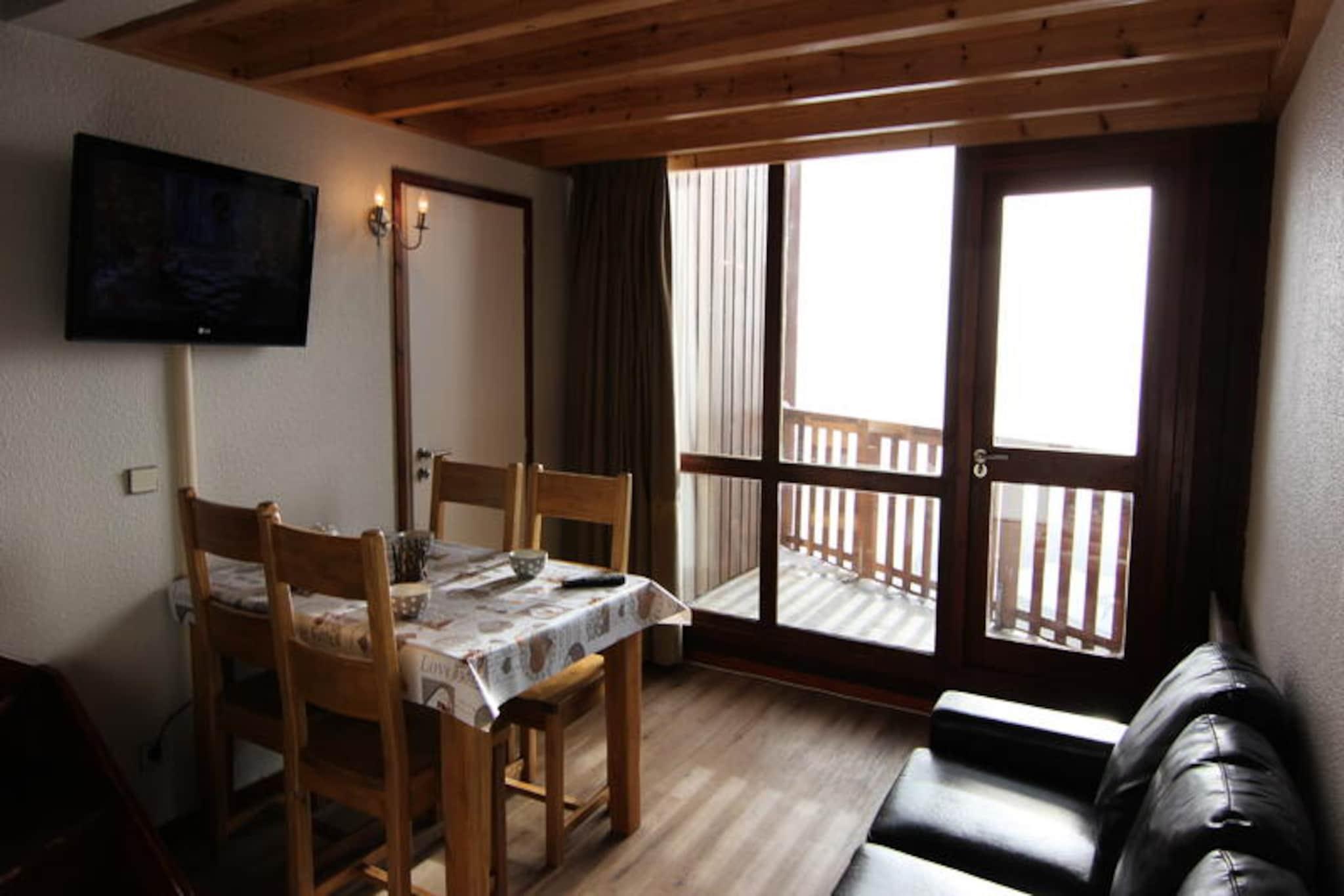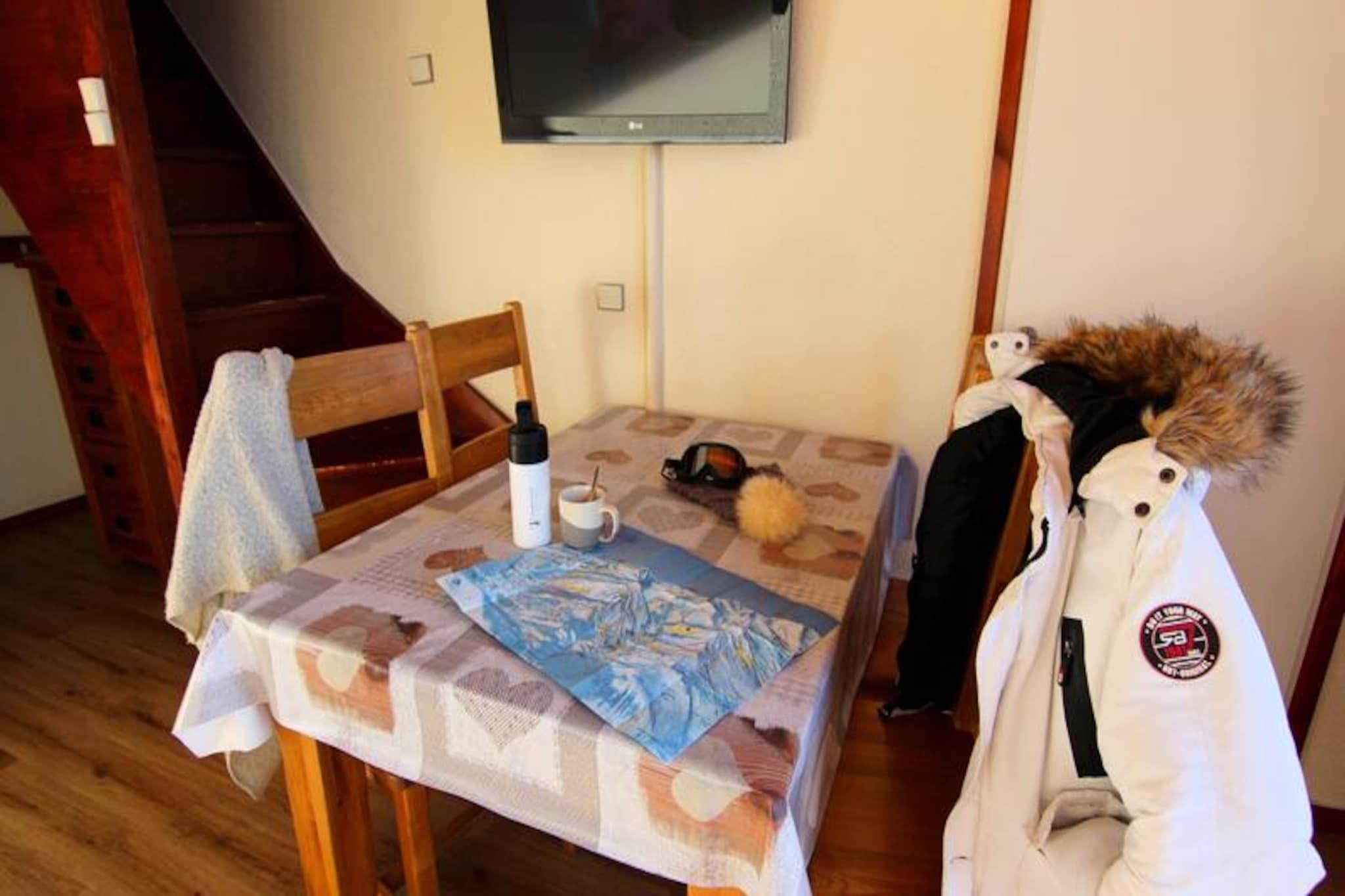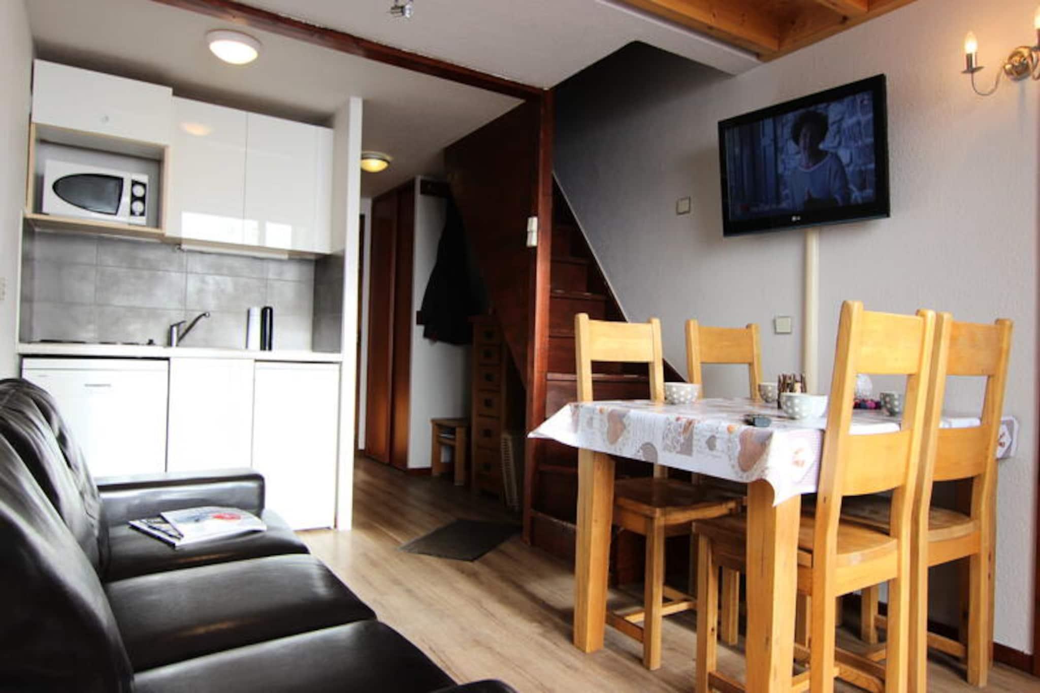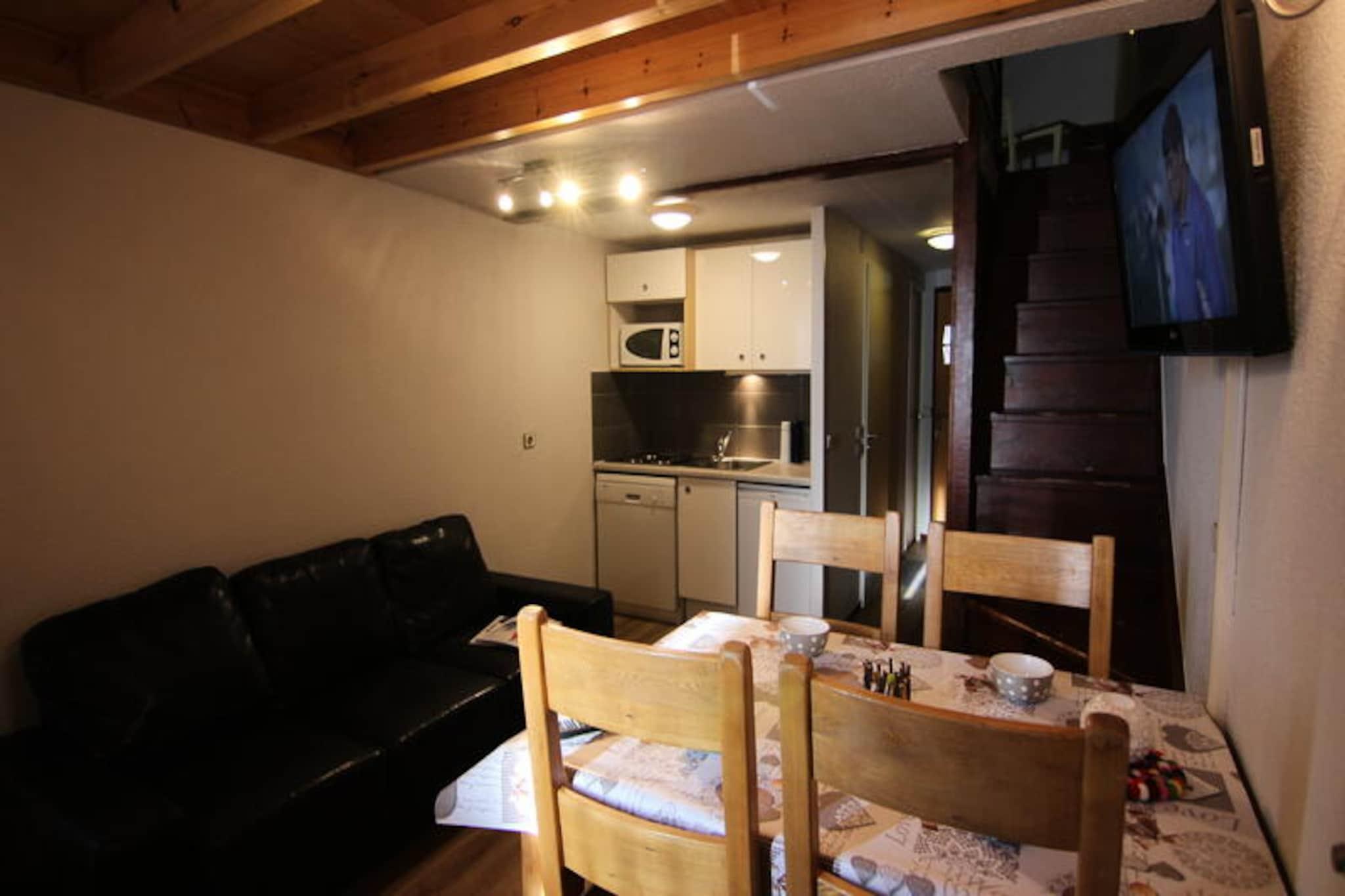 Bathed in the golden hues of the Soleil district, this charming apartment in the Silveralp residence offers a cozy alpine retreat with direct access to the slopes just across the road. Perfectly positioned in the lower part of the resort, it combines convenience with stunning views from its southwest-facing balcony, where you can soak in the beauty of the surrounding peaks and enjoy the crisp mountain air. Whether you're here for a winter wonderland or summer adventures, this property invites you to experience the magic of the French Alps in comfort and style. \n\nThe apartment spans two levels, offering a cleverly designed 18 m² living space plus an additional 18 m² mezzanine. The kitchenette is equipped with modern amenities including a dishwasher, microwave, electric stovetop, and refrigerator, making it easy to prepare hearty meals after a day outdoors. The living room features a television, a comfortable sofa, and a dining area, creating a welcoming space to relax and unwind. Upstairs, the mezzanine includes a cabin with a pull-out sofa bed and a bedroom with two single beds, ensuring restful nights for up to four guests. The bathroom is fitted with a bathtub and sink, while the toilet is conveniently separate. \n\nLocated near shops and restaurants, everything you need is just a short stroll away. The resort center is easily accessible via elevator and footbridge, adding to the convenience of your stay. In winter, enjoy skiing on pristine slopes, while summer opens up a world of hiking trails, mountain biking, and breathtaking vistas. The Silveralp residence is your gateway to unforgettable alpine experiences, whether you're seeking thrilling adventures or tranquil moments in nature. \n\nWith its prime location, thoughtful amenities, and welcoming atmosphere, this apartment is the perfect choice for couples, families, or small groups looking to immerse themselves in the charm of the French Alps.