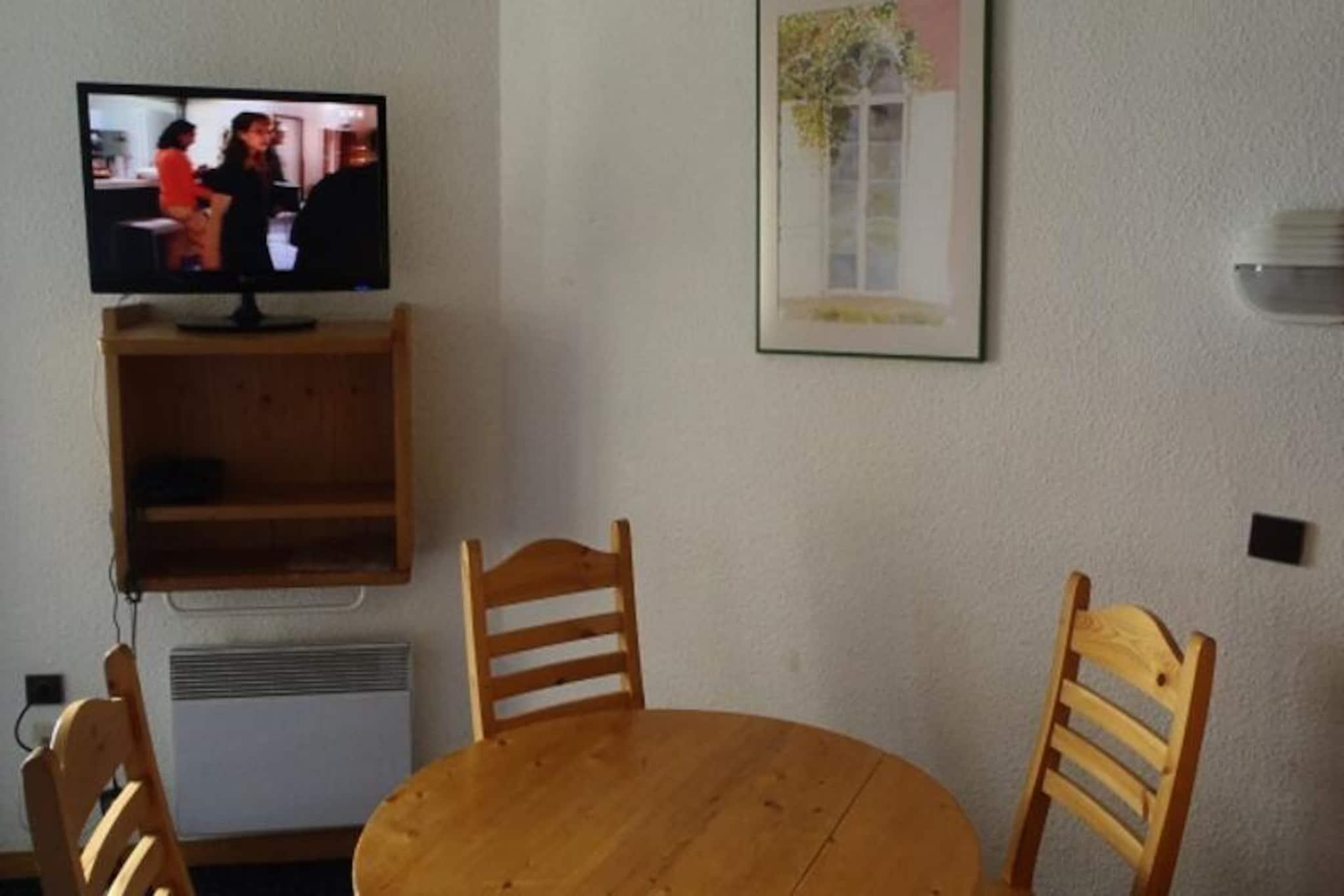 In the heart of the Soleil-Machüu district, where the charm of alpine living meets modern convenience, this cozy apartment offers a perfect retreat for your mountain getaway. Imagine waking up to the crisp mountain air, stepping out onto your south-facing balcony, and taking in the breathtaking views of the slopes just outside your door. With direct ski-in/ski-out access via the residence’s ski lockers, your alpine adventures begin the moment you step outside. This thoughtfully designed 28 m² apartment is ideal for up to four guests, offering a warm and inviting space to relax after a day on the slopes. The living room features two comfortable single sofa beds and a television, while the separate bedroom provides two single beds for a restful night’s sleep. The kitchenette is equipped with an electric hob, combination microwave, dishwasher, and refrigerator, making it easy to prepare meals and snacks. A bathroom with a bathtub and a separate toilet add to the convenience and comfort of your stay. The residence itself is a hub of activity and amenities. Enjoy access to a games room, restaurant, bar, sports shop, and mini-market, all located within the building. For those seeking relaxation, the fitness room, jacuzzi, sauna, and steam room are available for a fee, offering the perfect way to unwind after a day of skiing or hiking. With its unbeatable location and array of amenities, this apartment is your gateway to the best of the French Alps. Whether you’re here for the thrill of the slopes or the serenity of the mountains, Les Temples du Soleil promises an unforgettable alpine escape.
