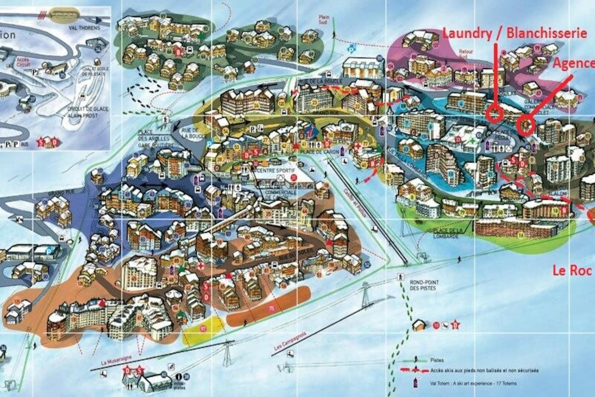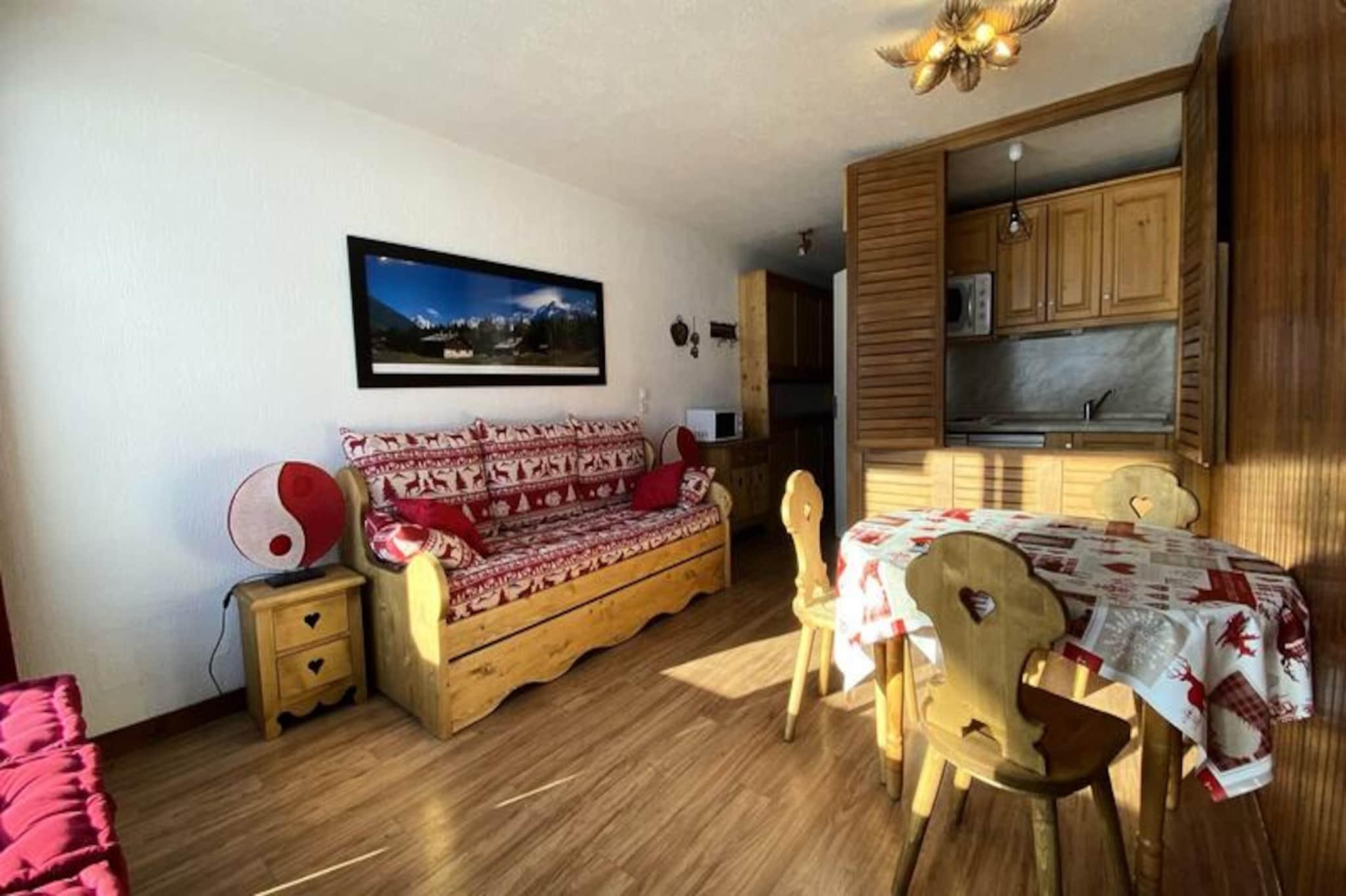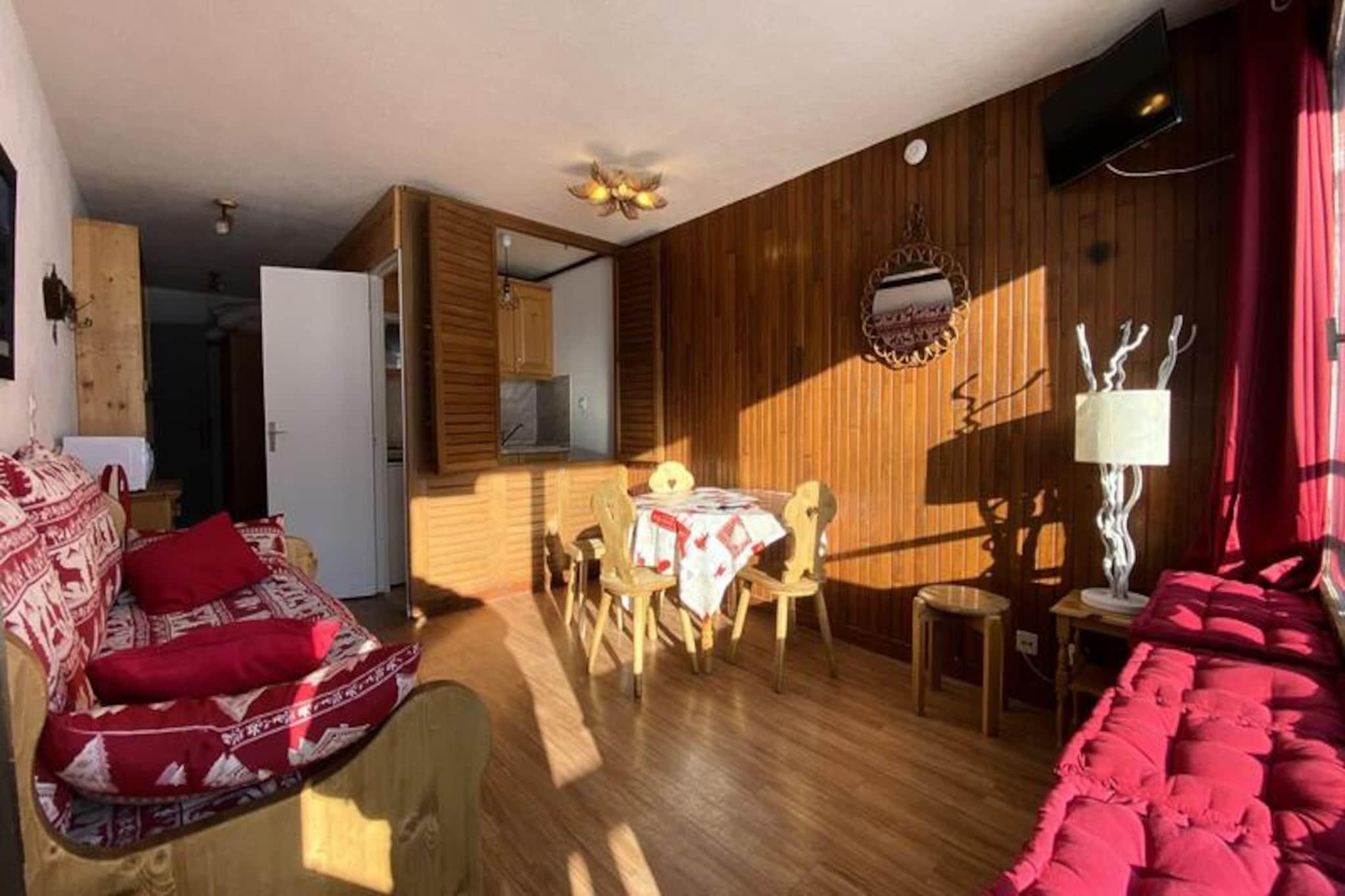 High above the lively streets of Val Thorens, the LE ROC DE PECLET residence offers a serene alpine retreat with direct access to the slopes. Imagine waking up to the crisp mountain air and stepping out onto the snow-covered trails just moments from your door. This charming studio, located on the first floor, invites you to experience the tranquility of the French Alps while being conveniently close to the Péclet shopping center for all your essentials and après-ski delights. Its south-east orientation ensures plenty of natural light, creating a warm and inviting atmosphere throughout the day. \n\nDesigned for up to four guests, the studio features a practical layout with bunk beds in the entrance hall and a pull-out sofa bed in the living room. The compact yet well-equipped kitchen includes an oven, refrigerator, dishwasher, and stovetop, making it easy to prepare hearty meals after a day on the slopes. The bathroom houses both the toilet and shower, ensuring convenience and functionality. Ski lockers are thoughtfully provided at the entrance of the residence, allowing you to store your gear with ease. \n\nThe residence’s location is ideal for ski enthusiasts, offering effortless access to the renowned slopes of Val Thorens. Beyond skiing, the area boasts breathtaking views, lively après-ski options, and a variety of shops and restaurants within walking distance. Whether you're exploring the nearby trails or indulging in local cuisine, the charm of this alpine village is sure to captivate you. \n\nPerfect for couples or small families seeking a cozy and practical base, LE ROC DE PECLET combines the joys of mountain living with the convenience of a prime location. Let the beauty of the Alps inspire your next adventure in this peaceful yet vibrant setting.