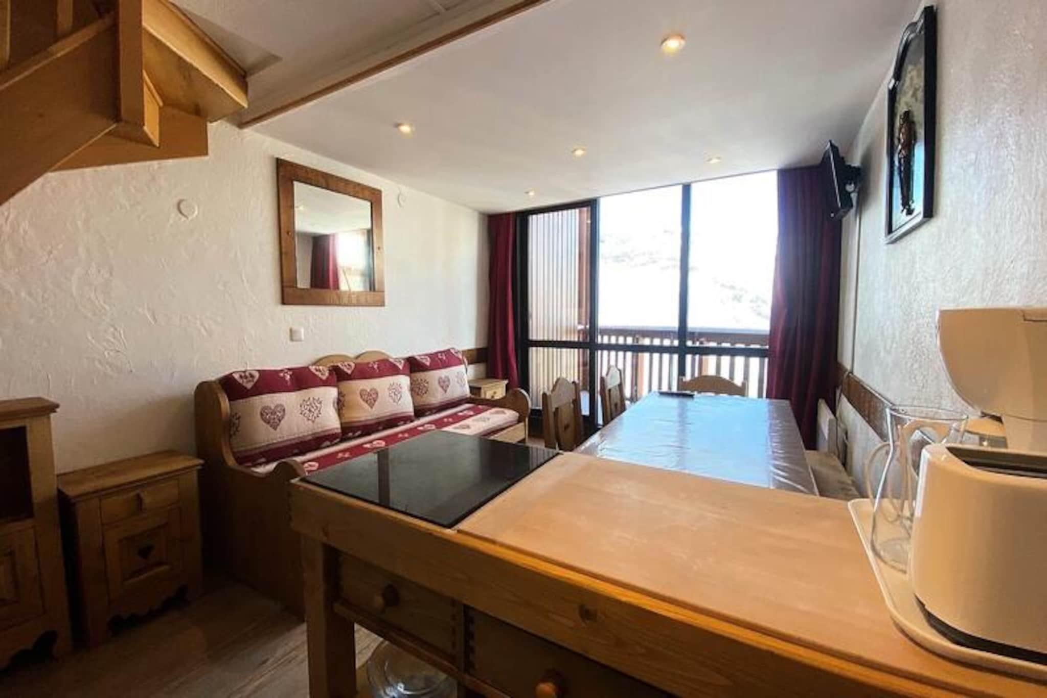 In the heart of Val Thorens, where the majestic Alps meet vibrant village life, the Silveralp residence offers a perfect alpine retreat. This charming duplex apartment, located on the 6th floor with elevator access, invites you to immerse yourself in the beauty of the mountains with its large south-facing balcony that bathes the space in natural light and offers breathtaking views of the surrounding peaks. Just 30 meters from the slopes, kindergarten, and daycare, this property ensures effortless access to all the essentials for a memorable mountain getaway. The 40m² apartment is thoughtfully designed for comfort and functionality. On the ground floor, you’ll find a cozy dining area with a sofa and a fully equipped kitchen featuring a stovetop, refrigerator, microwave, and dishwasher, making it easy to prepare meals after a day of adventure. A separate toilet and bathroom add convenience, while the upper floor, with its charming alpine-style cabins, provides two sleeping areas, each with two single beds, perfect for families or small groups. Silveralp’s prime location places you steps away from the resort’s shops, restaurants, and lively fountain area, ensuring that everything you need is within easy reach. Whether you’re here to ski the world-renowned slopes of Val Thorens, explore scenic hiking trails, or simply relax and soak in the alpine atmosphere, this residence offers the ideal base. With pet-friendly options available and the flexibility to tailor your stay with additional services like linens and cleaning, the Silveralp residence is more than just a place to stay—it’s a gateway to unforgettable mountain memories.