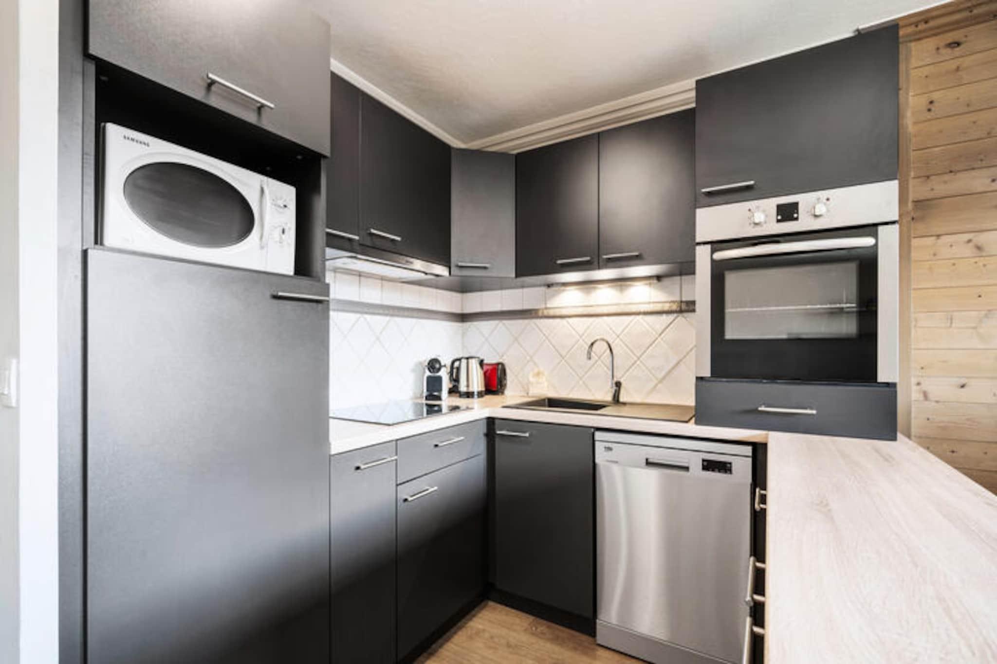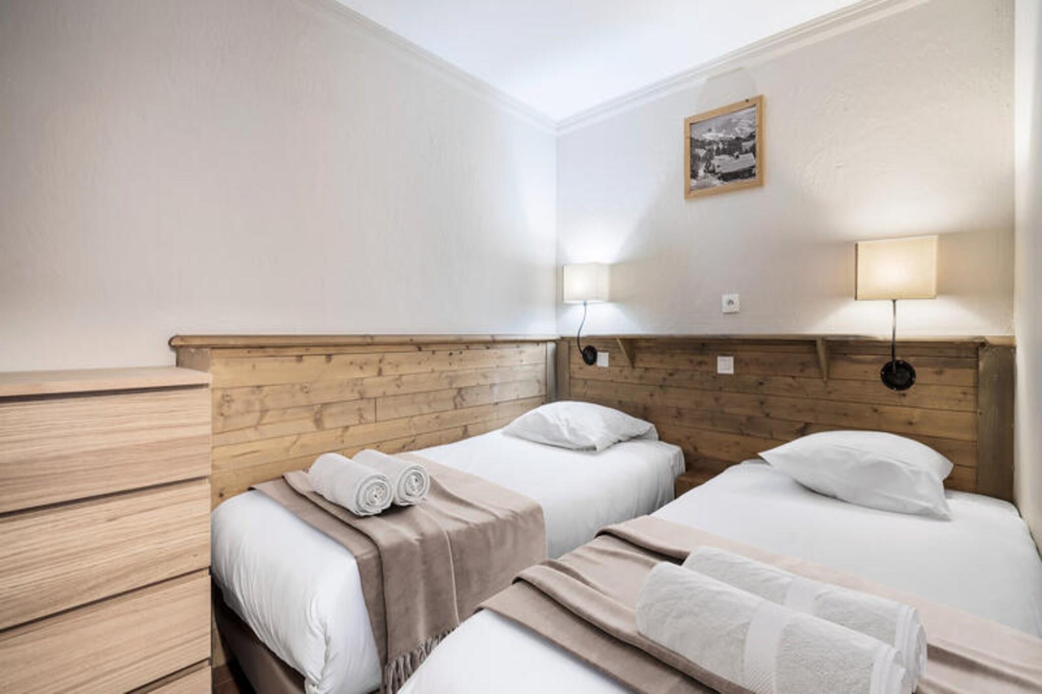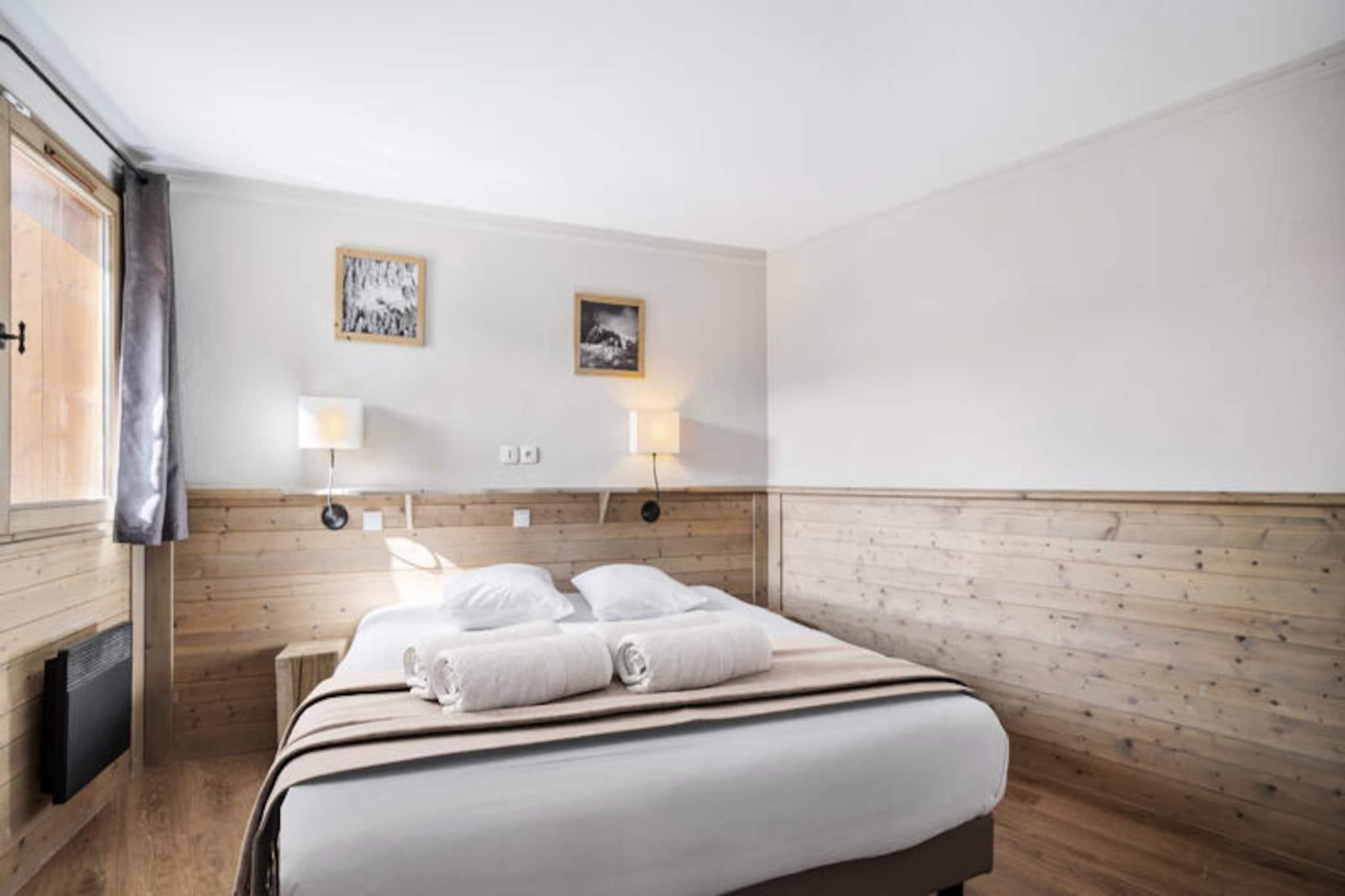 Elevated in the prestigious Balcons district of Val Thorens, the Alaska 5 apartment offers a refined alpine escape for up to eight adults. With its prime location just steps from the slopes, this residence invites you to immerse yourself in the exhilarating charm of the world-renowned Three Valleys ski area. Imagine mornings filled with crisp mountain air and evenings spent by the fireplace, creating unforgettable moments in a space that blends comfort and elegance seamlessly. From the balcony, soak in the breathtaking views of snow-dusted peaks and the vibrant energy of the resort below. \n\nSpanning 74 square meters, the apartment is thoughtfully designed to cater to both relaxation and adventure. The living room features a cozy lounge area with a fireplace, a dining space, and a fully equipped kitchen, perfect for preparing hearty meals after a day on the slopes. The layout includes three bedrooms: one with twin beds, and two en-suite double bedrooms, one of which offers balcony access for serene mornings. Additional amenities include a ski locker and Wi-Fi, ensuring convenience throughout your stay. Guests are welcomed with premium services such as beds made upon arrival, bathroom products, and end-of-stay cleaning, allowing you to focus solely on enjoying your alpine retreat. \n\nVal Thorens, the highest ski resort in Europe, is a paradise for winter sports enthusiasts and nature lovers alike. Beyond skiing, the resort offers lively après-ski options, gourmet dining, and a vibrant atmosphere that transforms into a haven of tranquility during the summer months. Whether you’re exploring the pristine slopes or hiking the scenic trails, Alaska 5 is your gateway to the best of the French Alps. Let the magic of Val Thorens captivate you as you create cherished memories in this exceptional mountain residence.