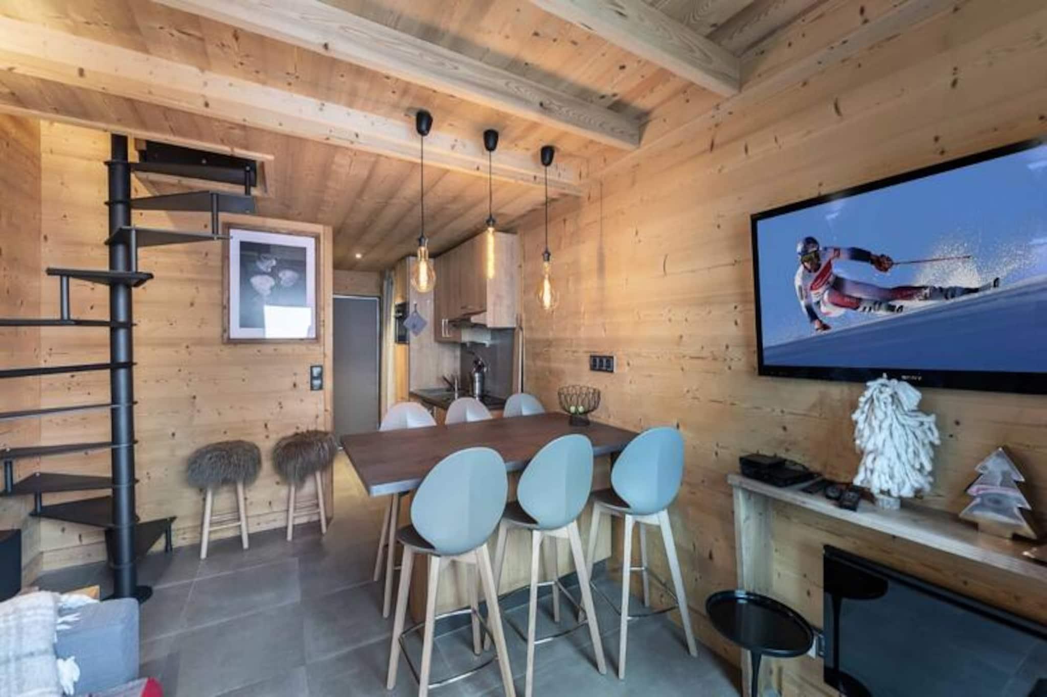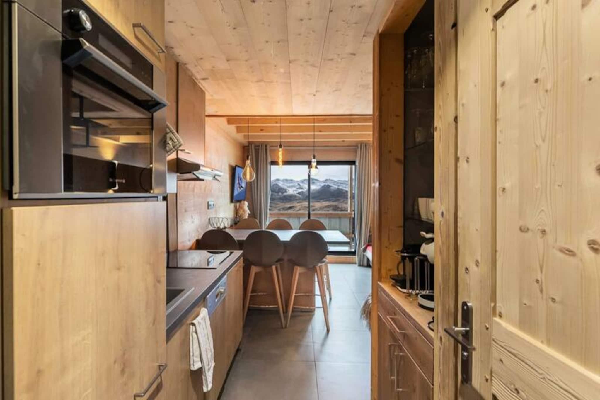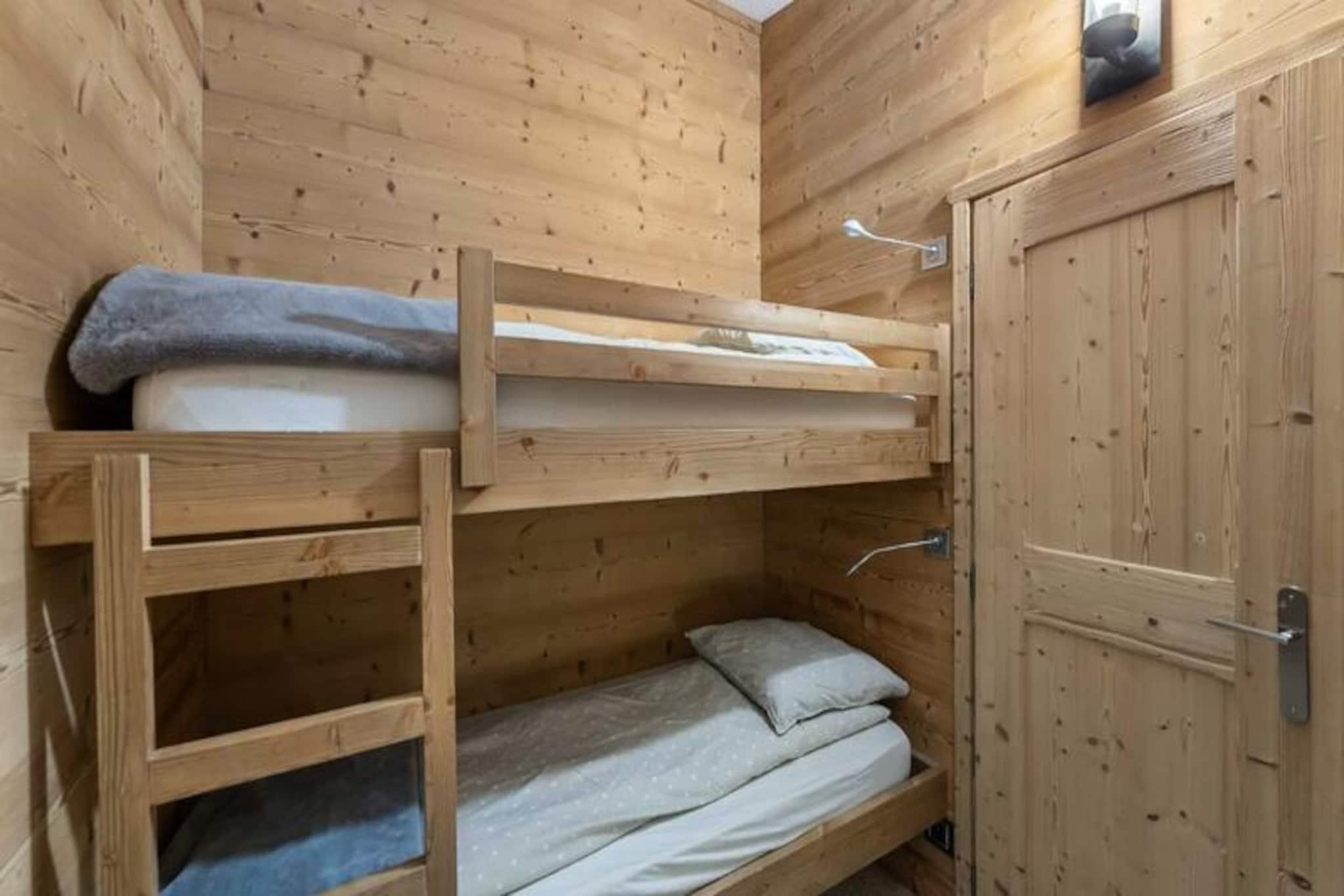 At the heart of the vibrant Val Thorens resort, this charming duplex apartment offers a cozy alpine retreat for up to six guests. Perfectly situated near the slopes and local shops, it invites you to immerse yourself in the dynamic energy of one of the world’s most renowned ski destinations. Picture yourself waking up to crisp mountain air, stepping onto your private balcony, and planning a day filled with thrilling adventures in the snowy paradise that surrounds you. Whether you’re here for skiing, snowboarding, or simply enjoying the breathtaking views, this residence is your gateway to unforgettable memories. \n\nThe apartment spans 41 square meters across two levels, thoughtfully designed for comfort and convenience. On the lower level, you’ll find an inviting open-plan living room with a fully equipped kitchen, perfect for preparing hearty meals after a day on the slopes. A bathroom with a bathtub and a separate WC complete the layout. Upstairs, two cozy double bedrooms and a mountain corner with bunk beds provide restful sleeping arrangements for families or groups of friends. Additional amenities include ski lockers on level -1, ensuring easy storage for your gear.\n\nBeyond the apartment, Val Thorens offers endless opportunities for exploration and excitement. From world-class ski slopes to lively après-ski venues, everything you need is just steps away. In summer, the resort transforms into a haven for hikers and mountain bikers, with trails leading to stunning alpine vistas. Local shops, restaurants, and cultural events add to the charm, making this destination a year-round favorite.\n\nWhether you’re seeking adventure or relaxation, this duplex apartment combines comfort, convenience, and an unbeatable location to create the perfect alpine escape. Let the magic of Val Thorens captivate you and make your holiday truly extraordinary.